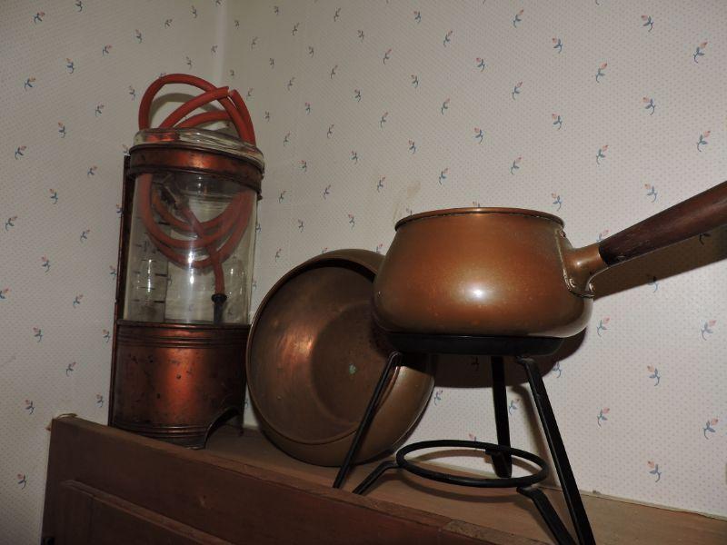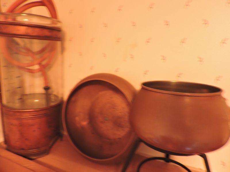 Unique collection of copper pans and a copper and glass enema apparatus from the 1920-30's. **Please read Terms and Conditions before placing a bid. Pick up is Sunday, September 15, 2019 from 11am to 4pm and Tuesday, September 17 from 4pm-7pm in Sicklerville. All sales are final. All sales are as is, where is. Please review all photos. Any props included in photos are not included in listing. All measurements are approximate.