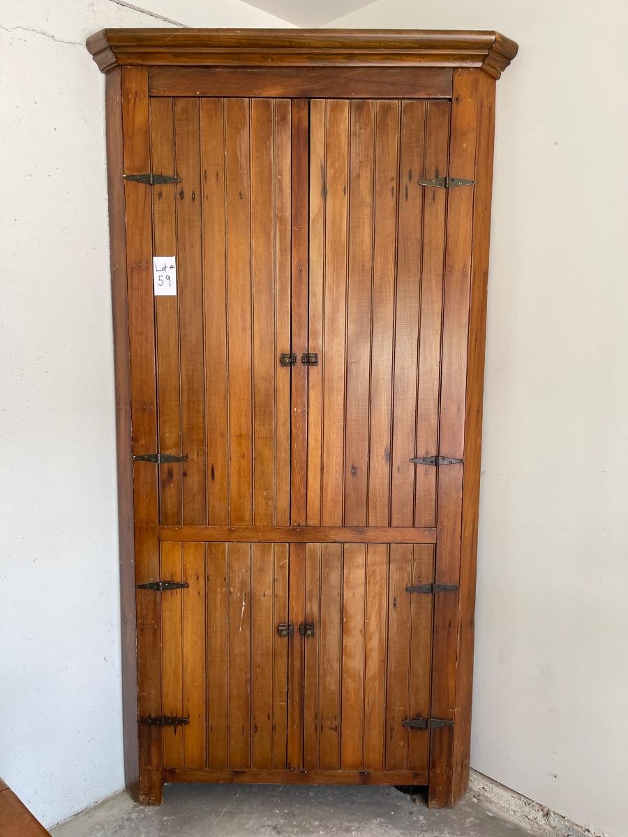 Four door antique corner cabinet with 5 shelves