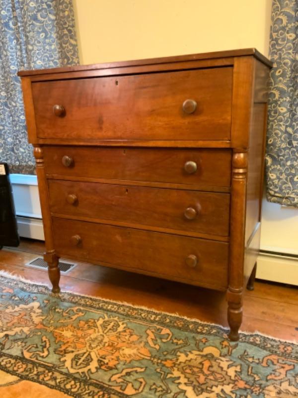 ANTIQUE COUNTRY PINE CHEST W/ OVERSIZED TOP DRAWER & 3 LOWER DRAWERS