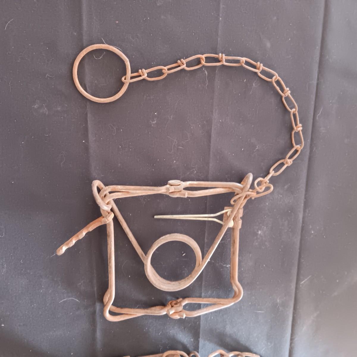 ANTIQUE COW LEG HOBBLER KICKERS AND AN OLD ANIMAL TRAP