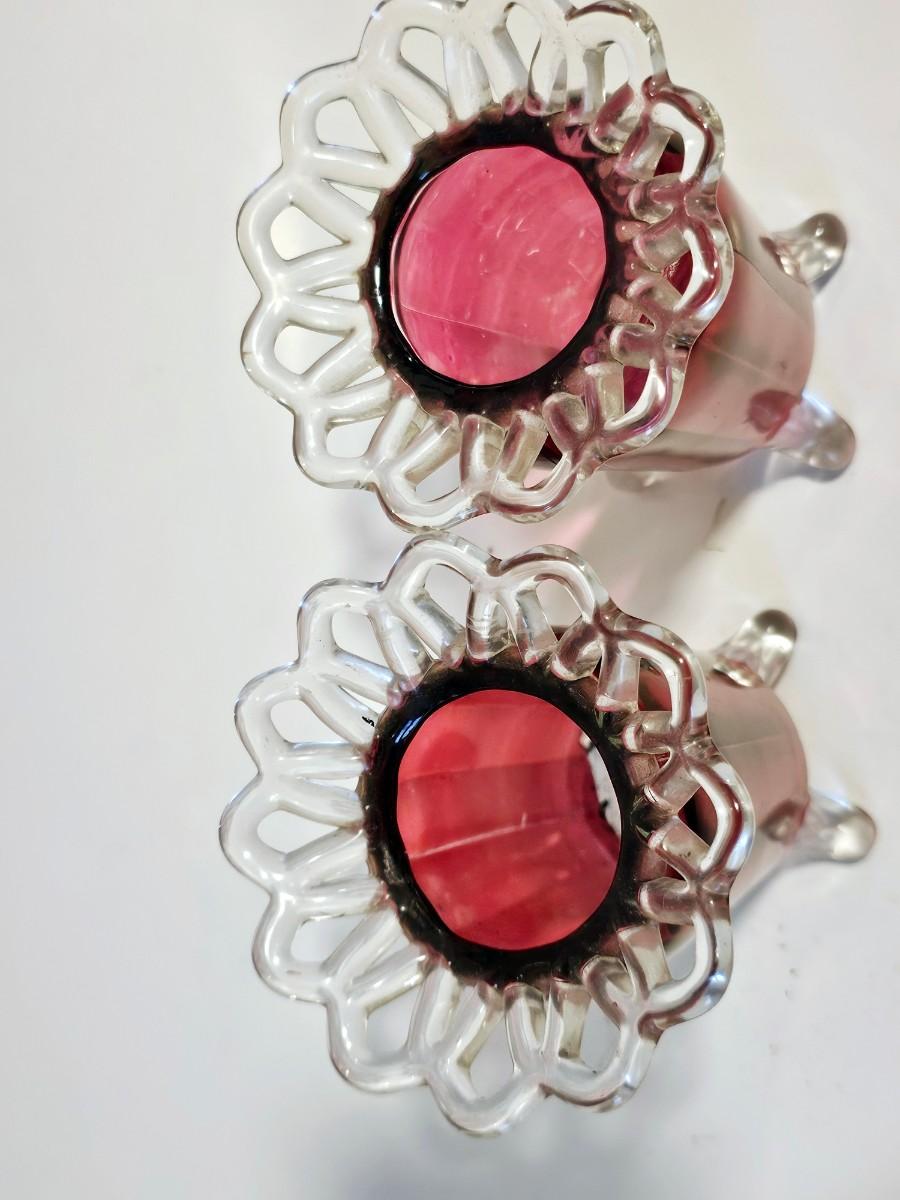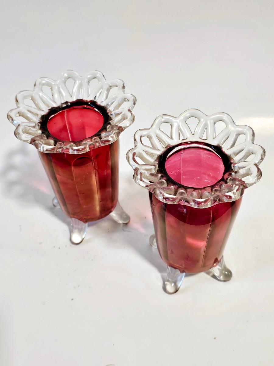 Antique Cranberry Glass Vase Pair