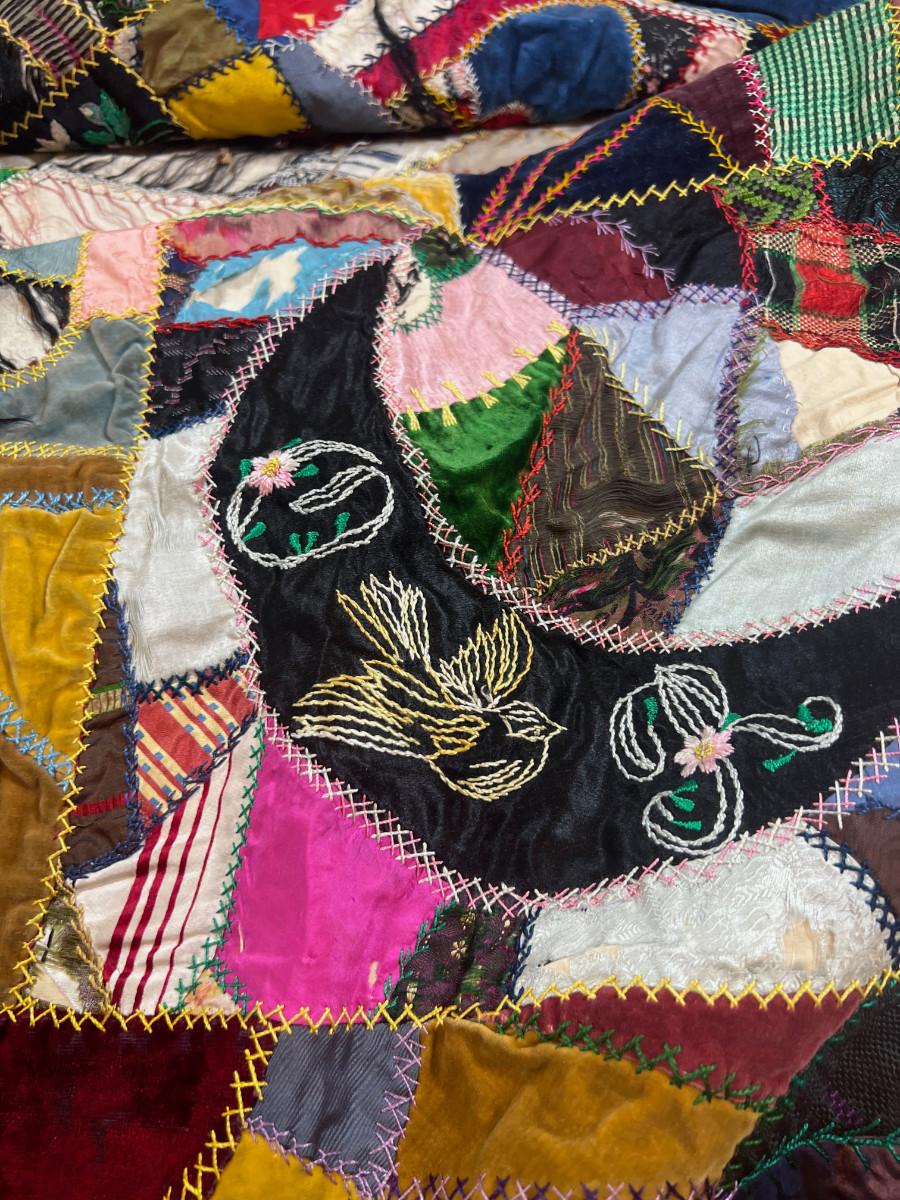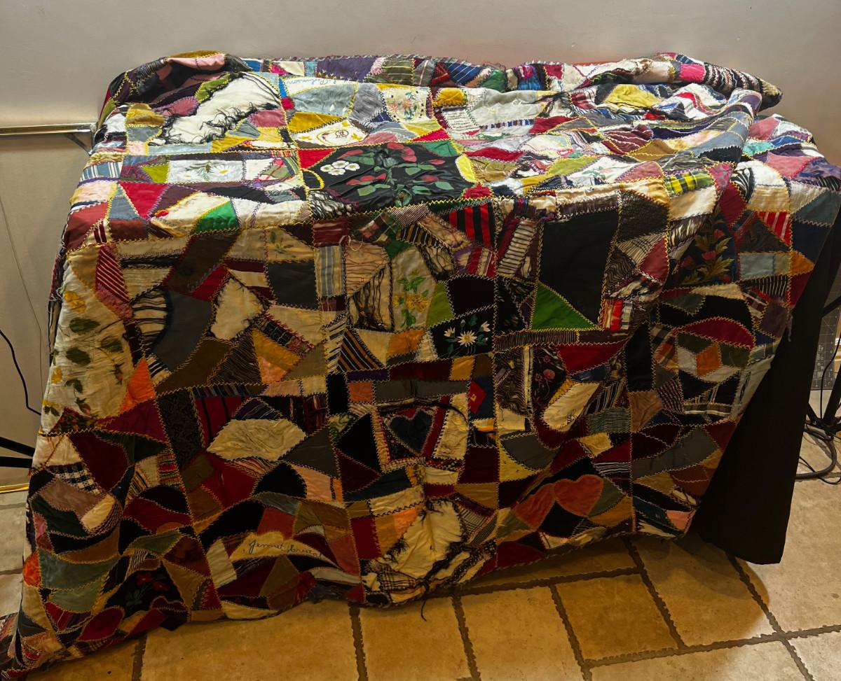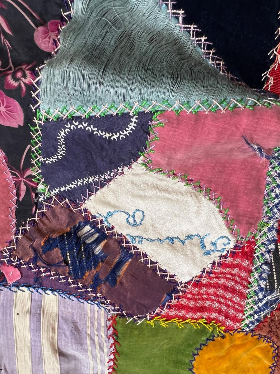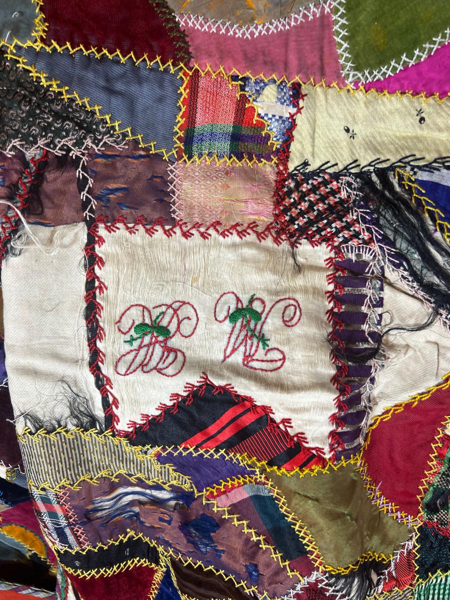 Antique Crazy Quilt Orange Back - Piece Say's "Deligate Payson Democratic Convention Sept 1895"