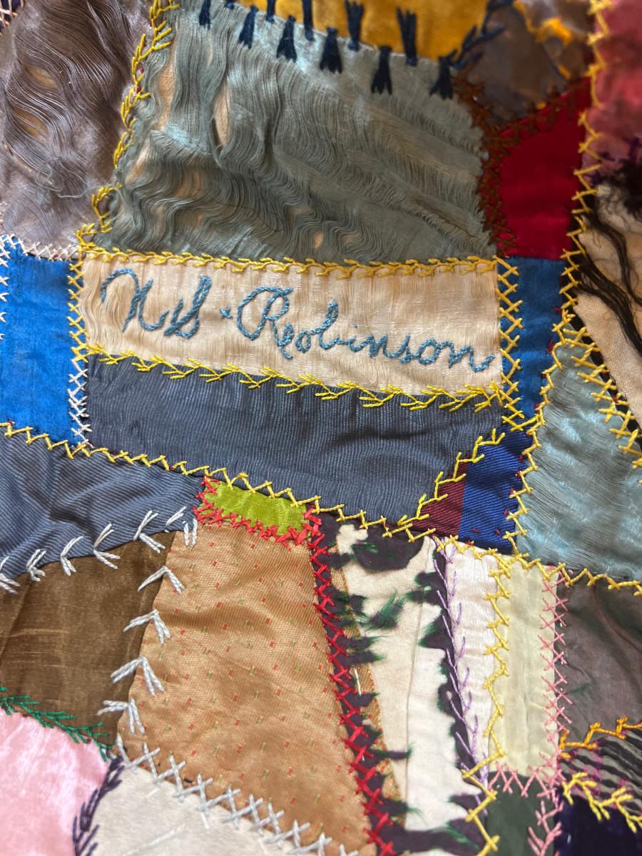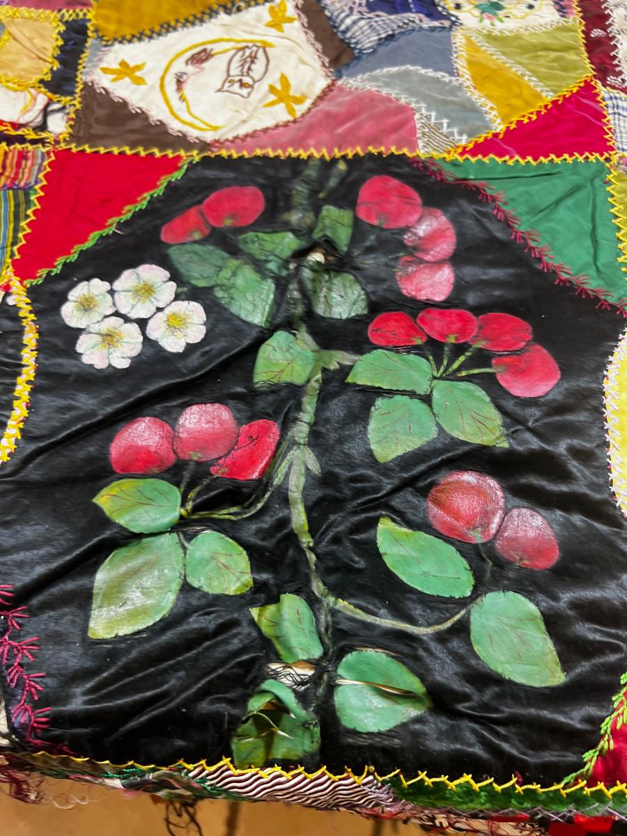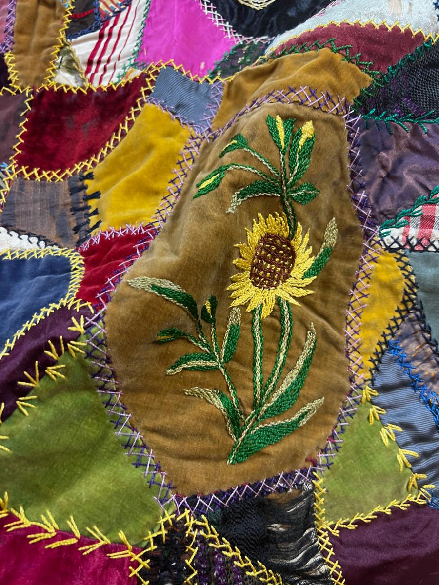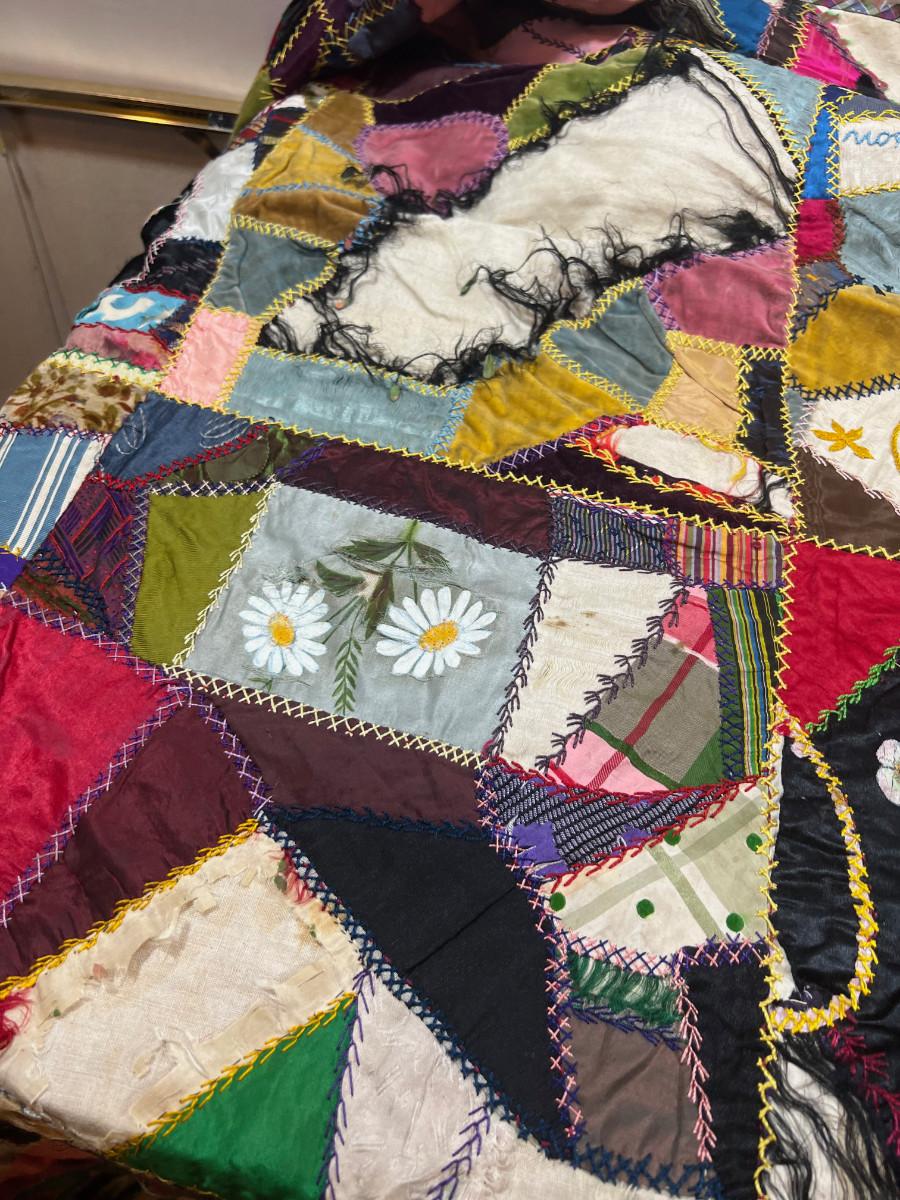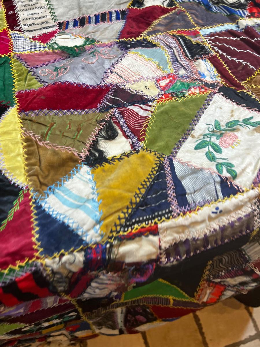 Antique Crazy Quilt Orange Back - Piece Say's "Deligate Payson Democratic Convention Sept 1895"