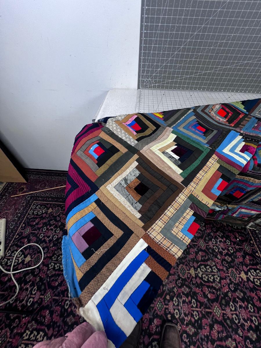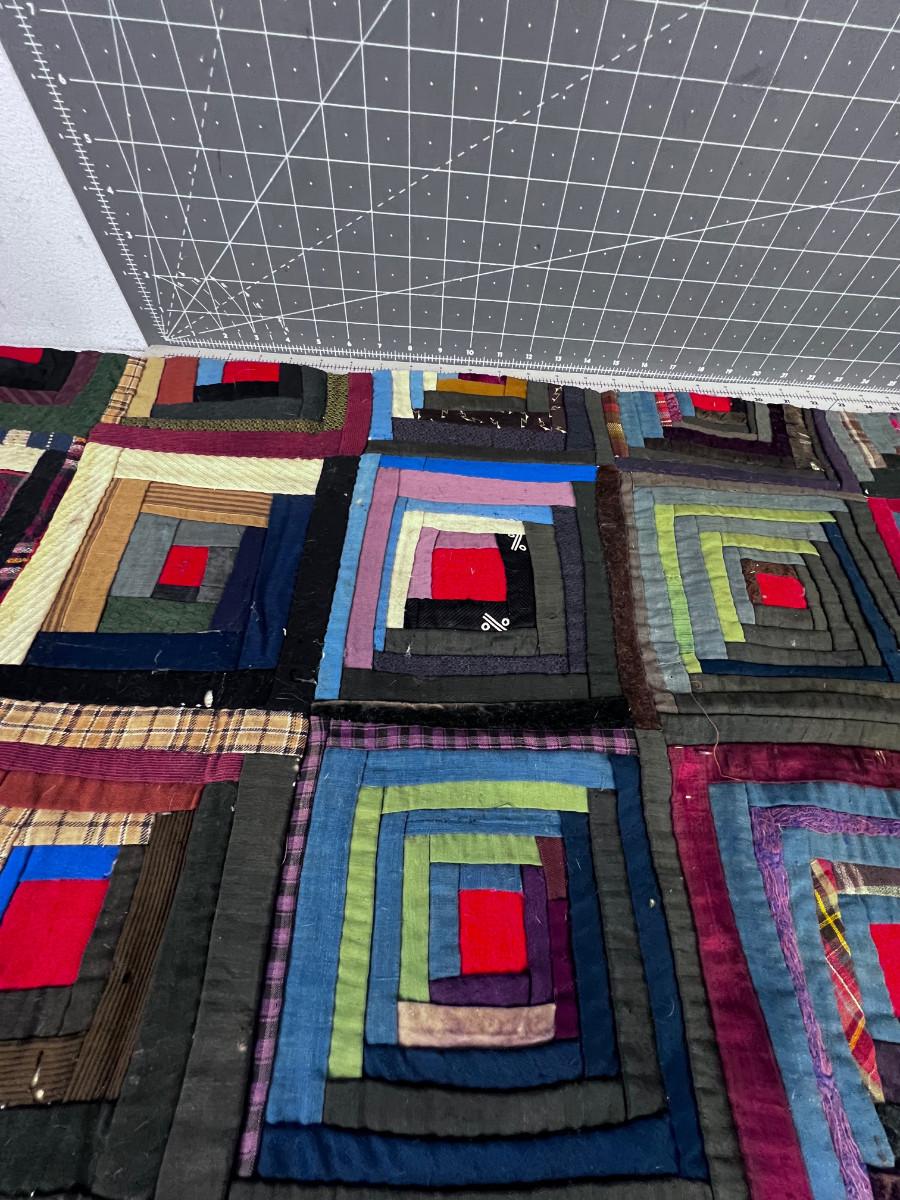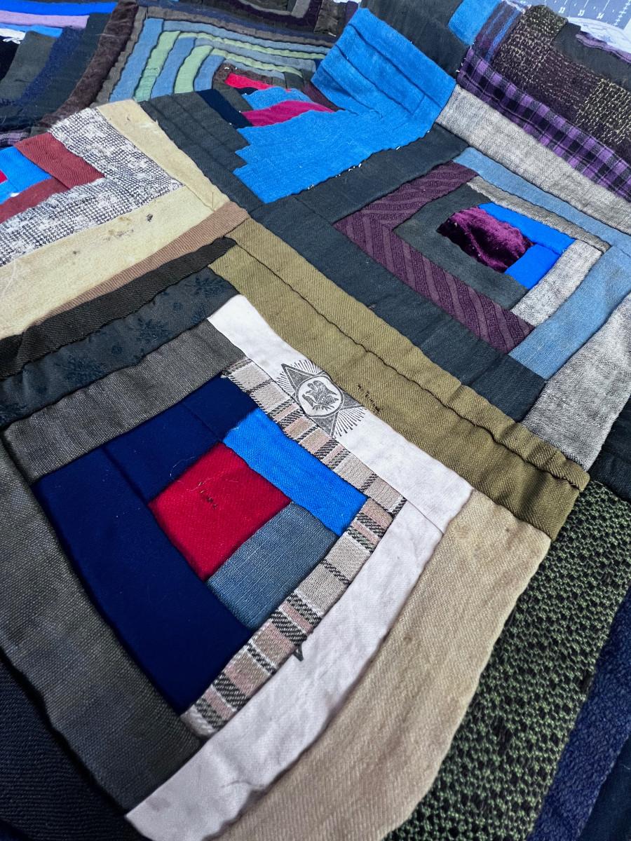 Measures 82" X 68" Has Wear - OLD! Probably Made from old suits. Probably the 1920's or 30's