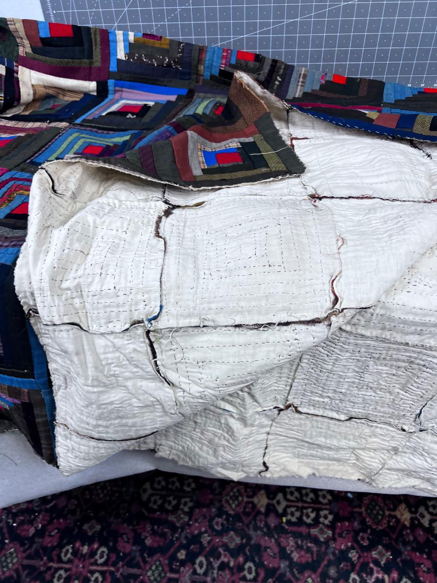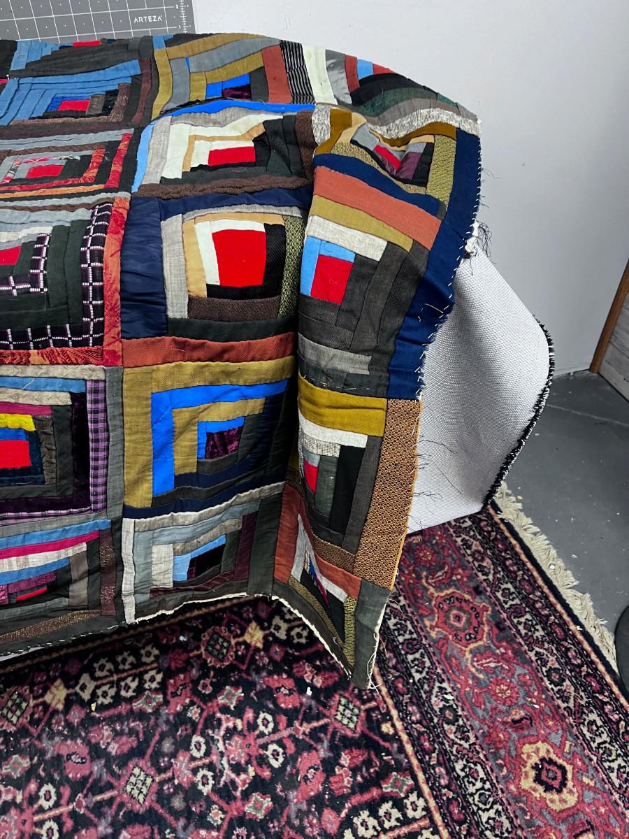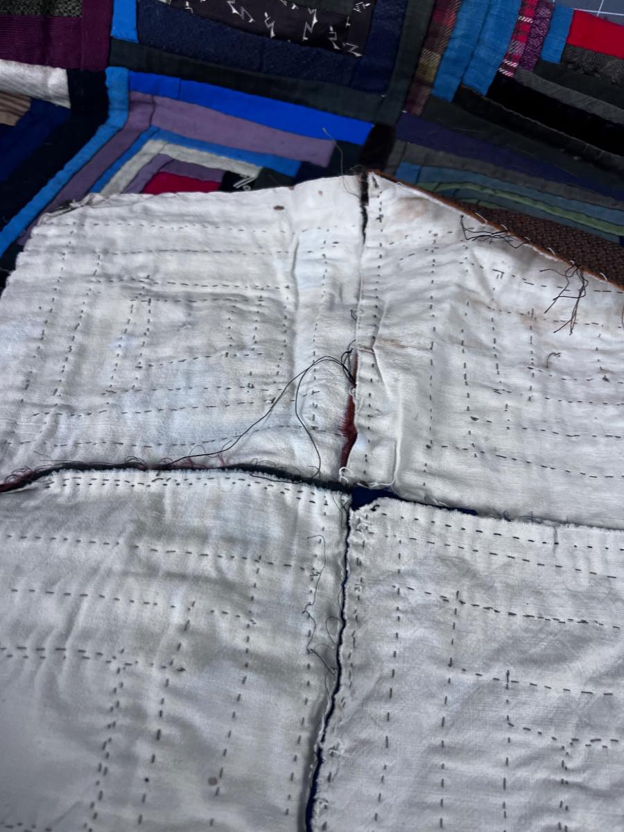Measures 82" X 68" Has Wear - OLD! Probably Made from old suits. Probably the 1920's or 30's