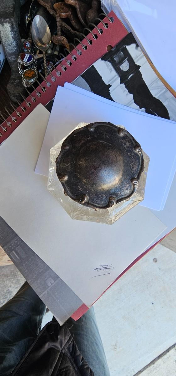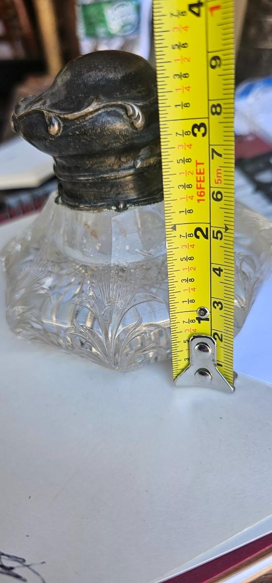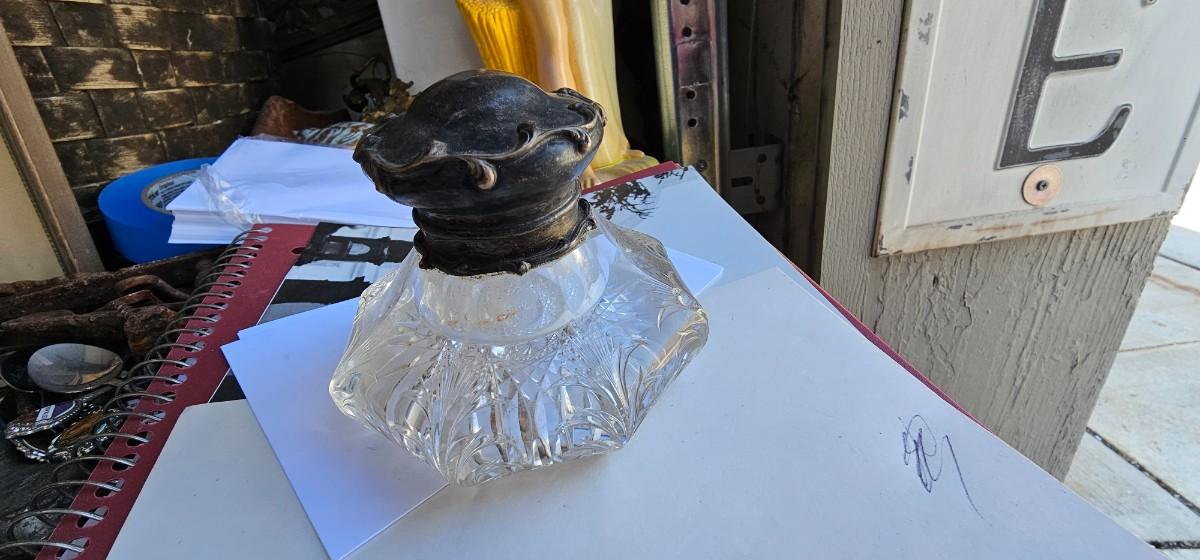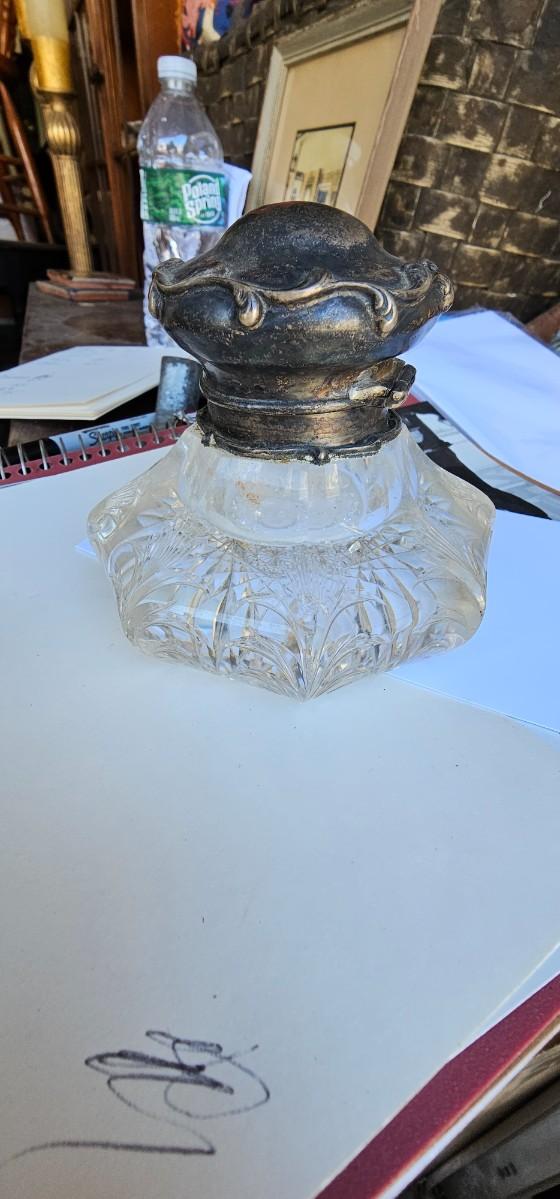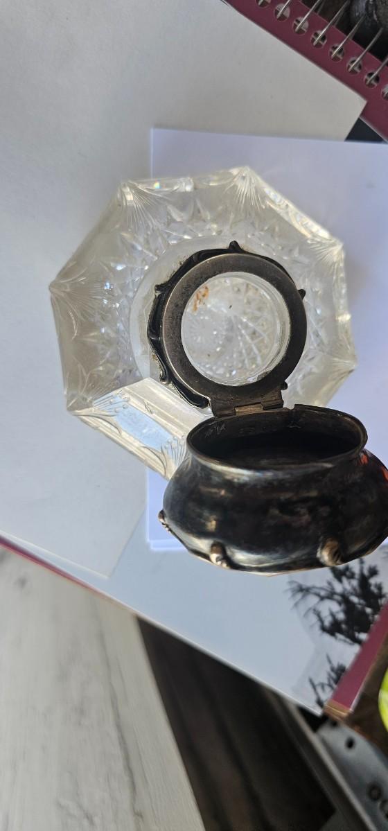 Antique crystal and silver inkwell