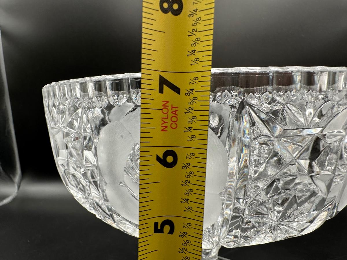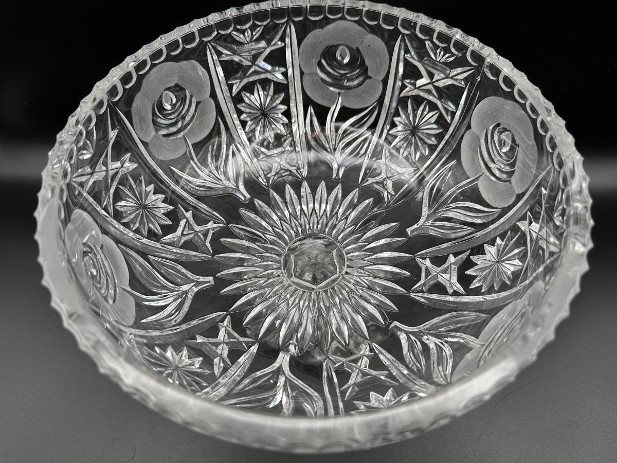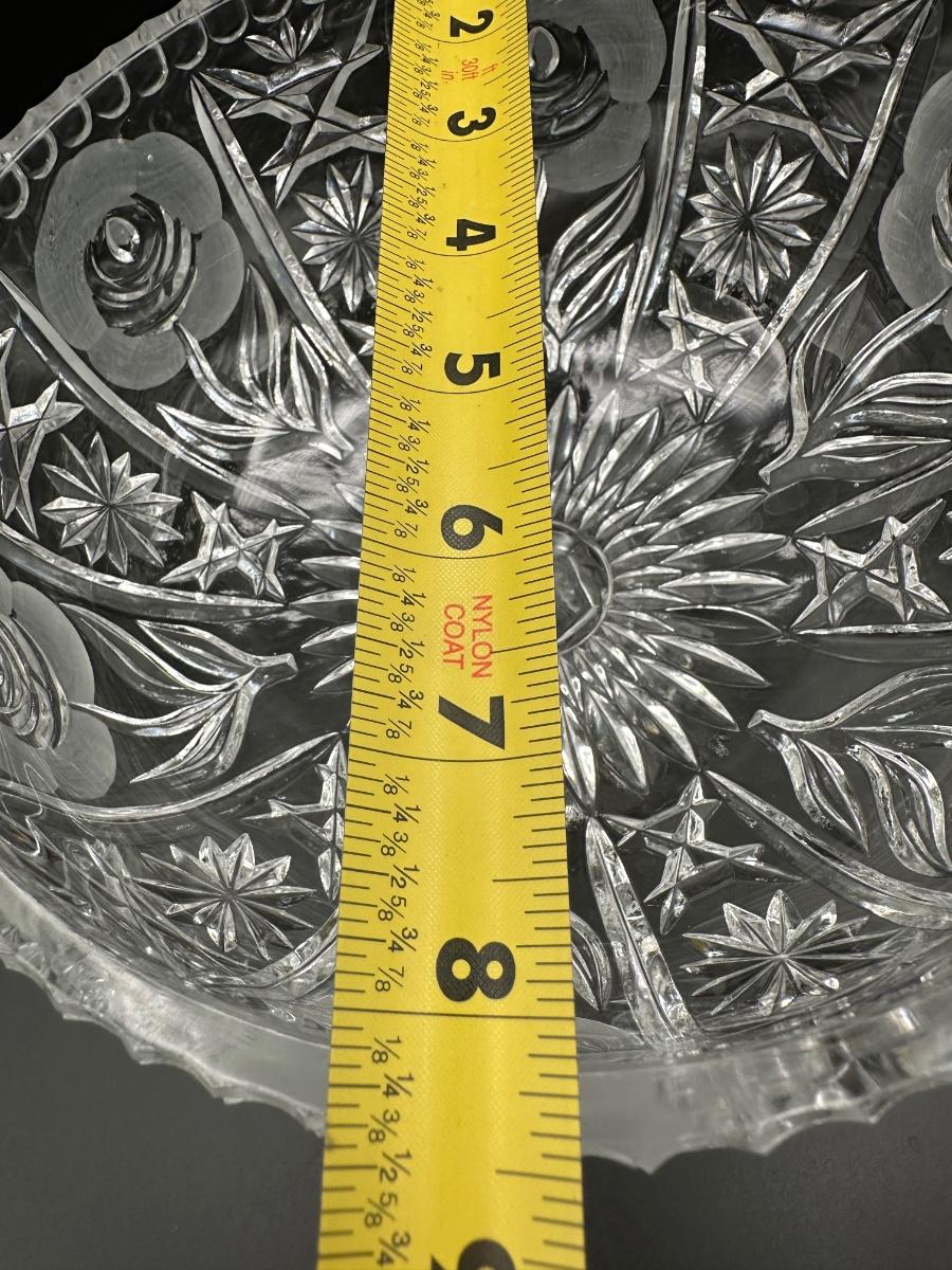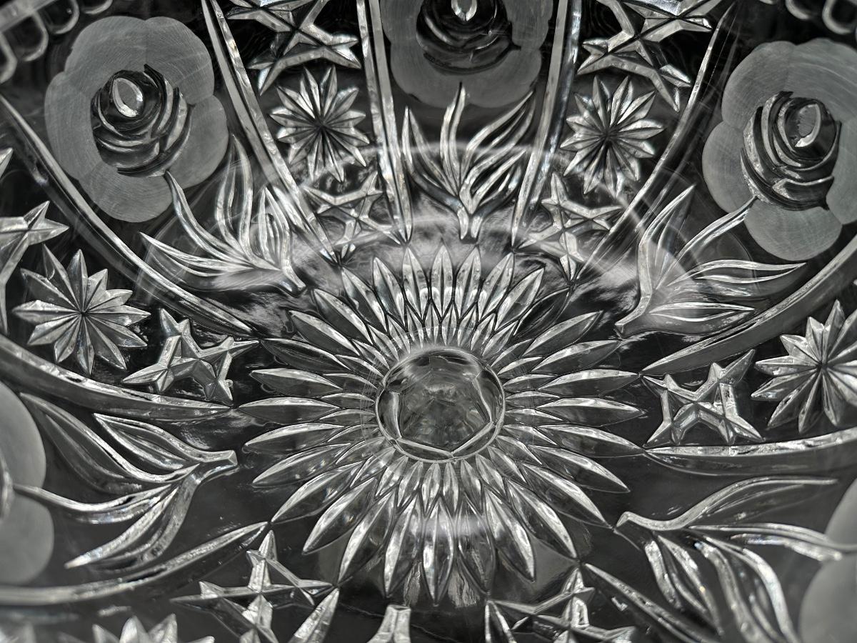 Antique Crystal Pedestal Compote Etched Roses and Ornate Design