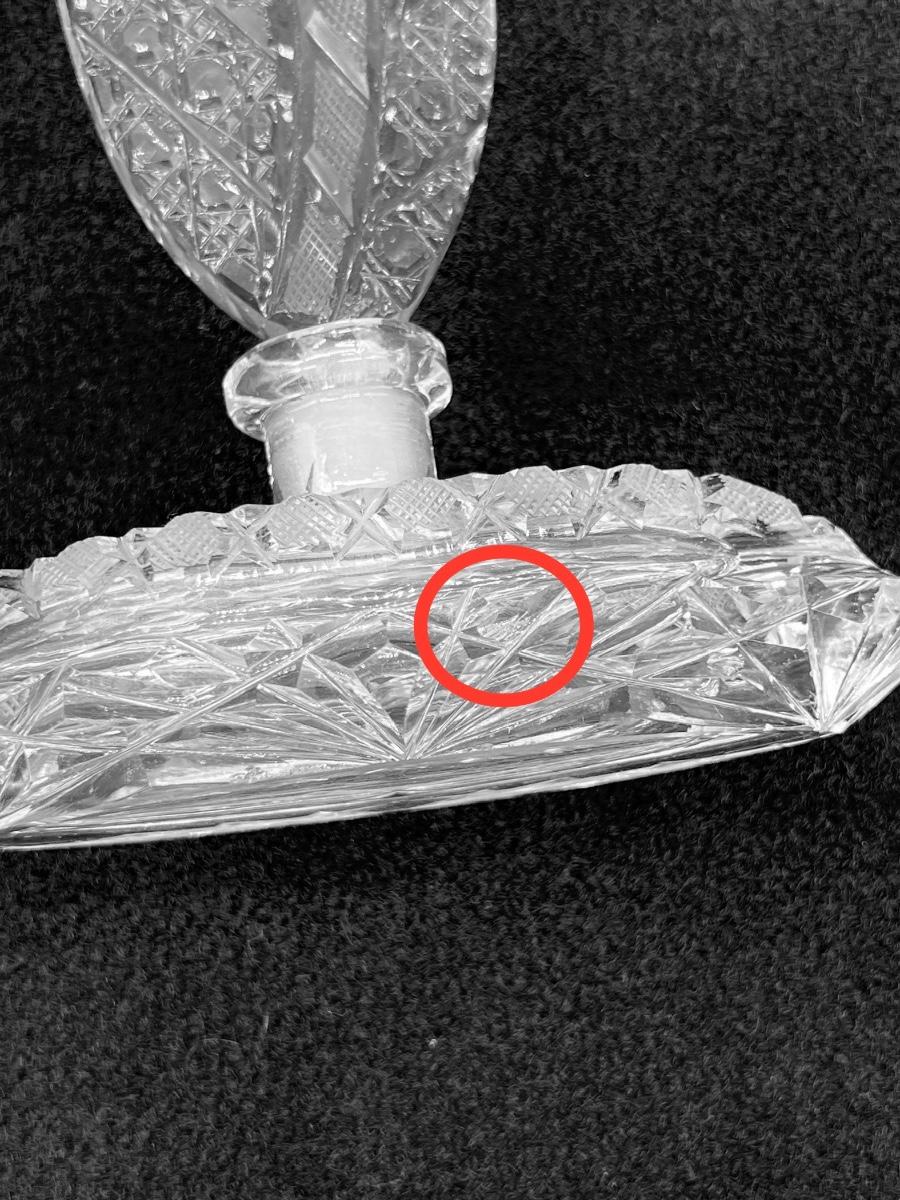 Has a very small minor chip on the side ~ 6.5" H x approx 5" W x 1.75 D