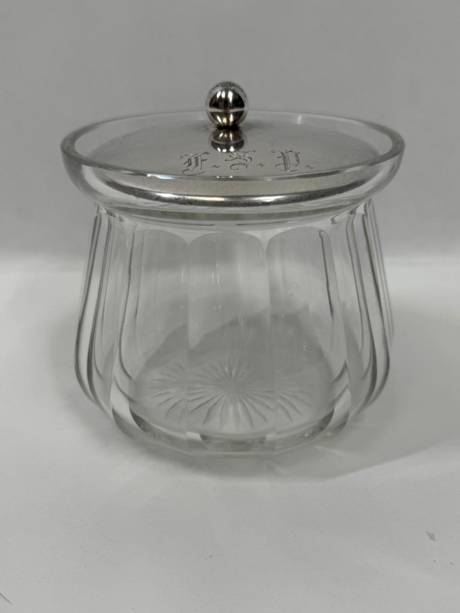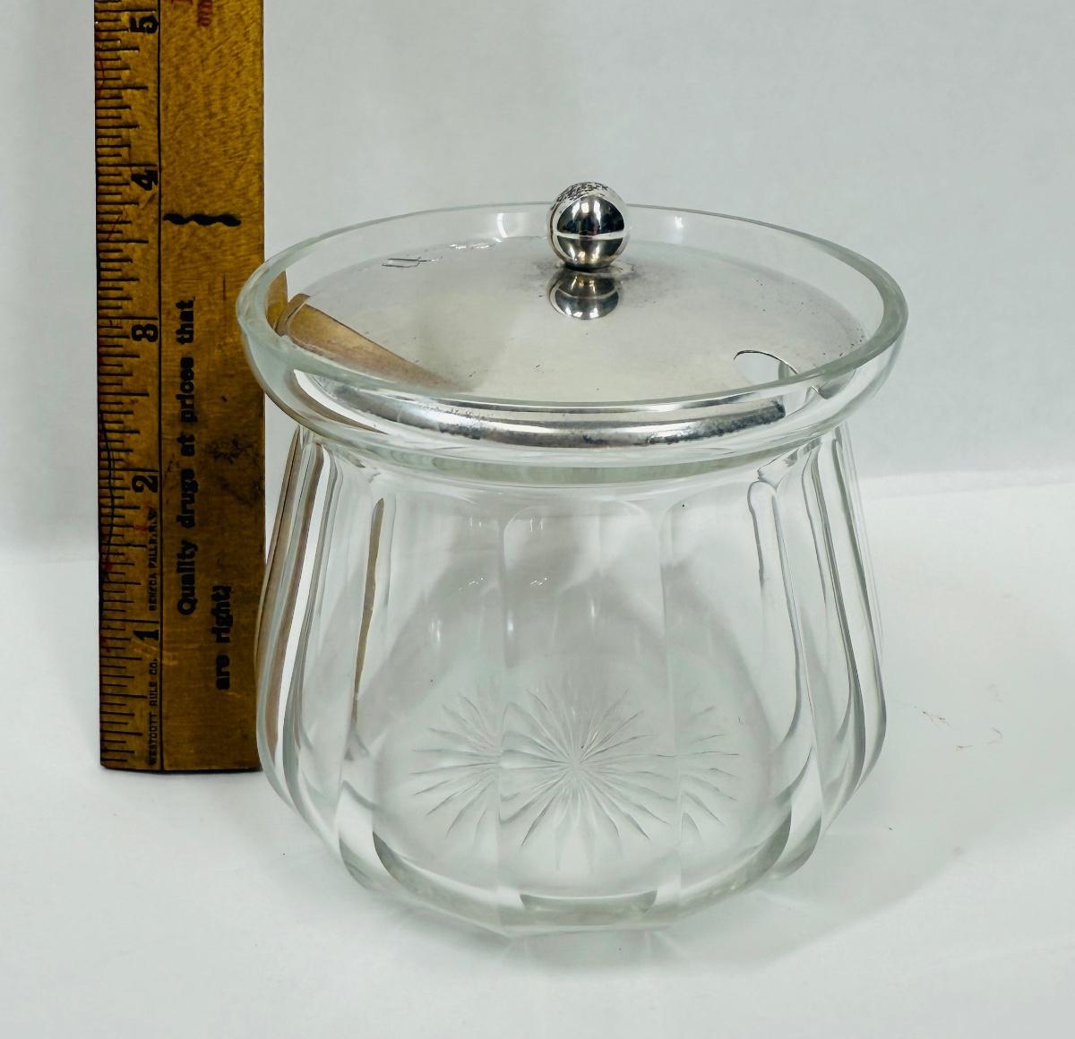 Antique Crystal Sugar Bowl Condiment Bowl with Sterling Silver Lid