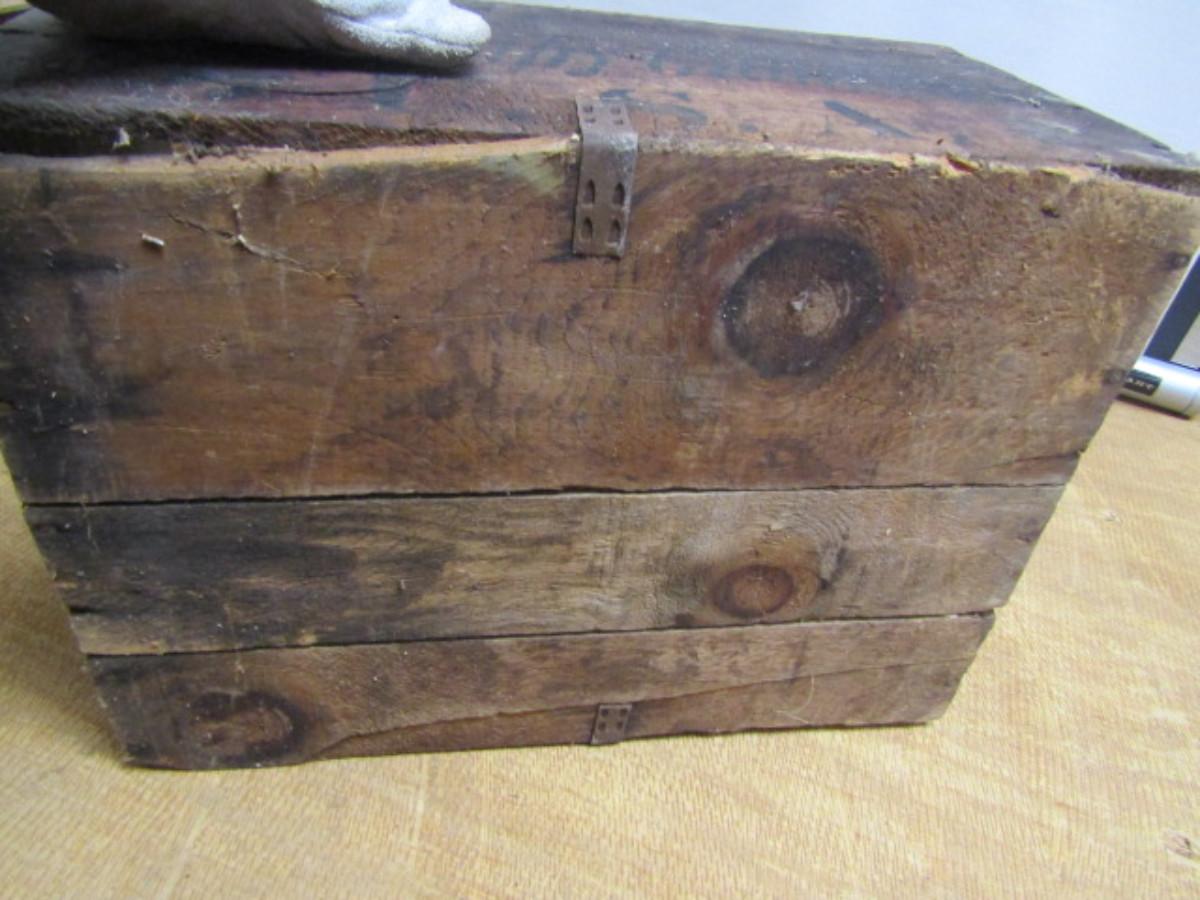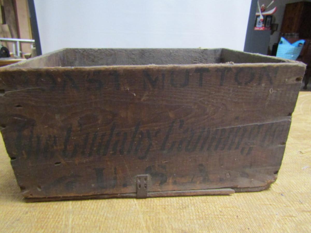 Antique Cudahy Canning Co. Wooden Crate with Metal Support. Wood has some splintering.