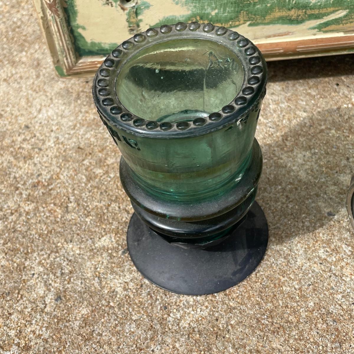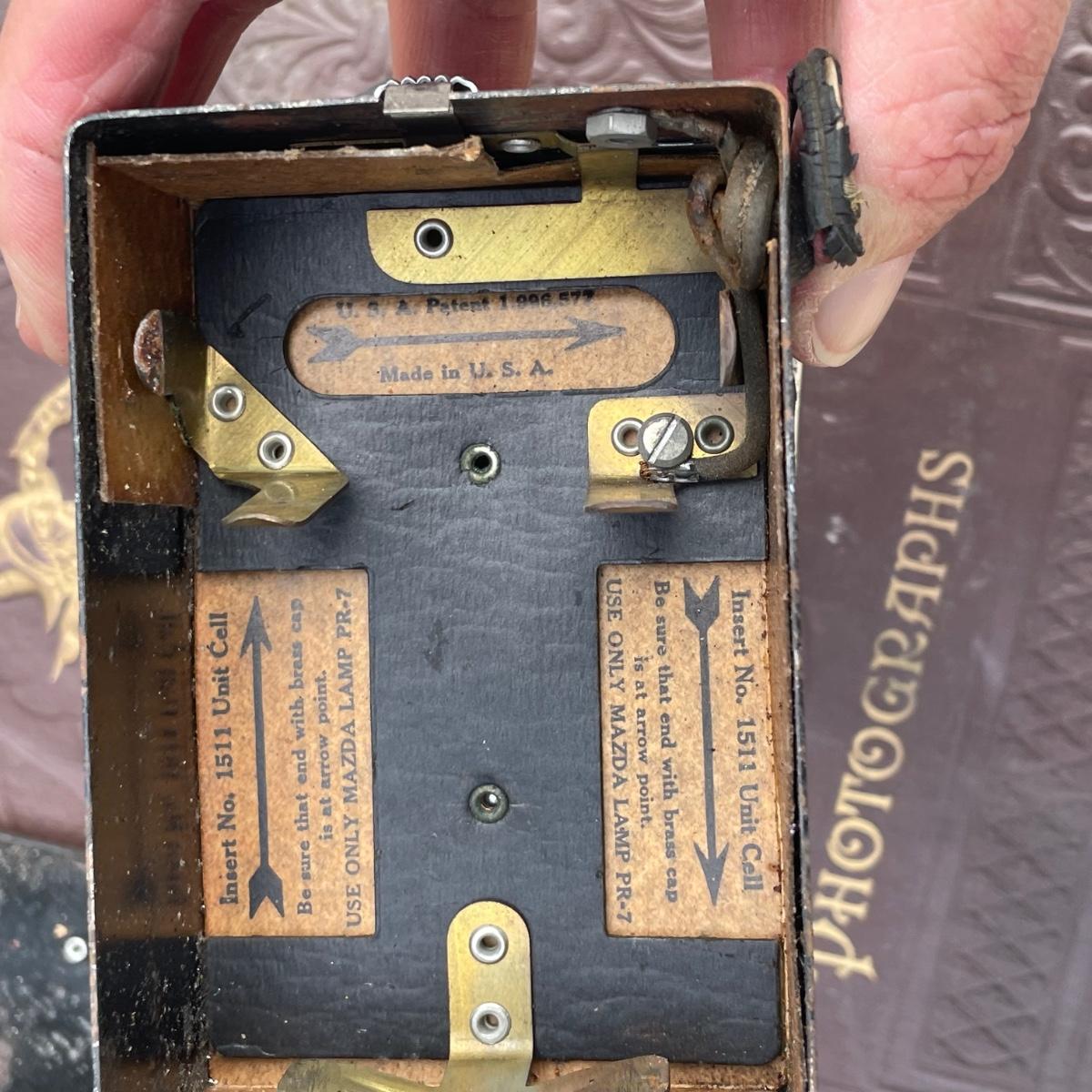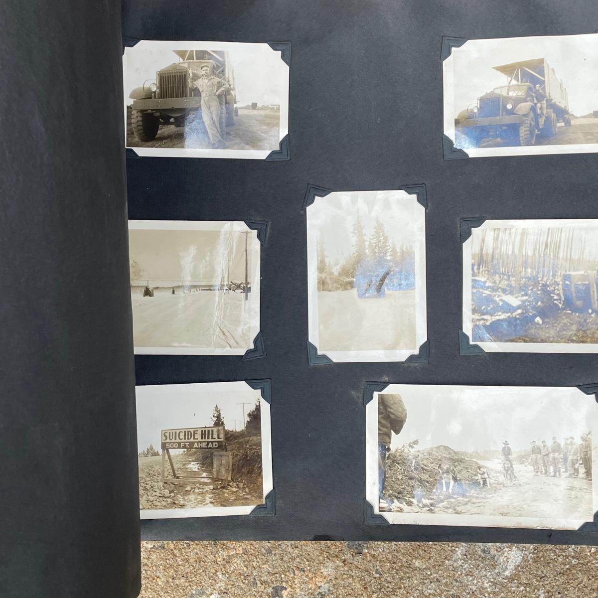 This unique lot has a very old photo album with photos that we are told are of workers who toiled on the Alaskan Highway (album isn’t full with 11 pages full). Also included is a Winchester and an Eclipse flashlight and the interesting looking leather with brass straps is a barbers strop that were for sharpening a barber razor. The glass insulator has been glued into a metal stand.