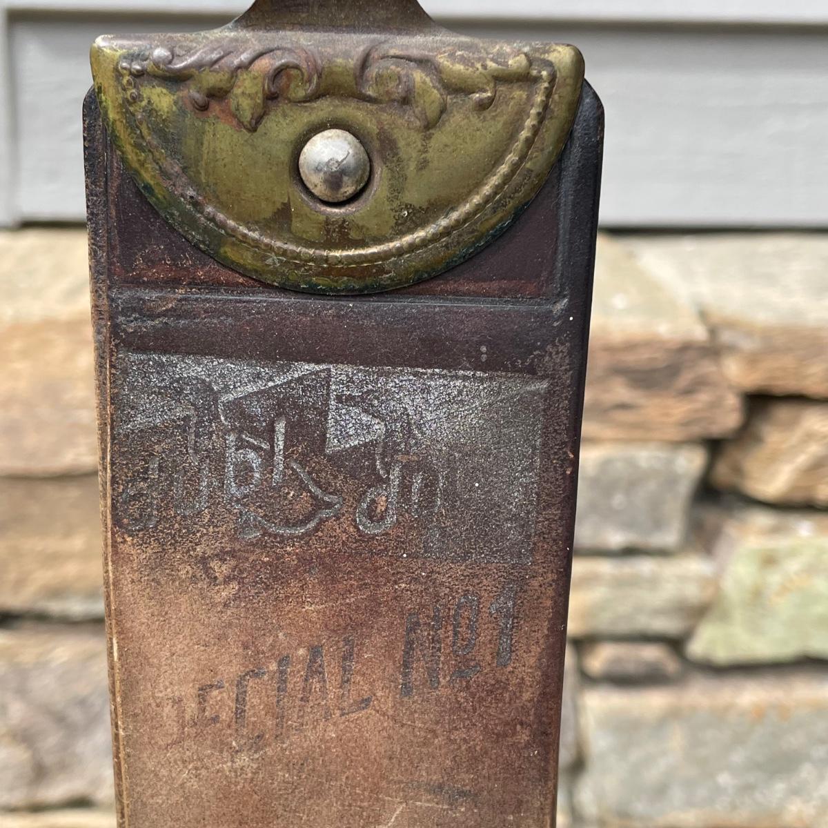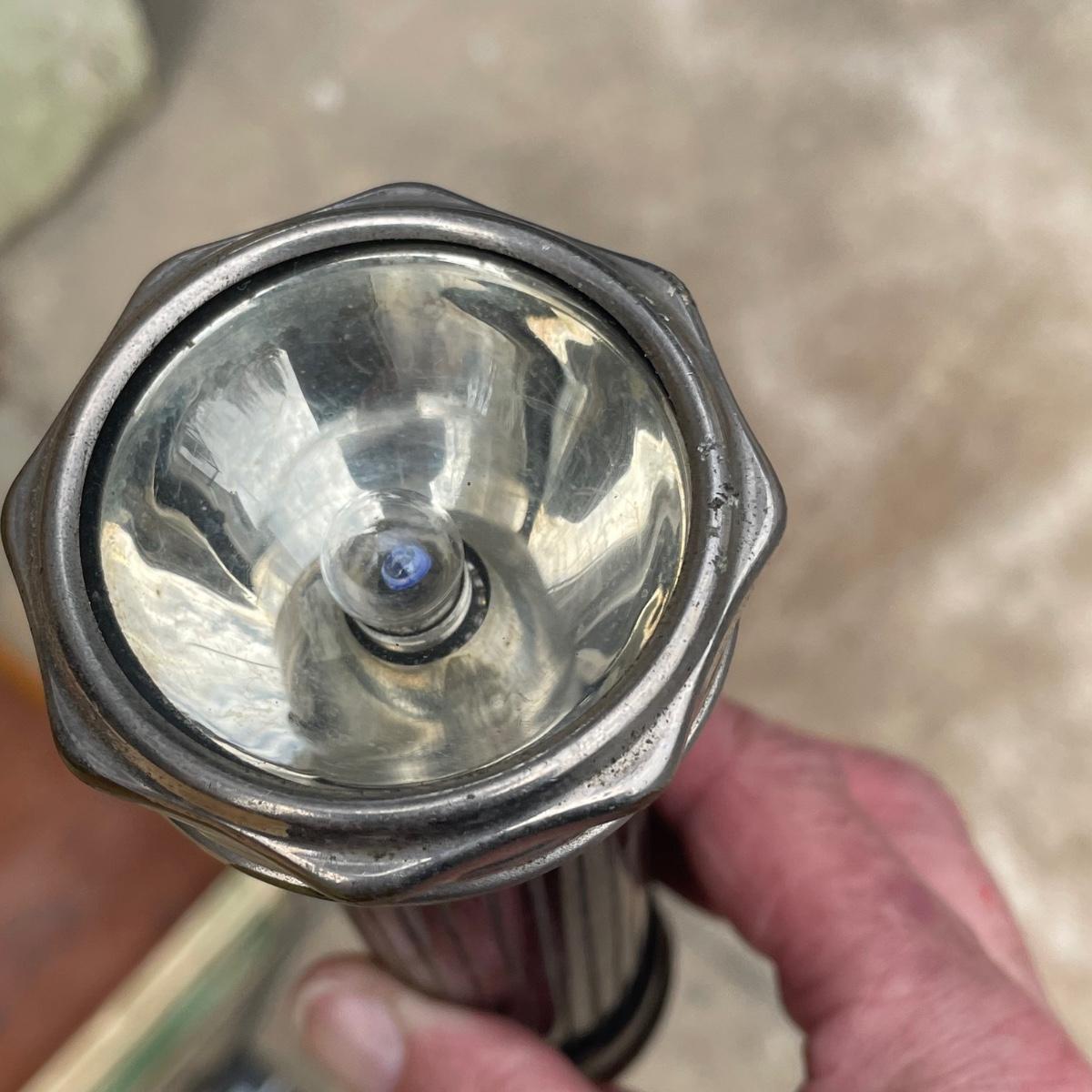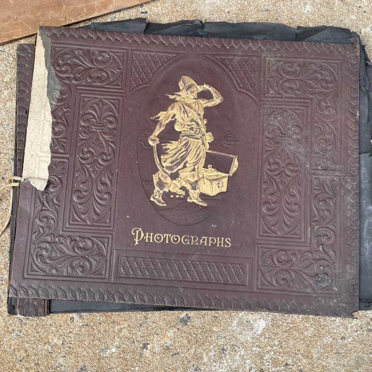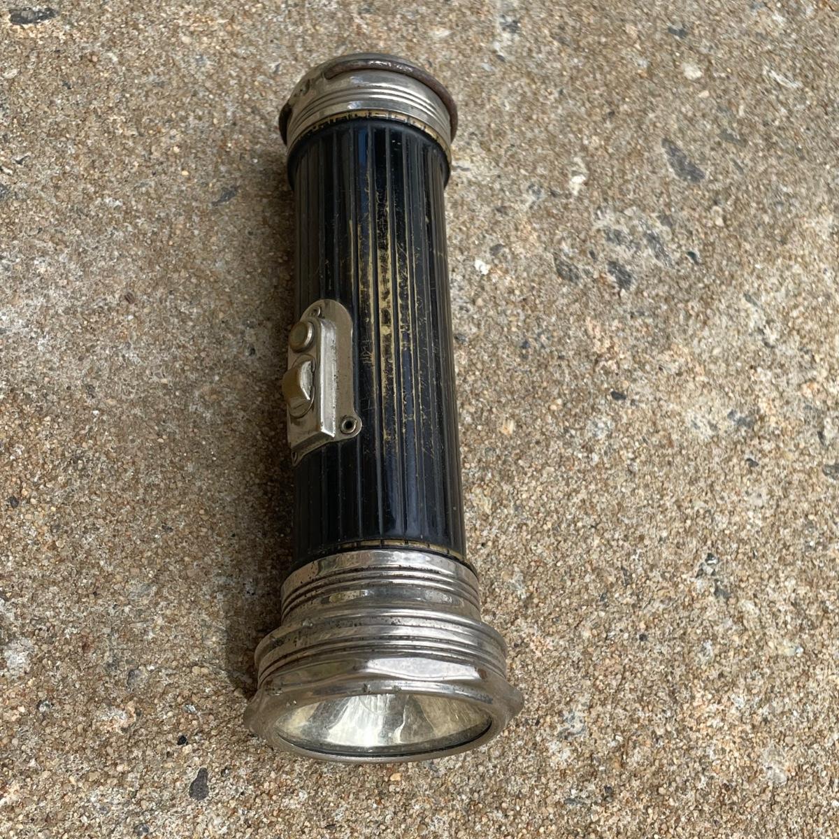 This unique lot has a very old photo album with photos that we are told are of workers who toiled on the Alaskan Highway (album isn’t full with 11 pages full). Also included is a Winchester and an Eclipse flashlight and the interesting looking leather with brass straps is a barbers strop that were for sharpening a barber razor. The glass insulator has been glued into a metal stand.
