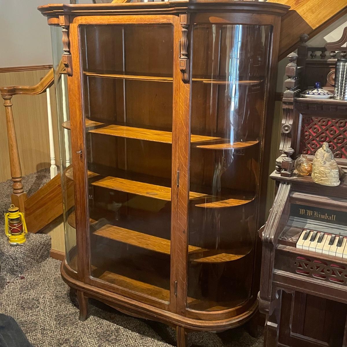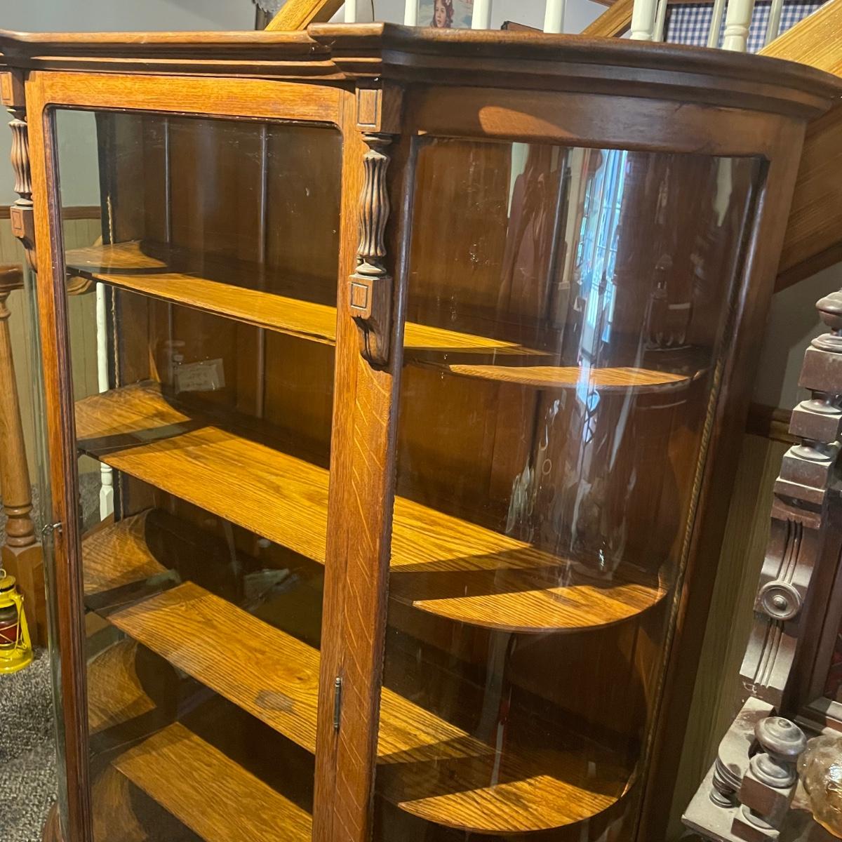 Antique Curved Glass China Cabinet w/Original Key (BL-RG)