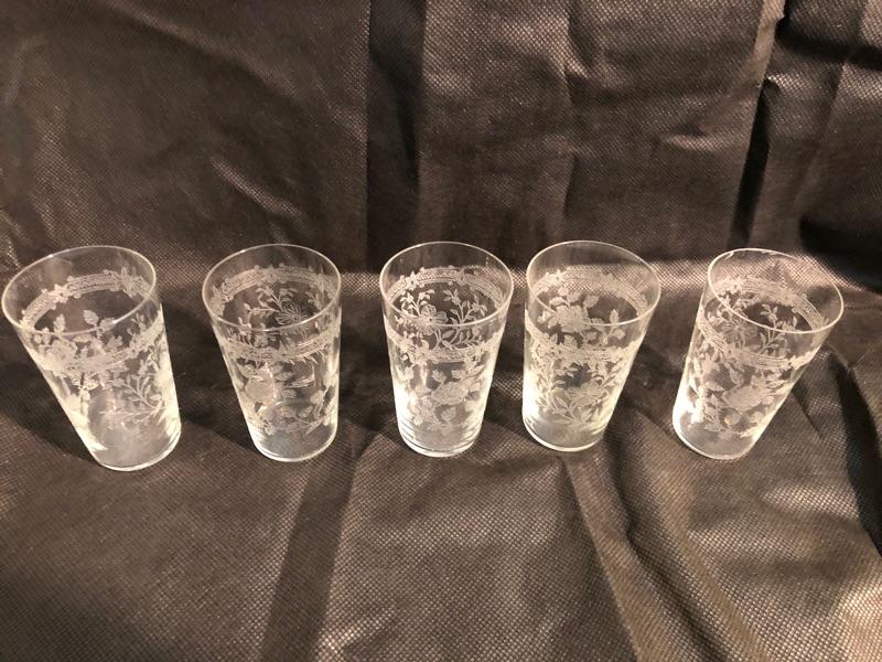 Set of 5 victorian style cut crystal juice or aperitif glasses 3.5 in tall and 2in diameter