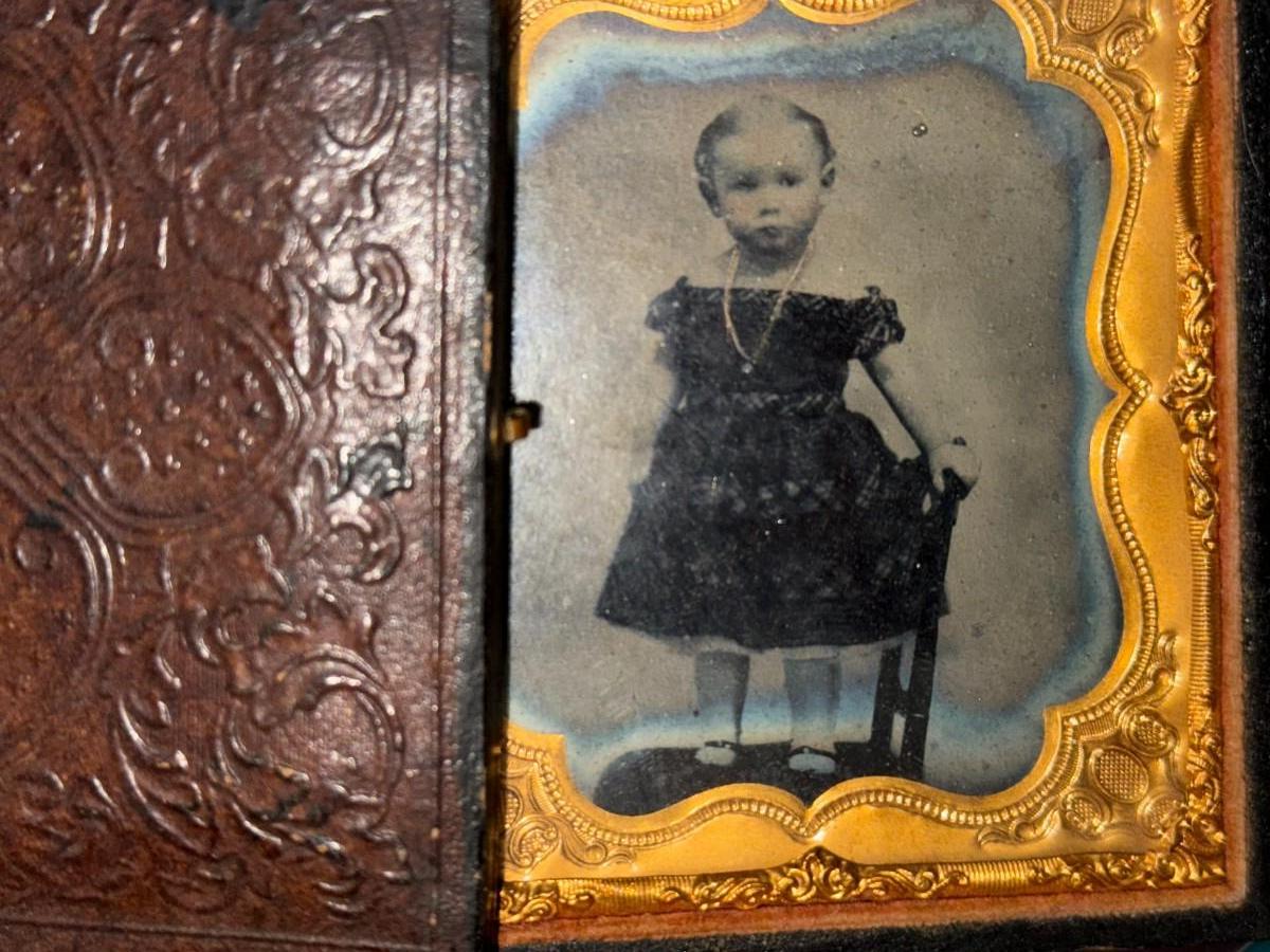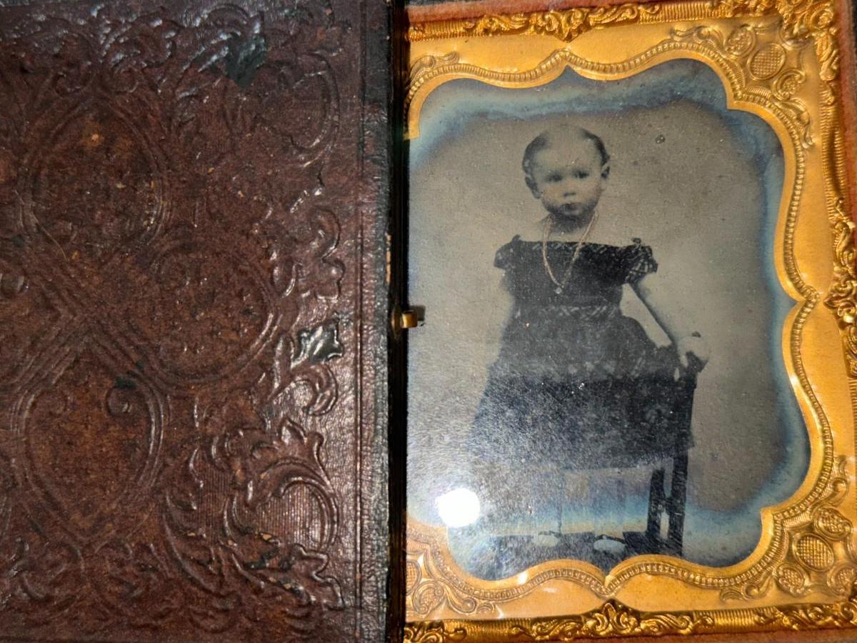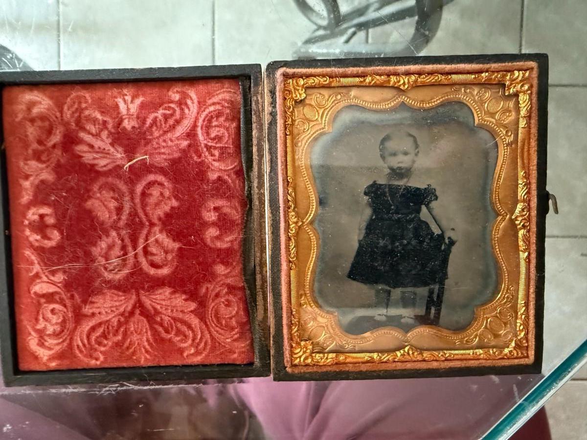 ANTIQUE DAGUERREOTYPE YOUNG GIRL METAL PICTURE PREOWNED FROM AN ESTATE AS PICTURED. (COVER IS UNATTACHED). $5 DOMESTIC SHIPPING.