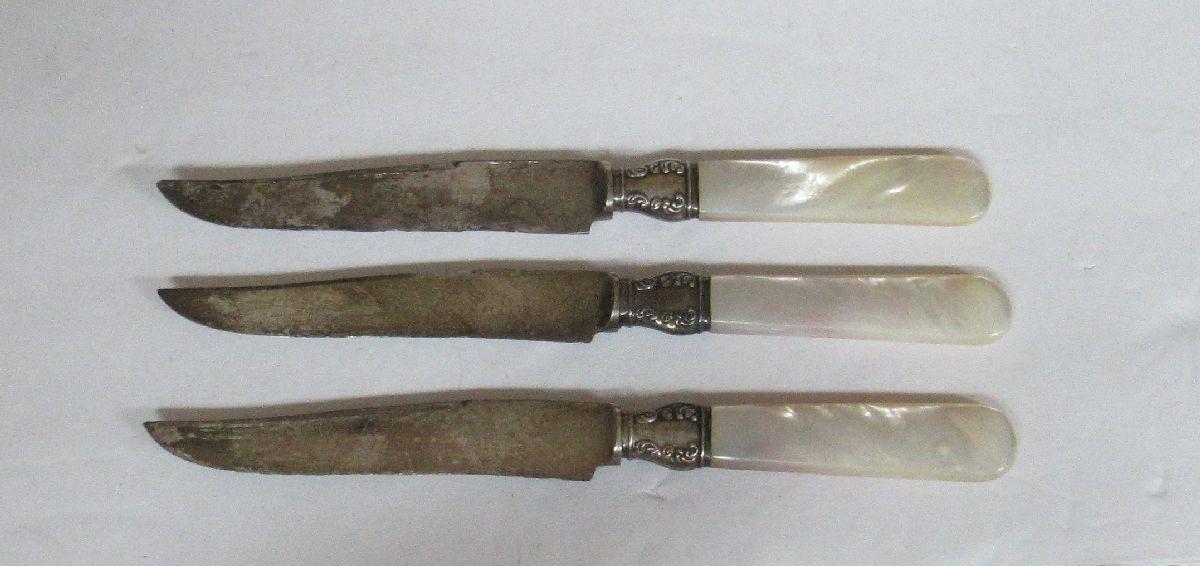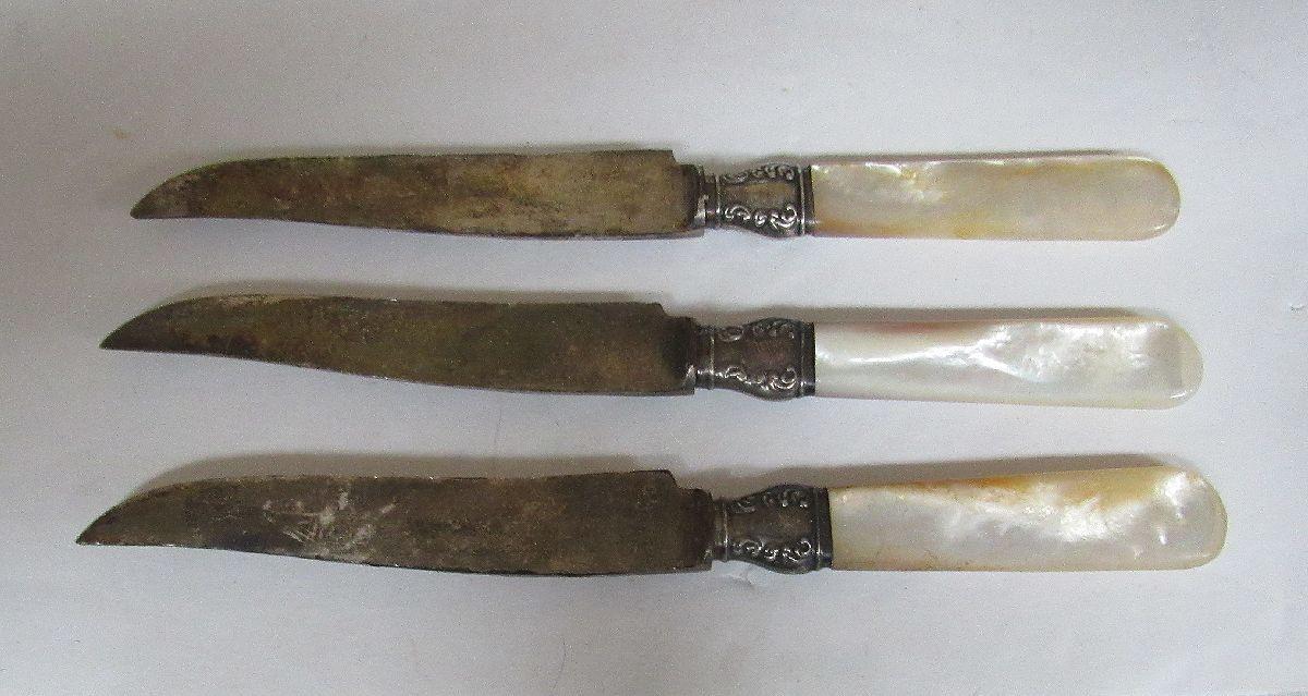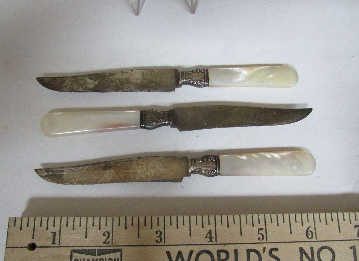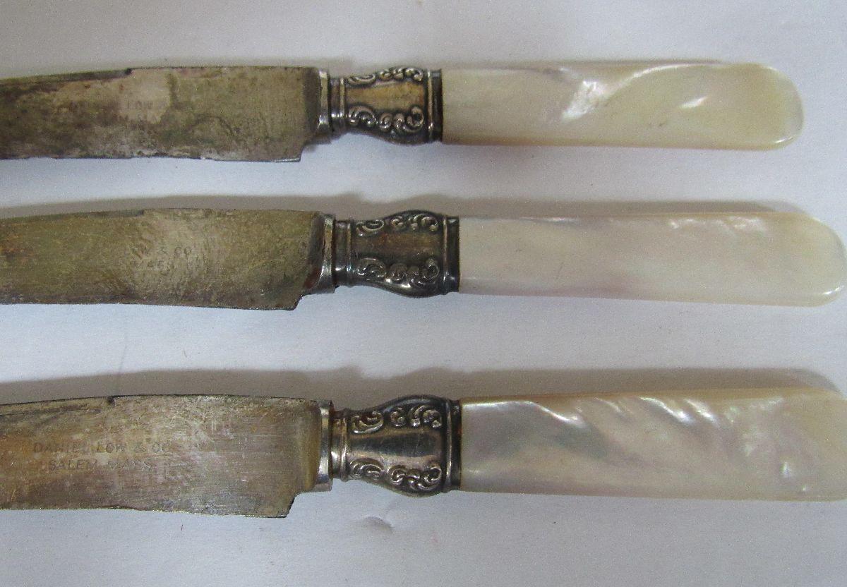 Antique Daniel Low & Co, Salem, MA Mother of Pearl With Sterling Fittings Knives