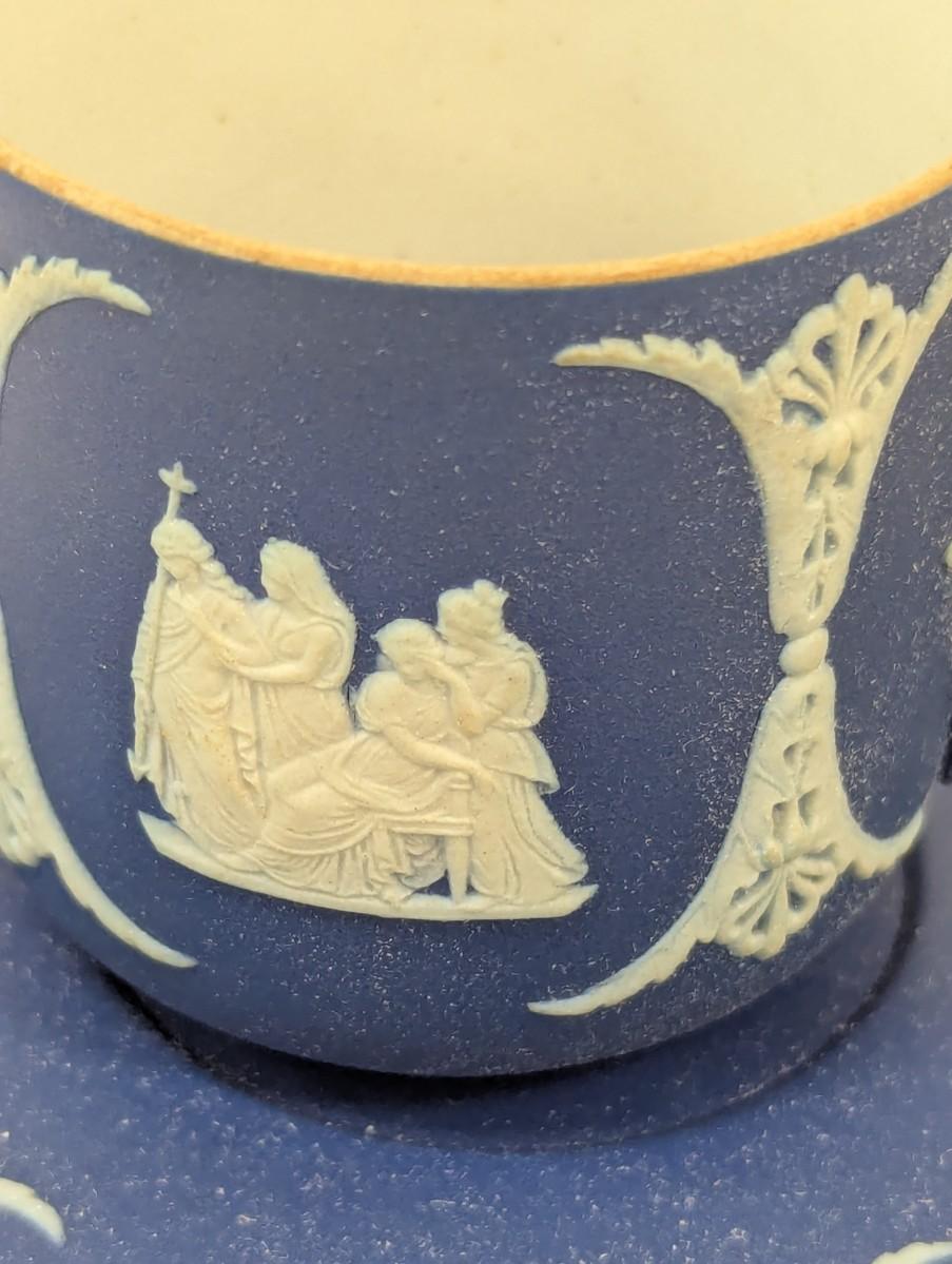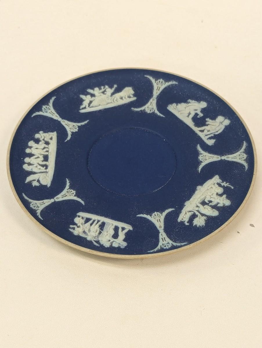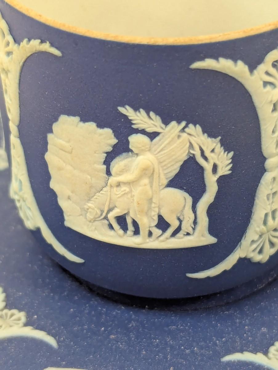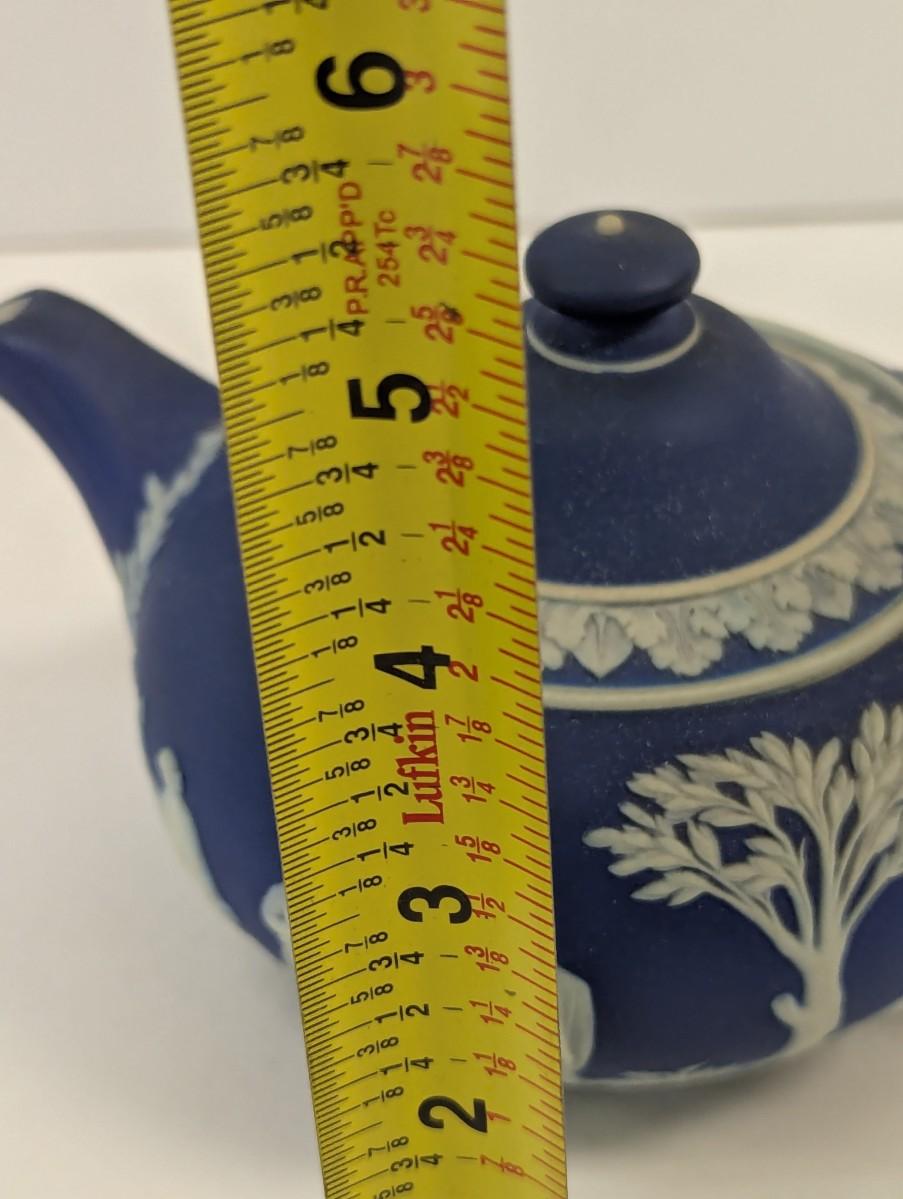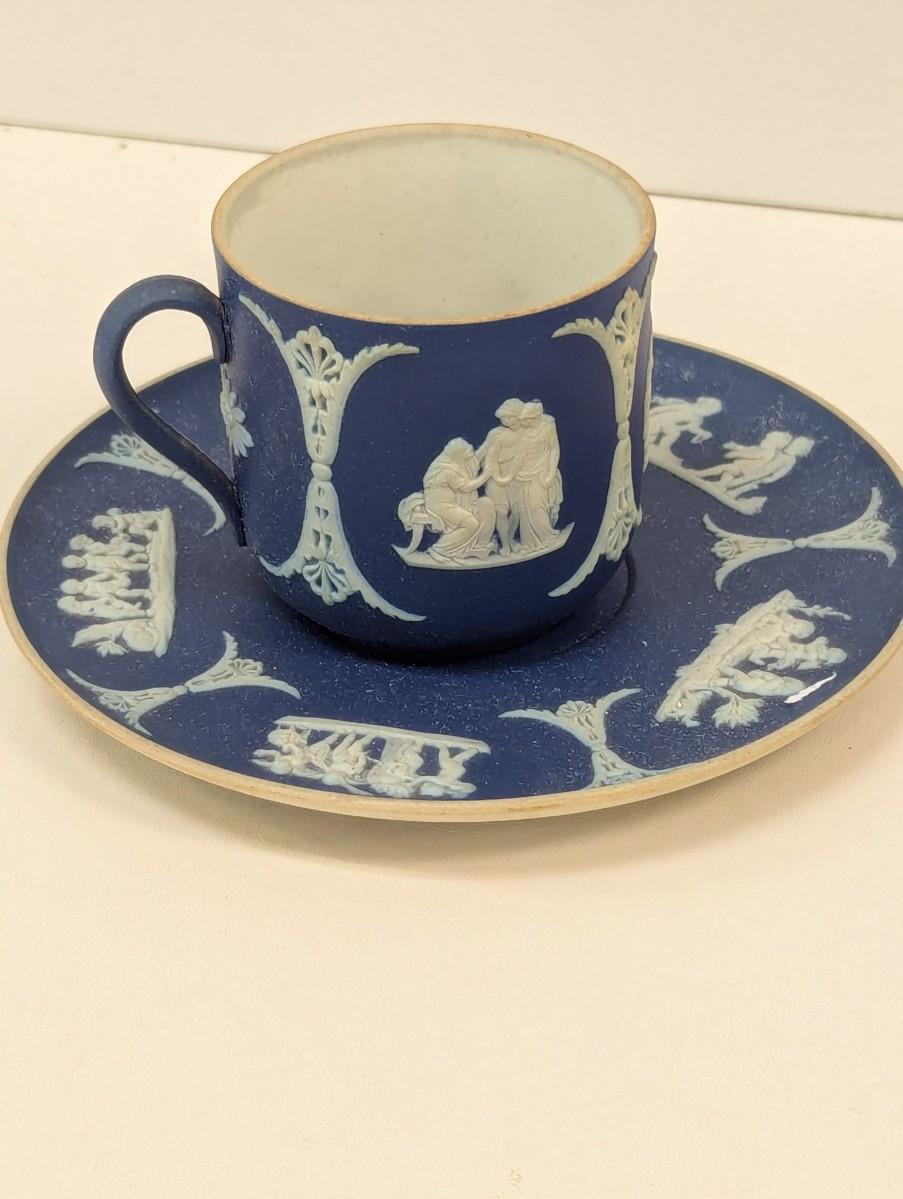 Antique Dark Blue Wedgwood Jasperware Tea Pot Cup & Saucer