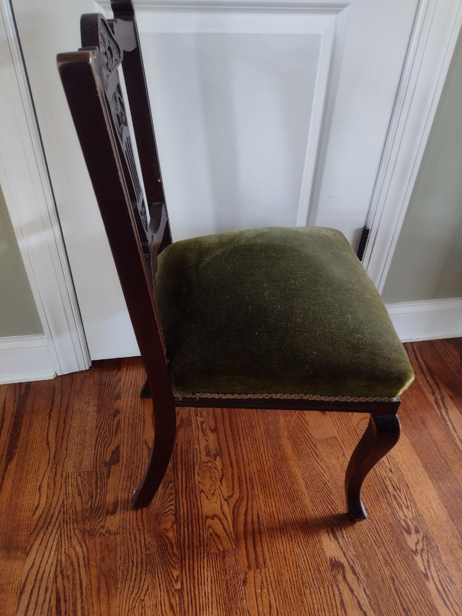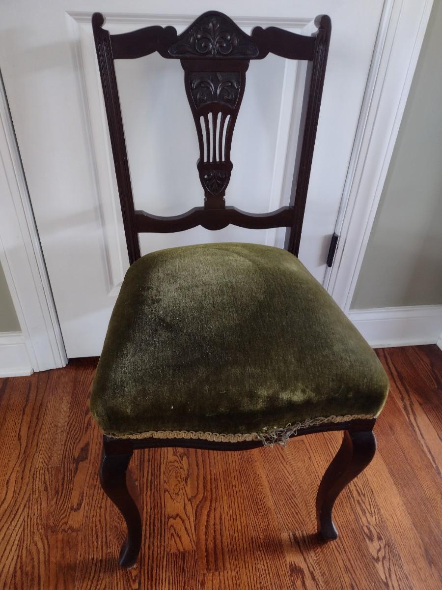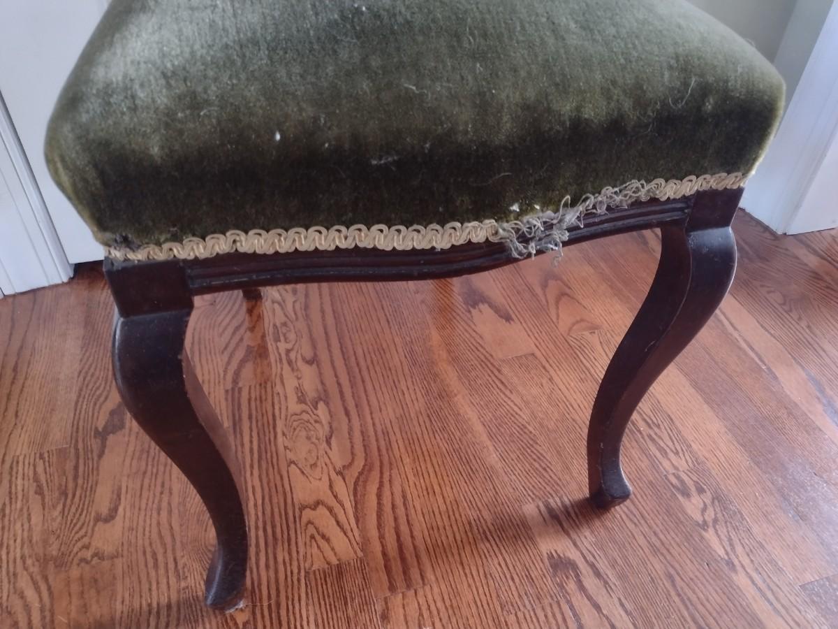 Antique Dark Walnut French Style Sitting Chair with Upholstered Seat. See photographs for condition issues with upholstery.