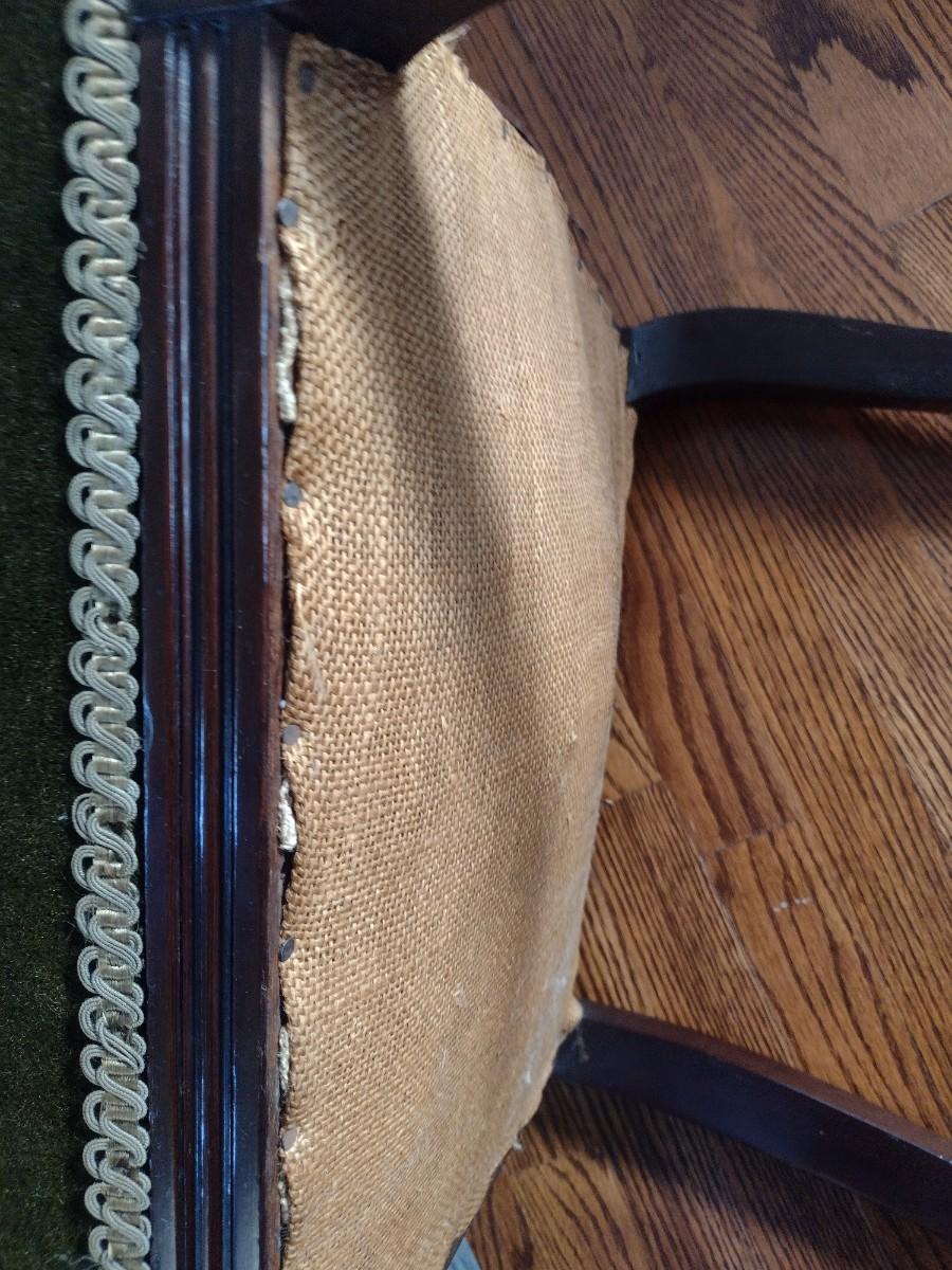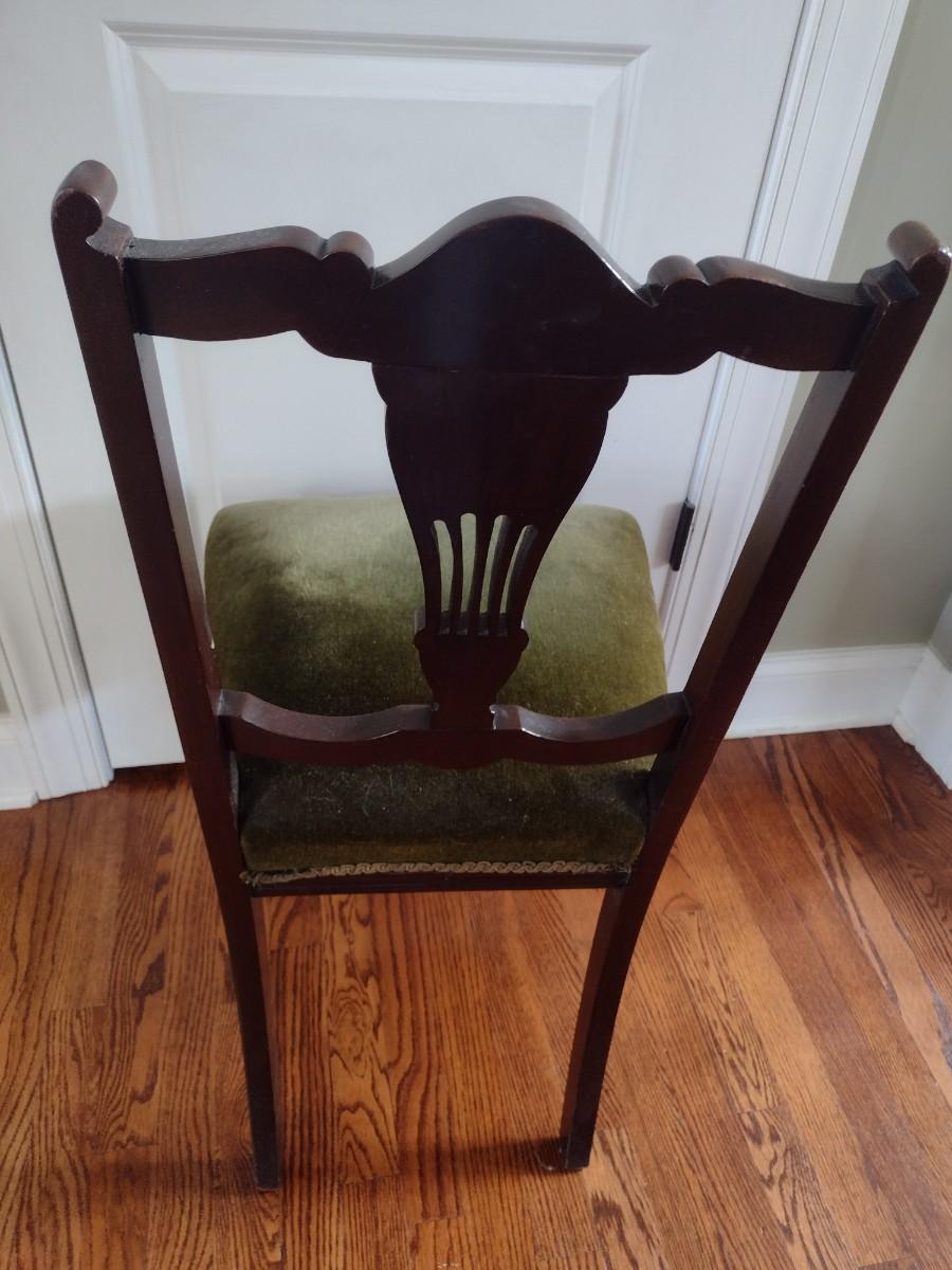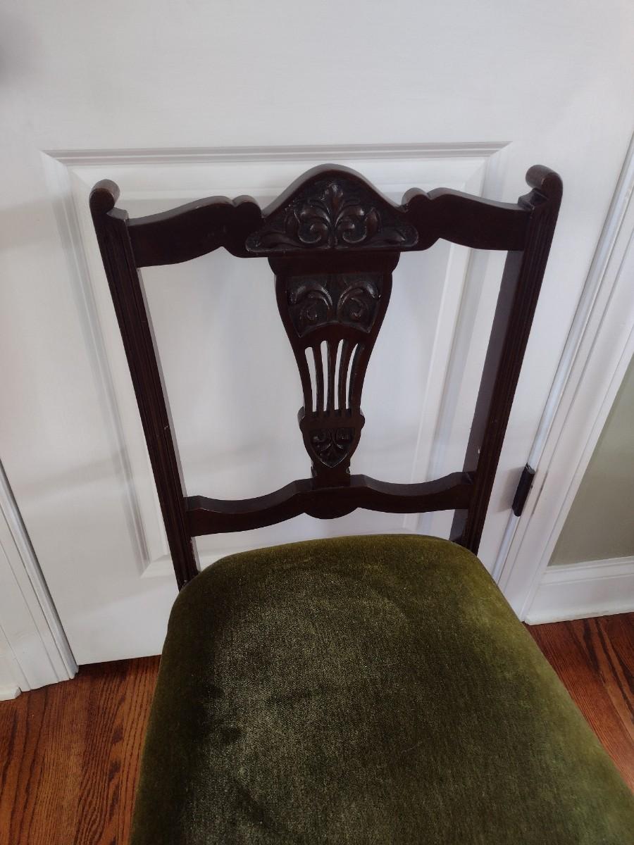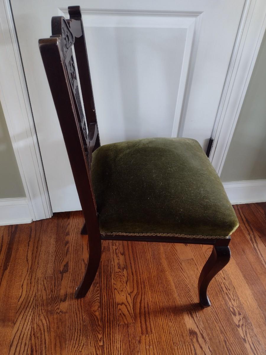 Antique Dark Walnut French Style Sitting Chair with Upholstered Seat. See photographs for condition issues with upholstery.