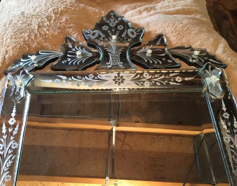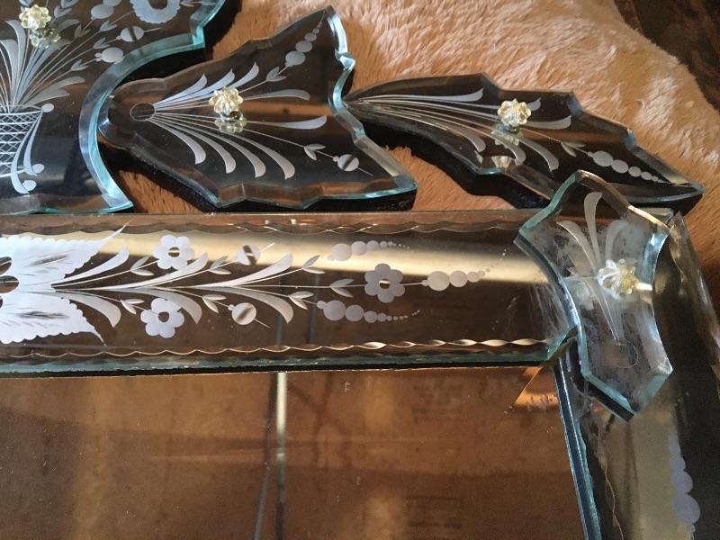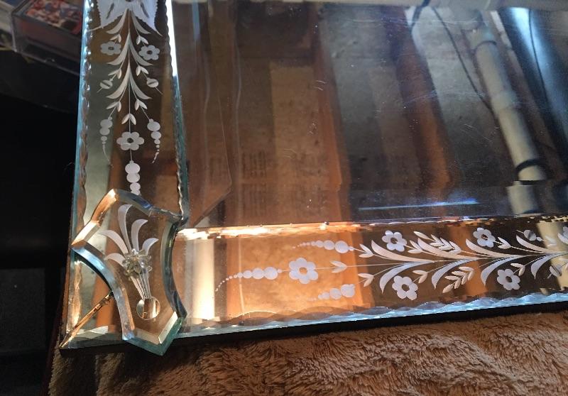 Antique Deco Large Heavy Beveled Wall Mirror 21” x 38”.