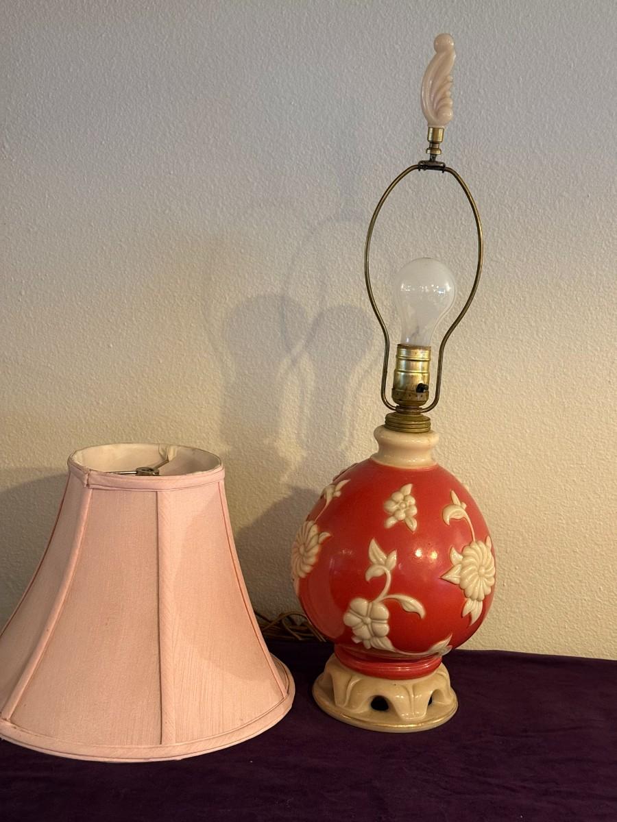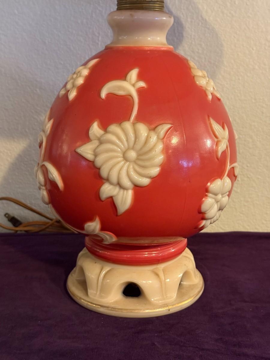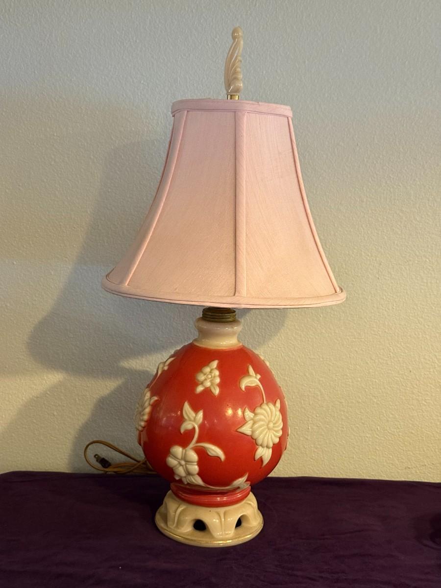 Antique Deco Pink - Orange Pressed Glass Lamp Circ 1940