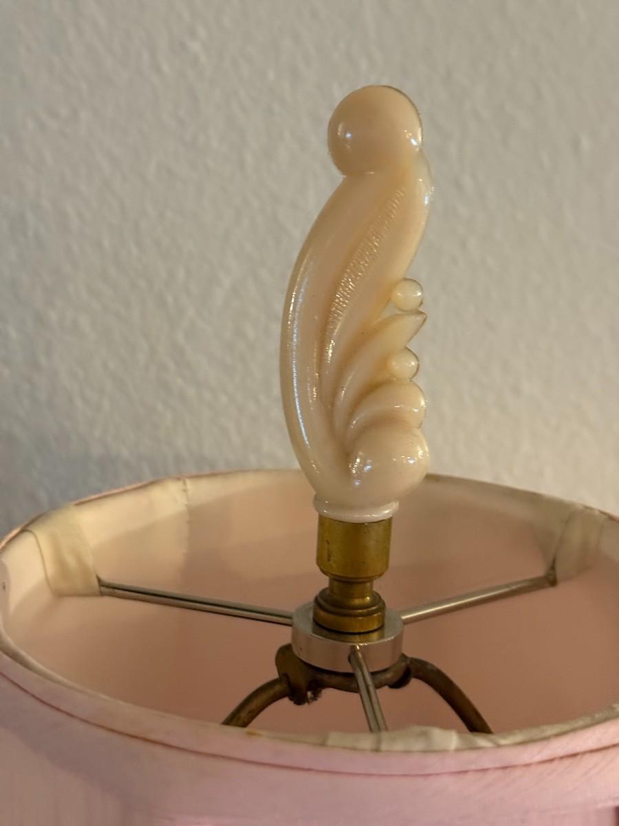 Pre-owned Antique Deco Pink, Orange Pressed Glass Lamp, Opaline Glass Flowers and Finial.