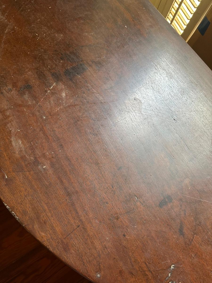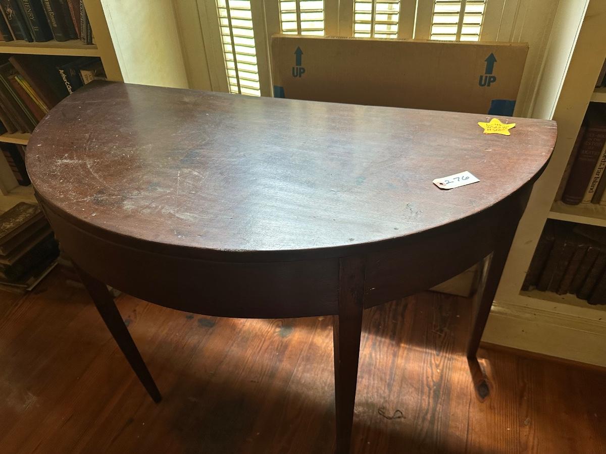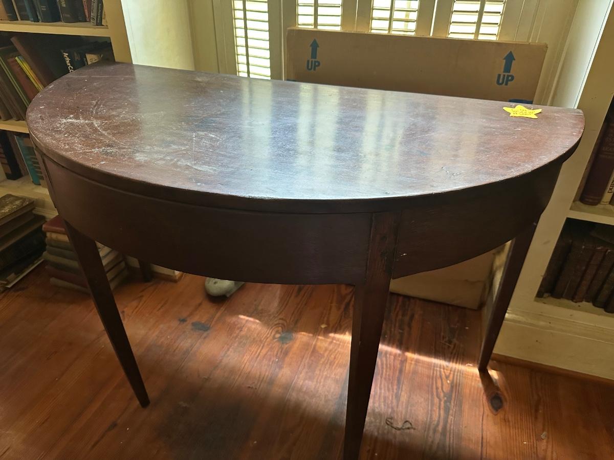 ANTIQUE DEMILUNE TABLE NEEDS REPAIRS AS PICTURED