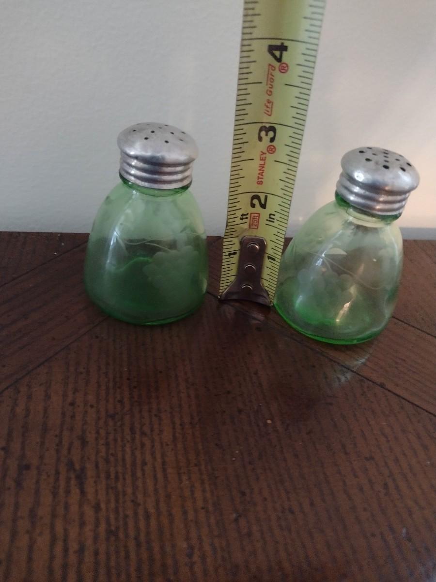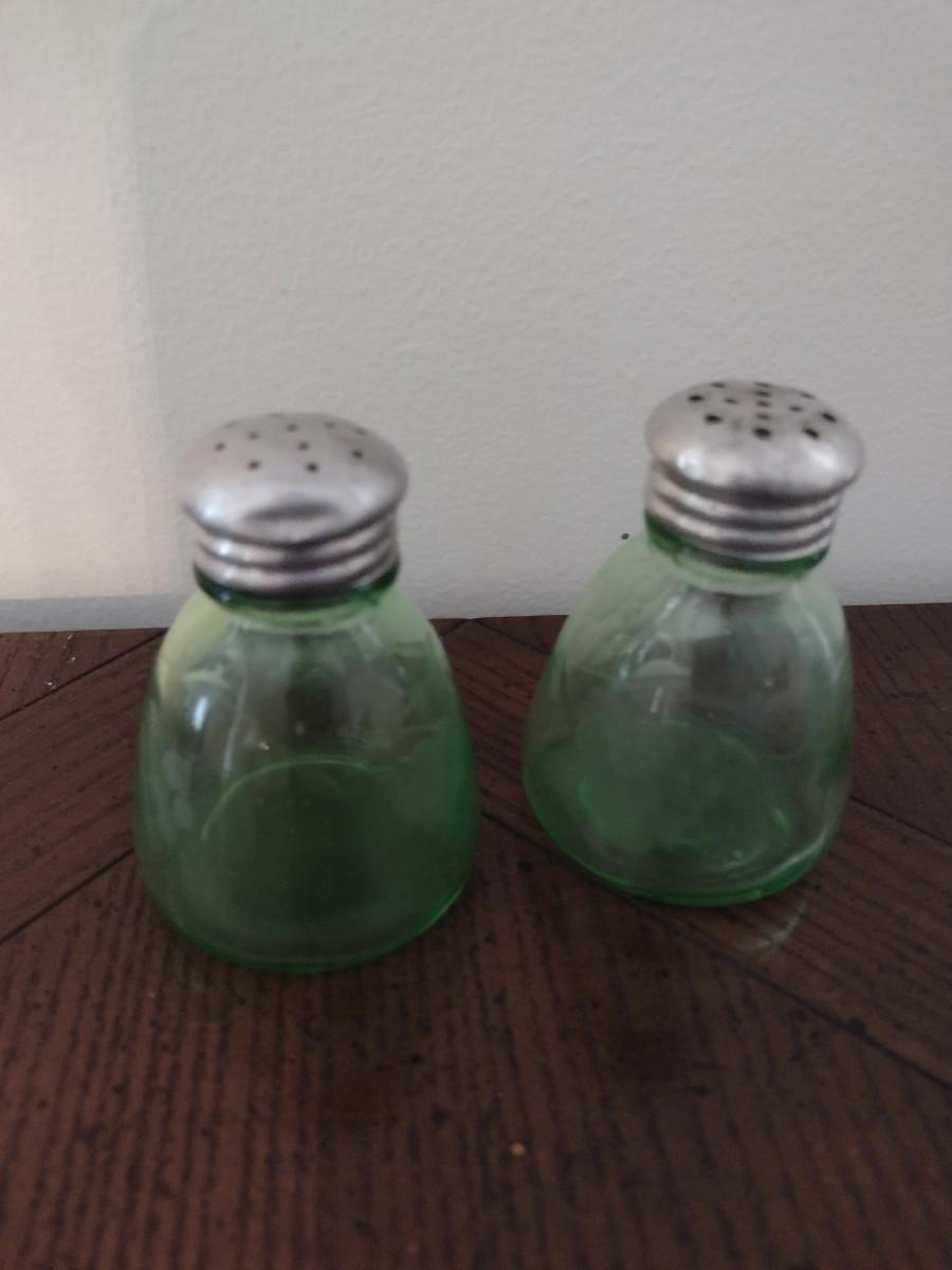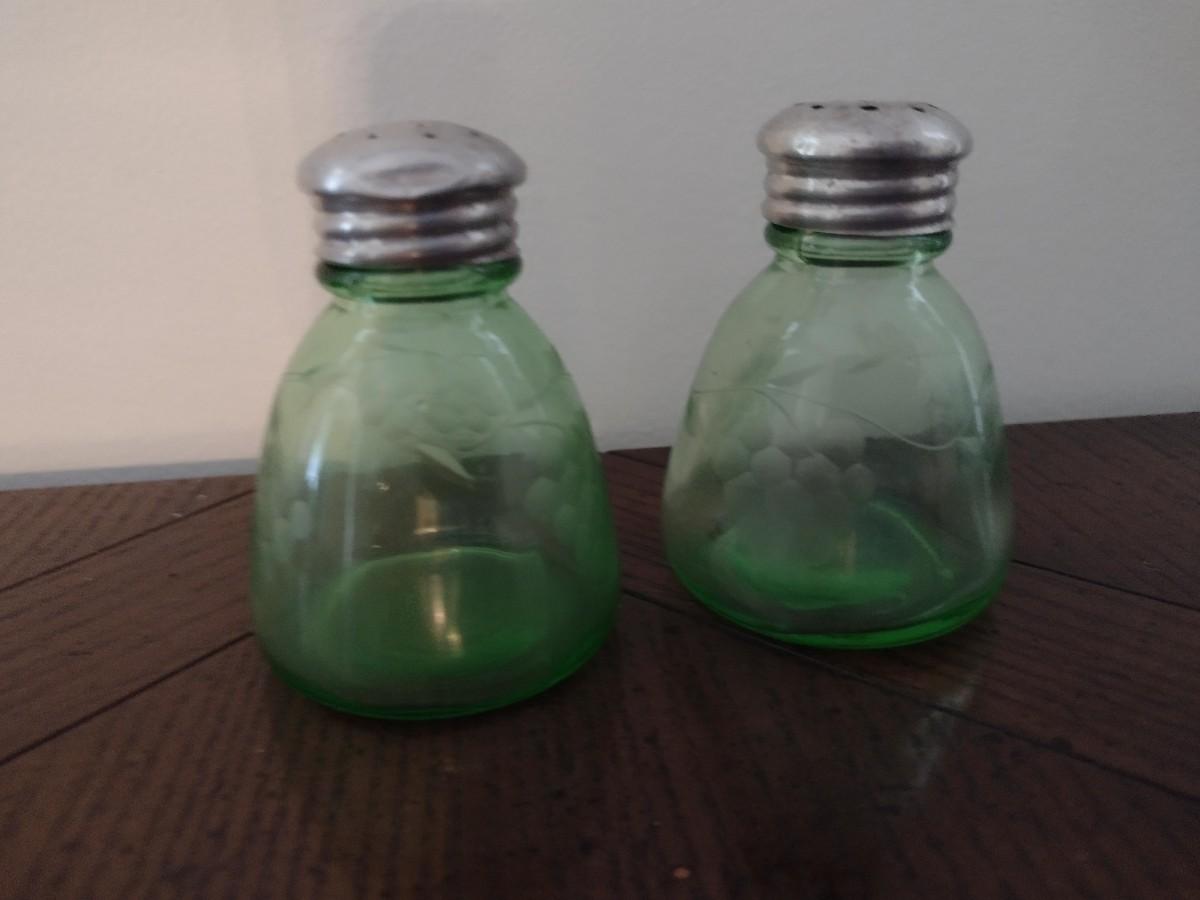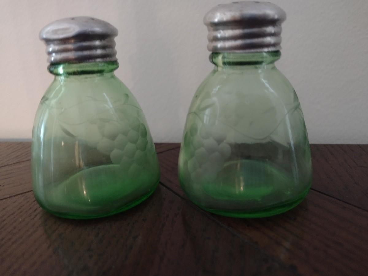 Antique Depression Uranium Glass Salt and Pepper Shakers