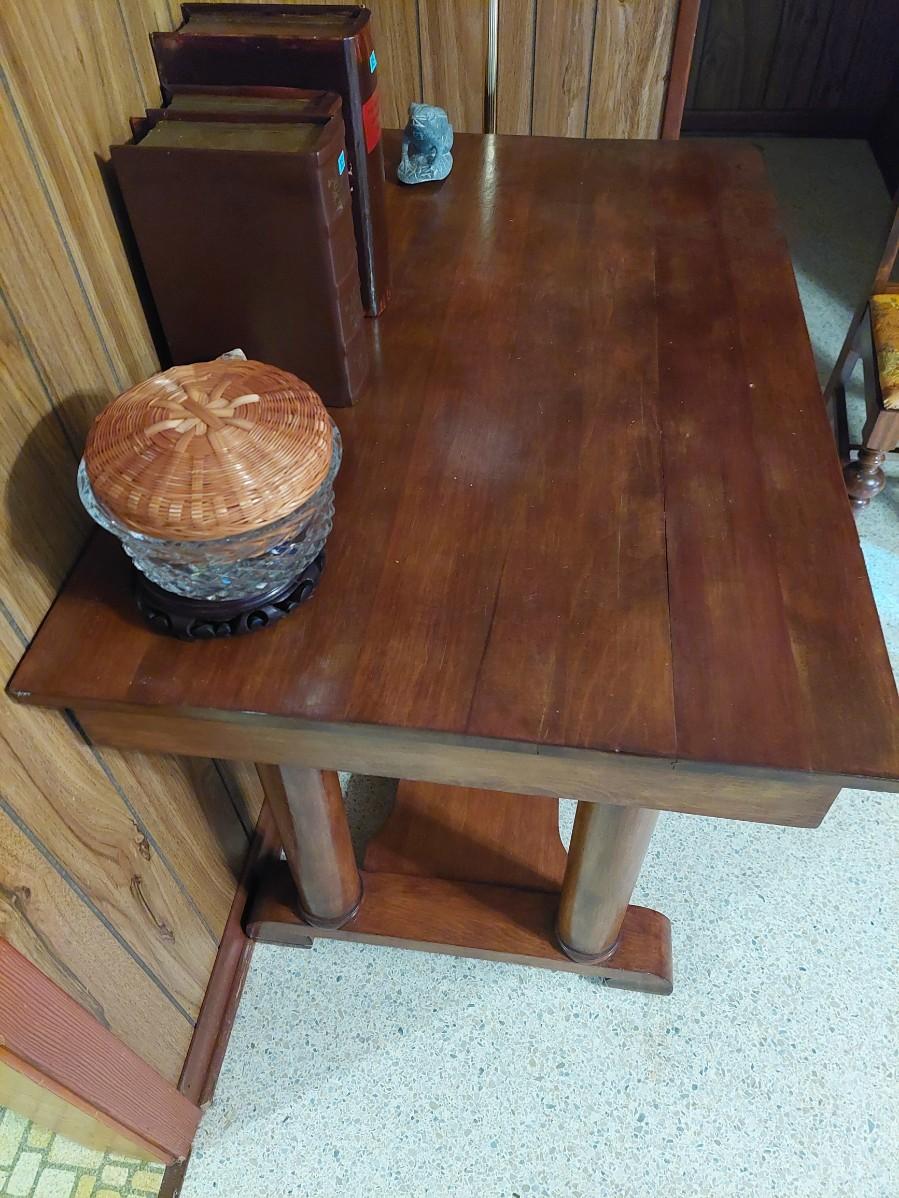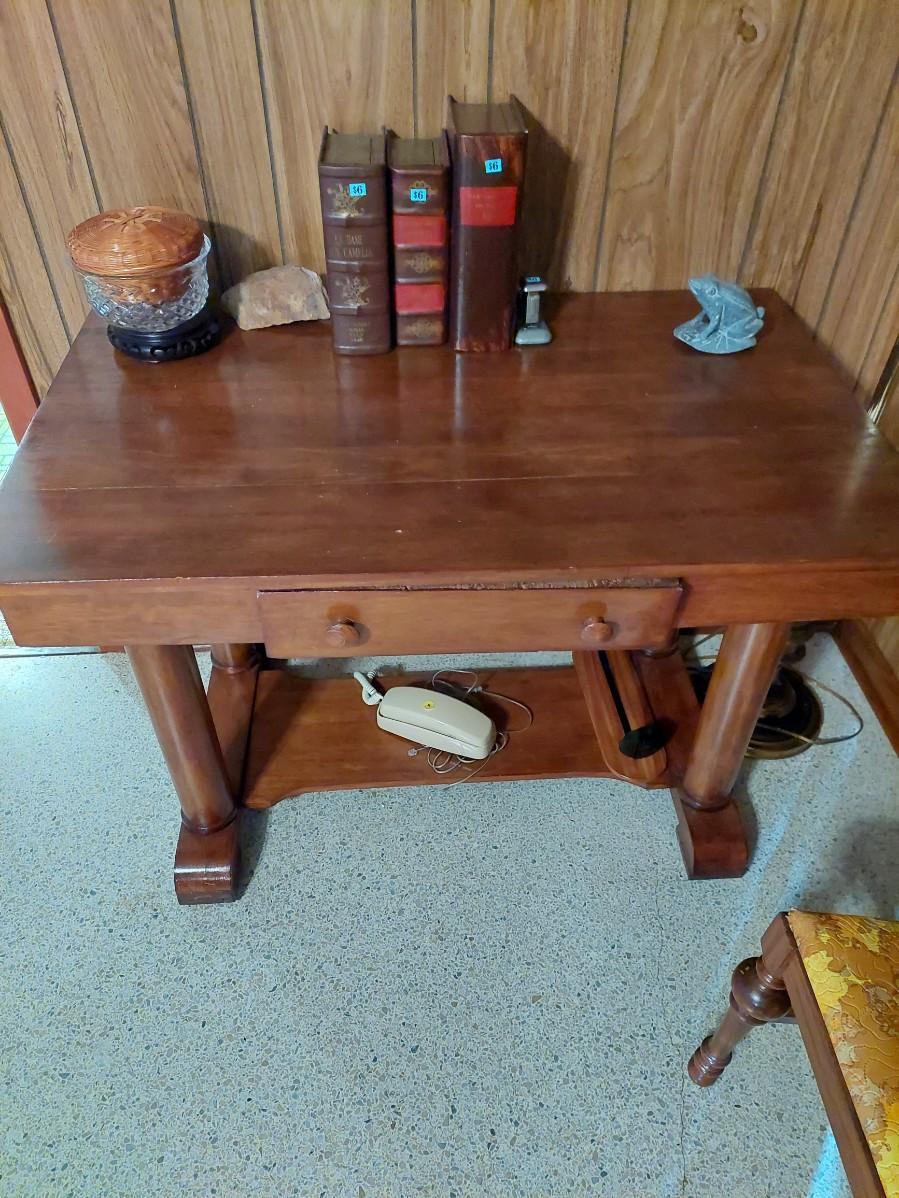This solid wood antique desk. Dimensions are 29" Tall 42" Wide & 26" deep
