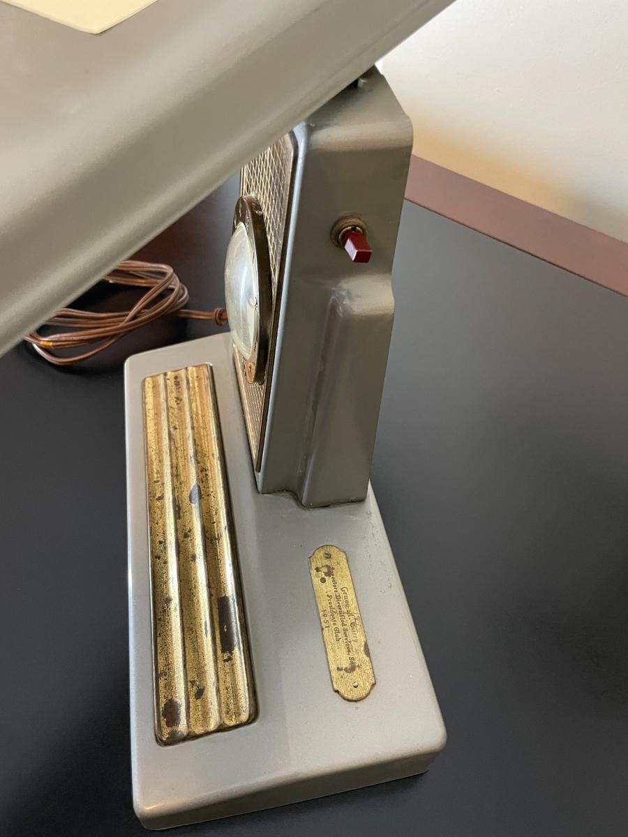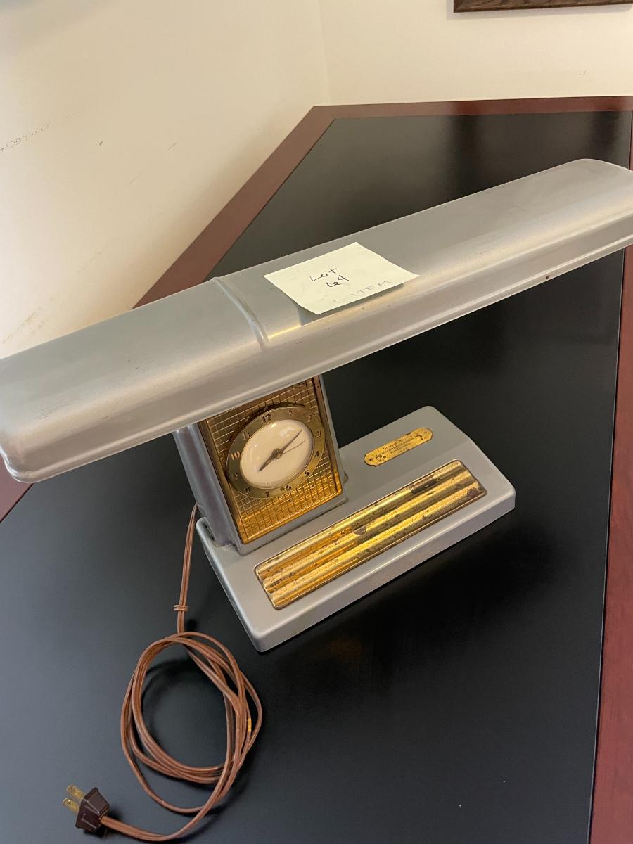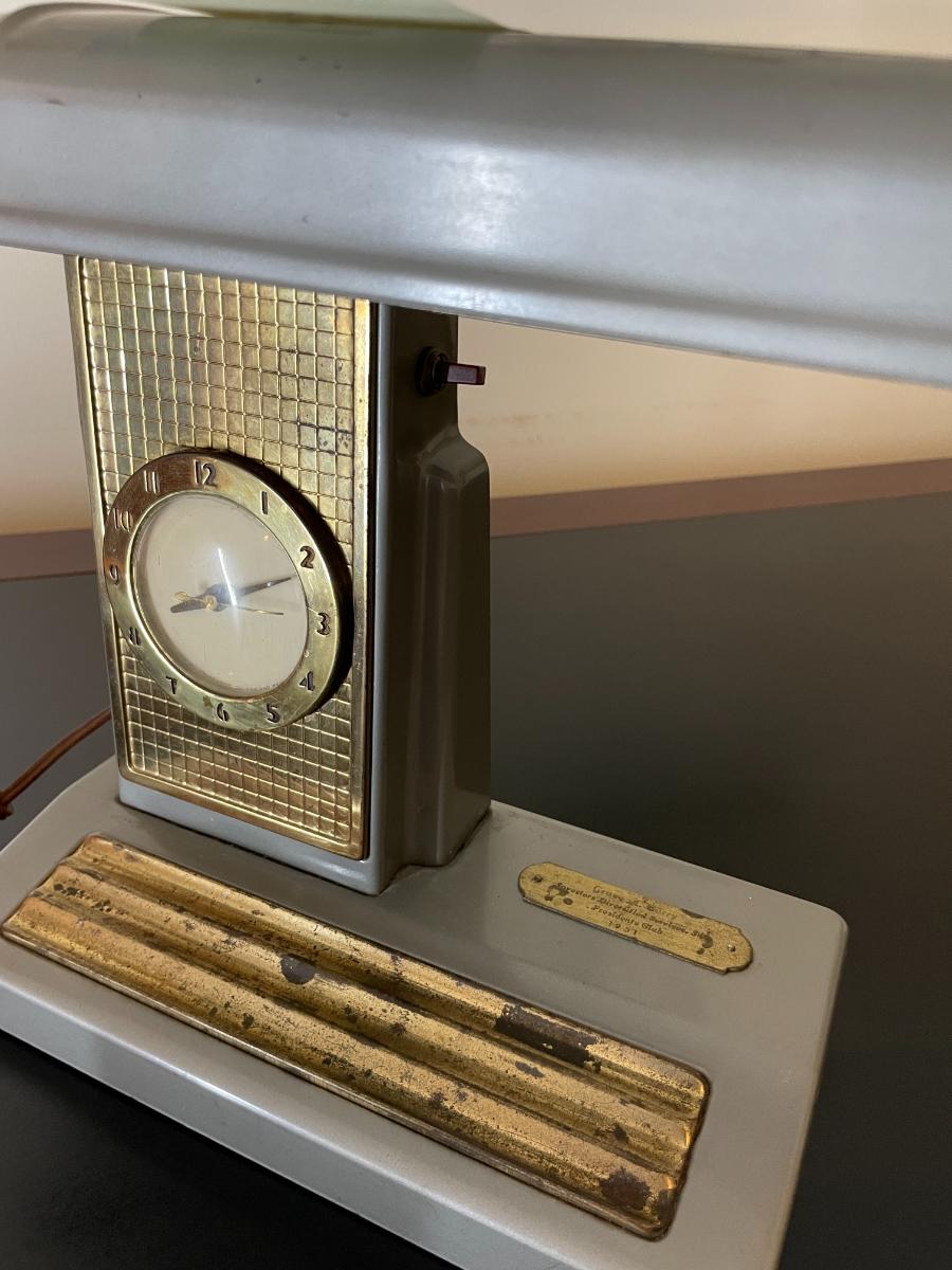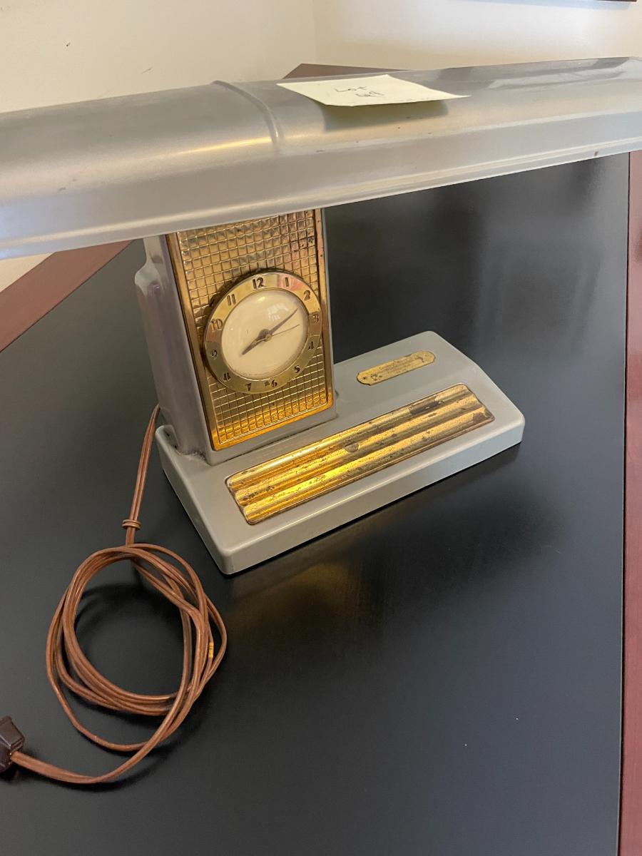 Swivel top Antique Desk light manufactured by Telechrom Light works, clock does not. It may need some electrical work