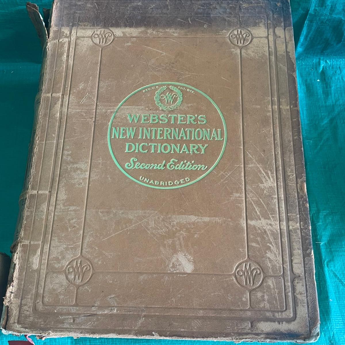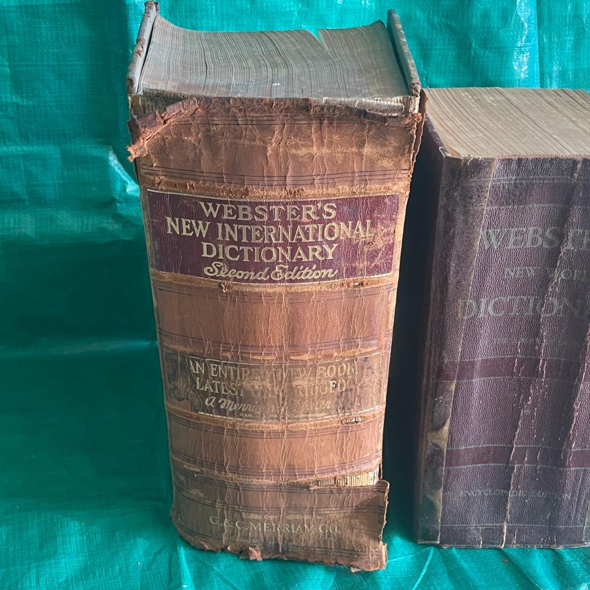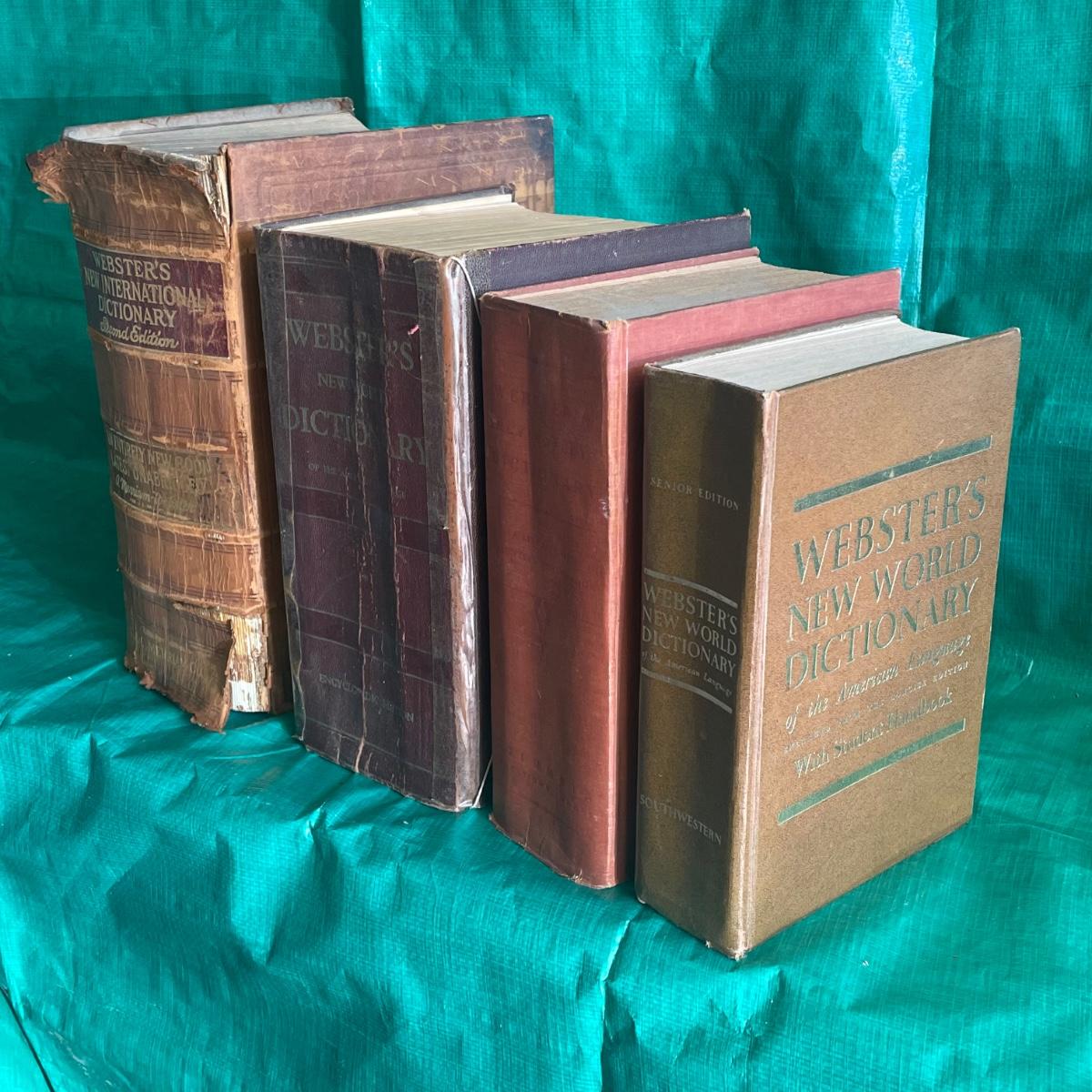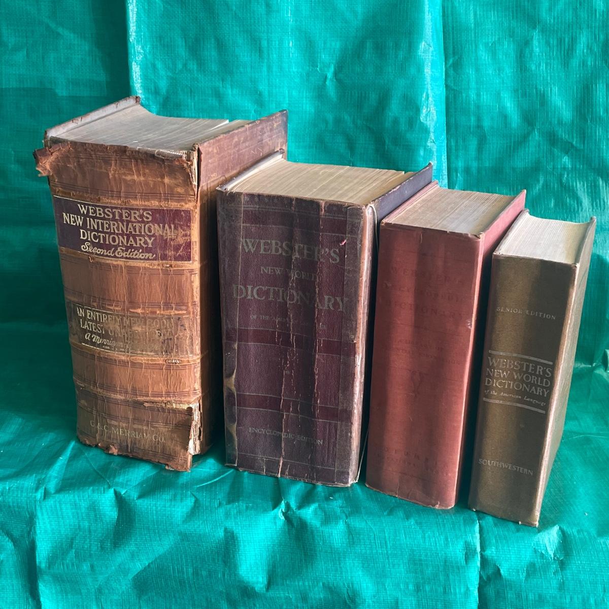 Four antique dictionaries in this lot. The two smaller books are in good condition, the two larger are as well but they are more fragile and one has string attached and there is some pen inscriptions.