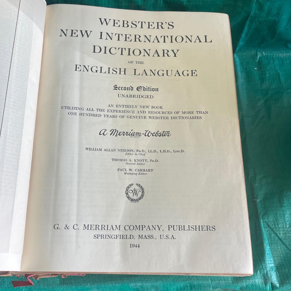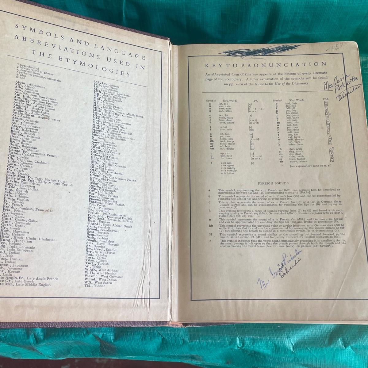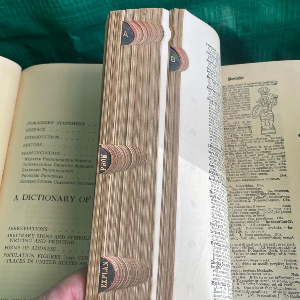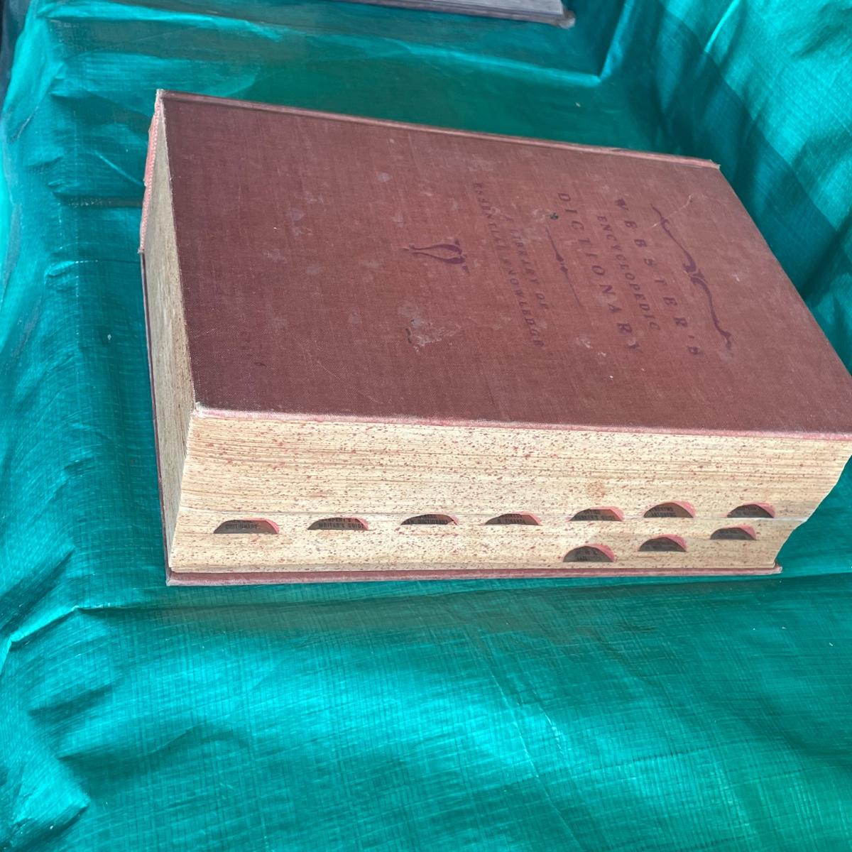 Four antique dictionaries in this lot. The two smaller books are in good condition, the two larger are as well but they are more fragile and one has string attached and there is some pen inscriptions.
