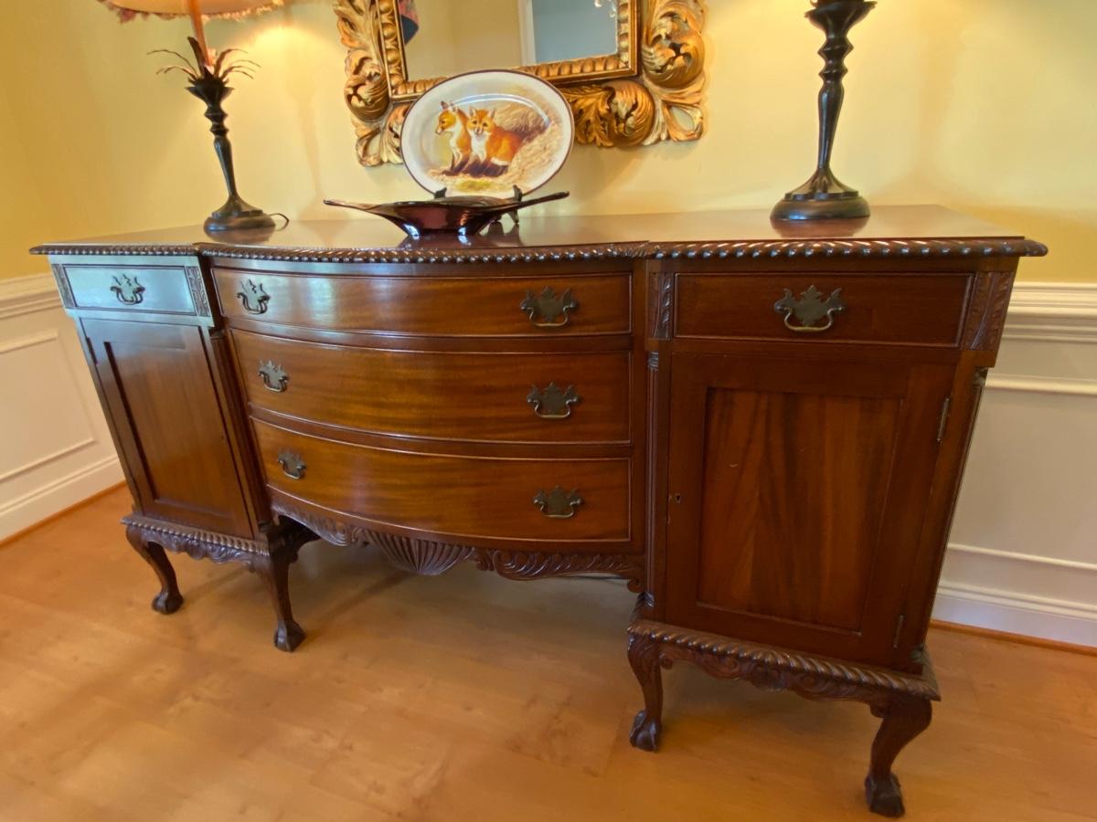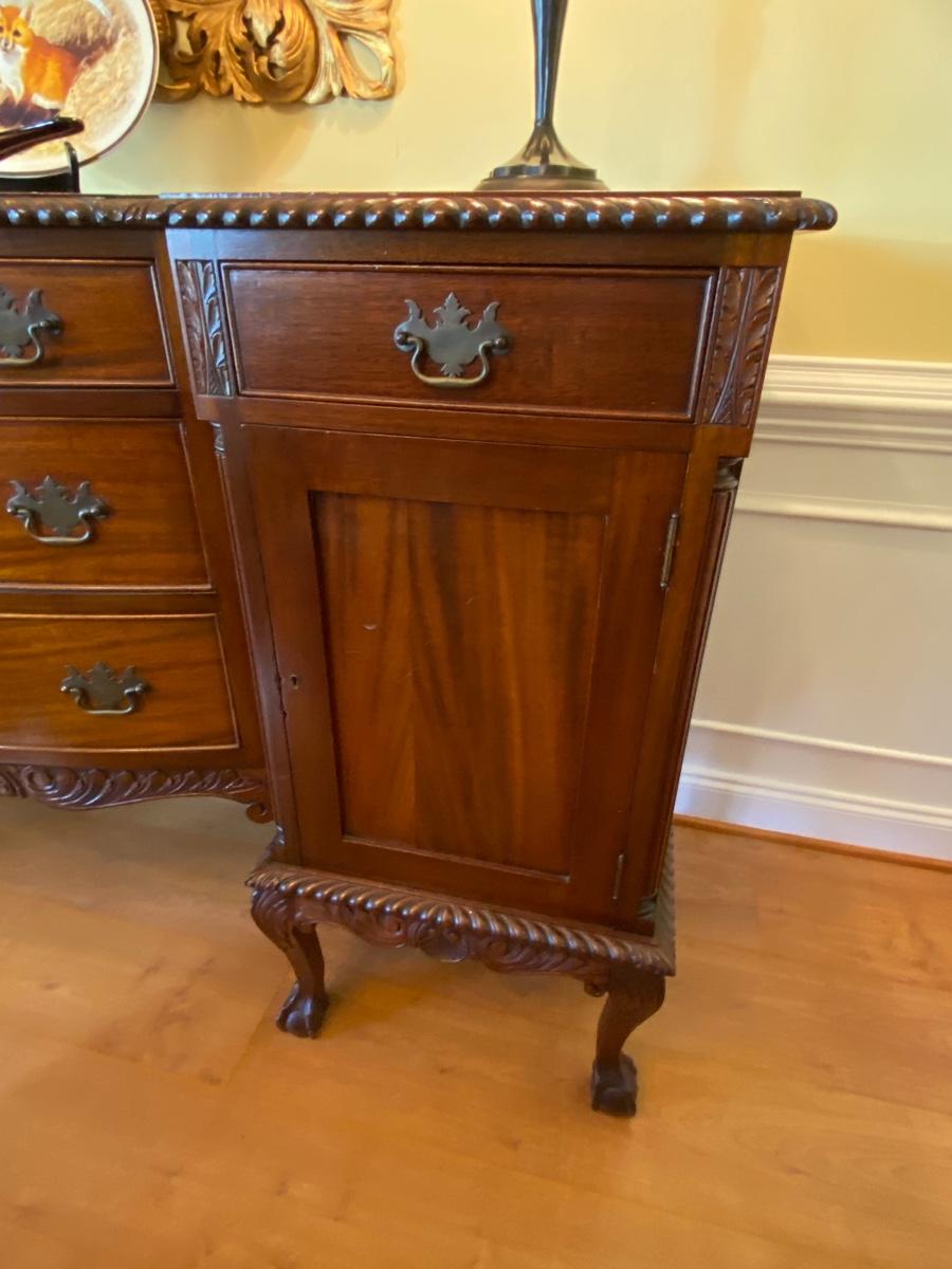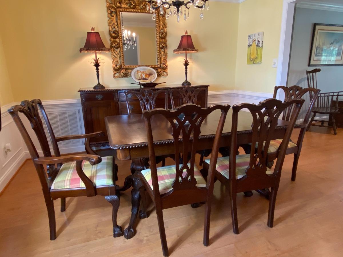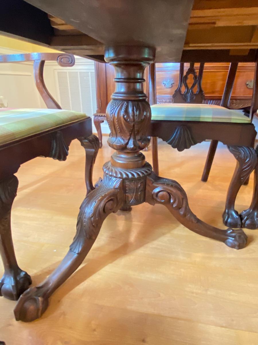 This is a beautiful set in great condition. Hand cut dovetailed drawers. Table has 3 additional 12” leaves and the table cover.