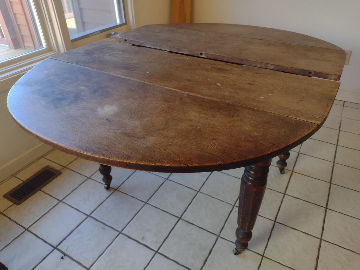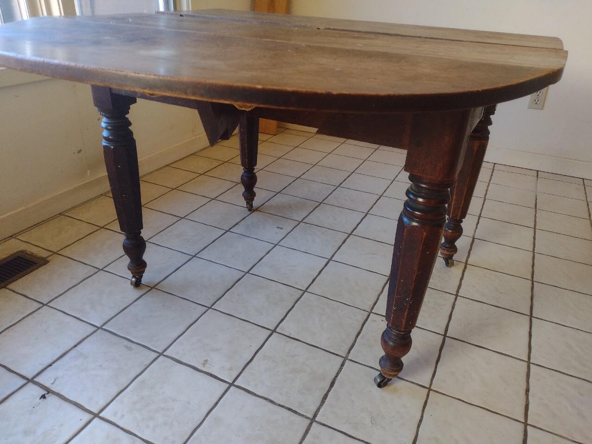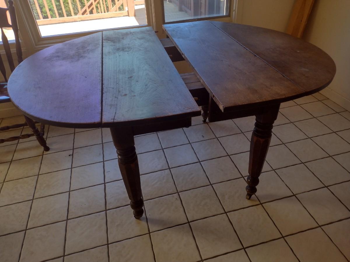 Antique Dining Table. Will need some minor repair to get leaf to close at table end as shown.