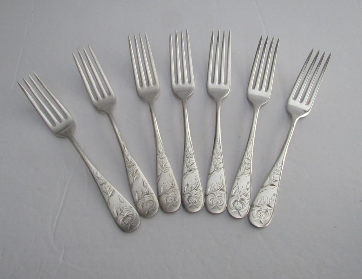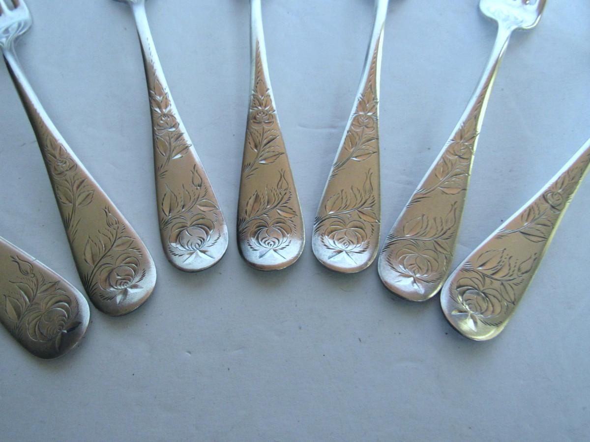 Antique Dinner Forks, Jac Rose Pattern, Sterling Inlaid, Holmes and Edwards, Set of 7