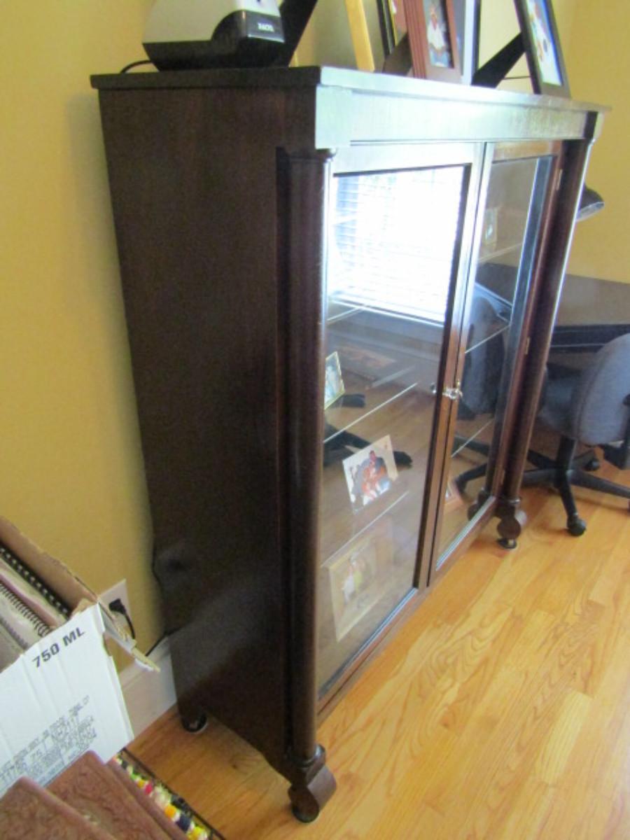 Antique Solid Wood Empire Double Door Glass Front Display Cabinet