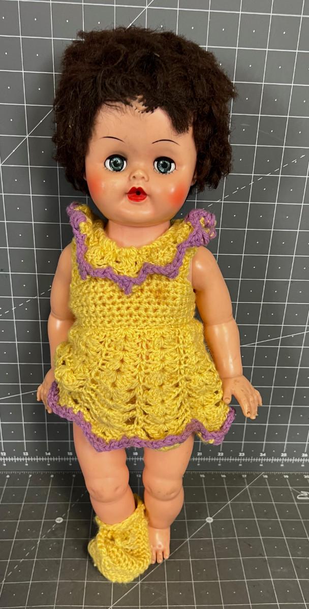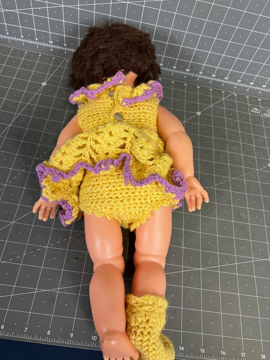 Missing a shoe. Homemade Crochet outfit. Used and shows wear