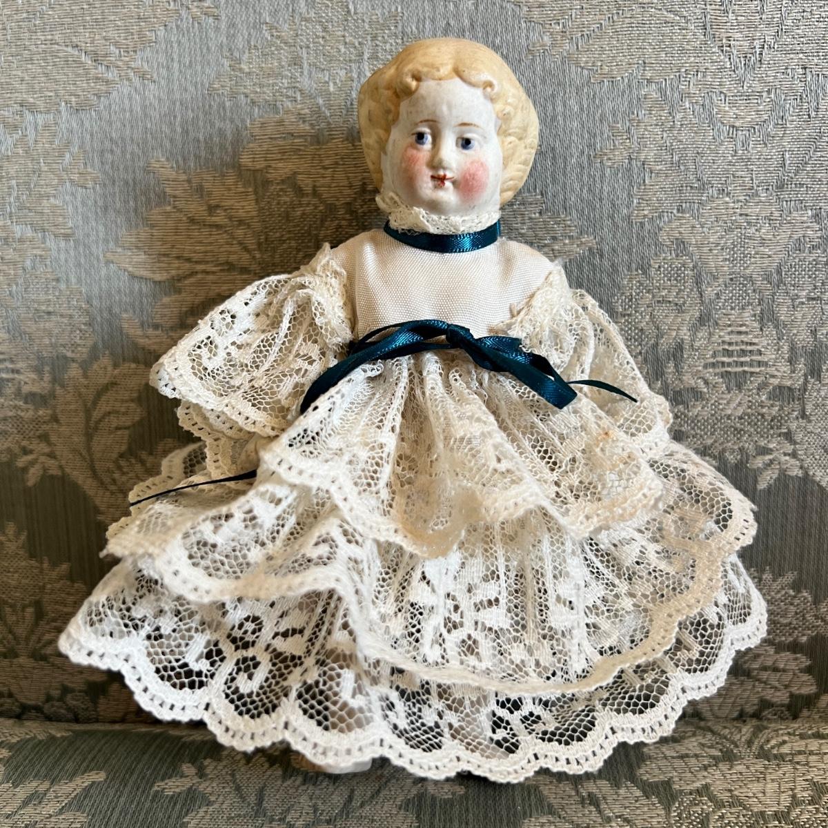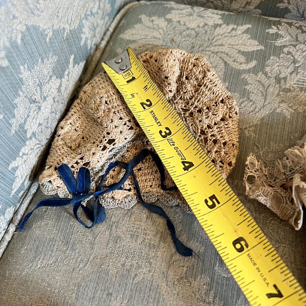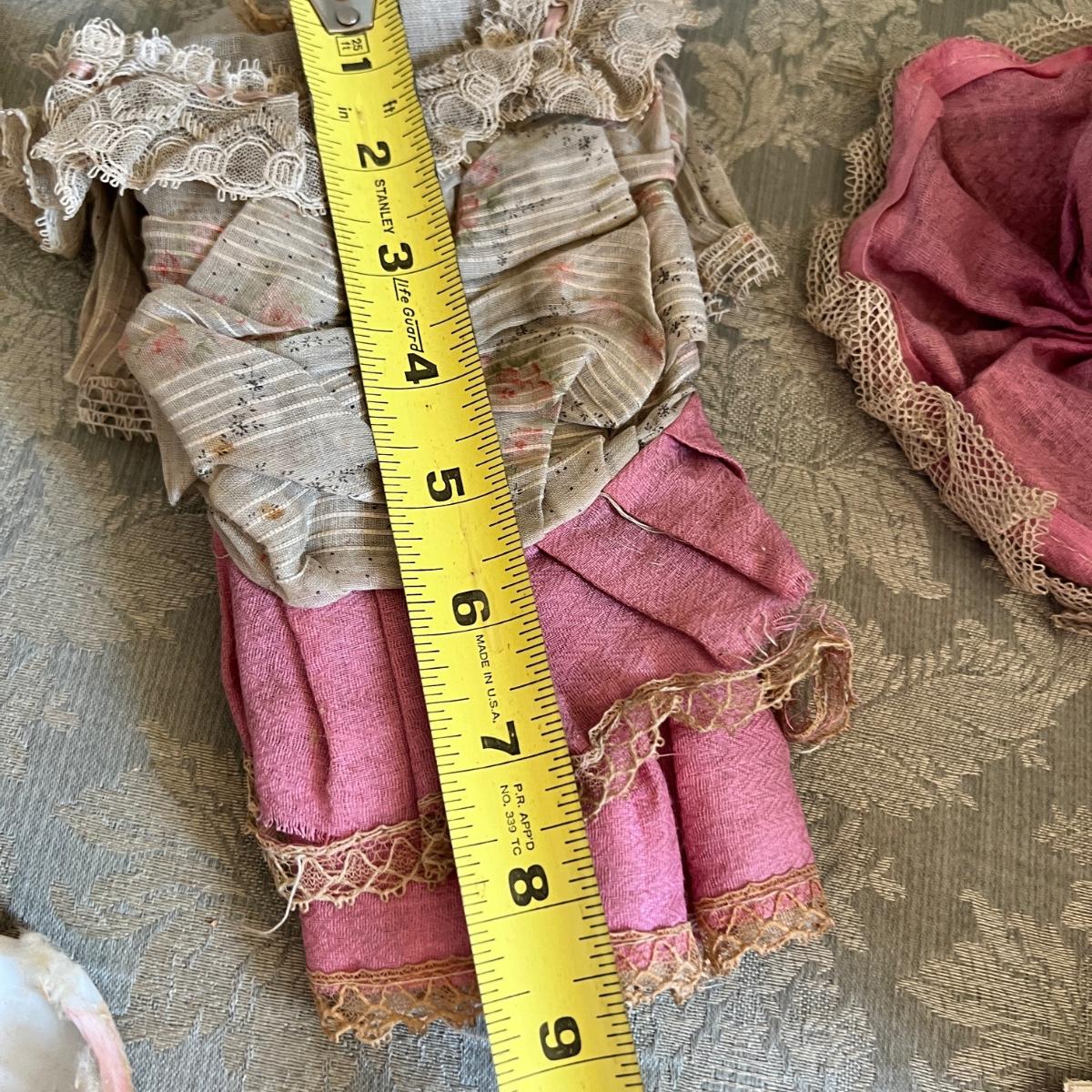 Lot includes one roughly 5" porcelain doll. The larger doll head is broken as shown in pics. Also comes with antique doll clothes. Would be good to use for repair.