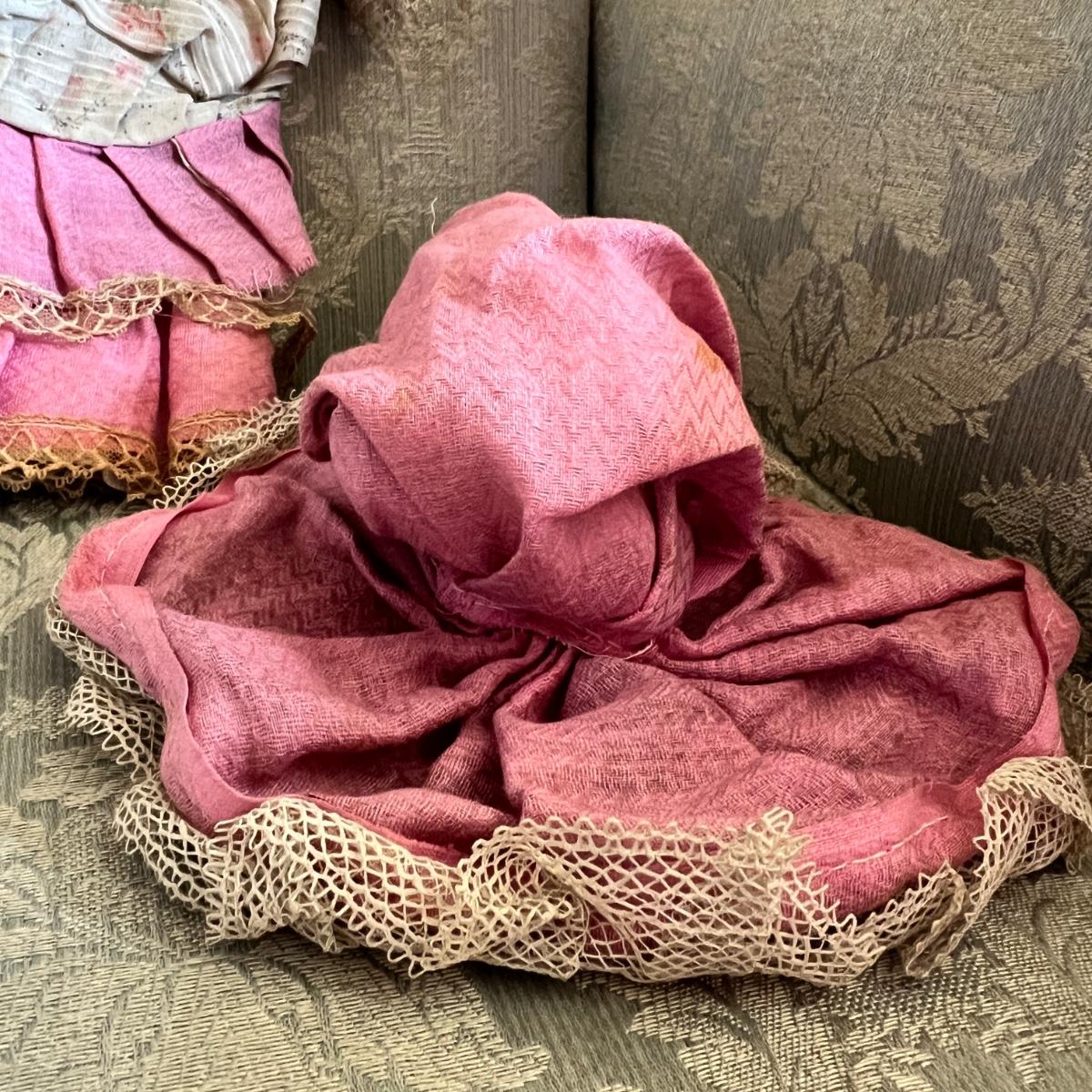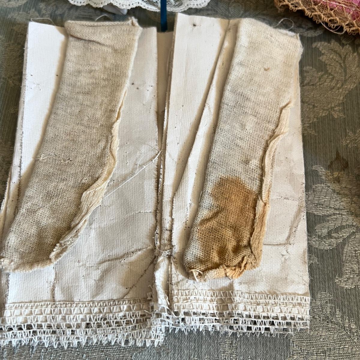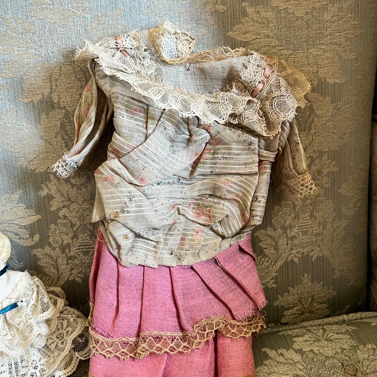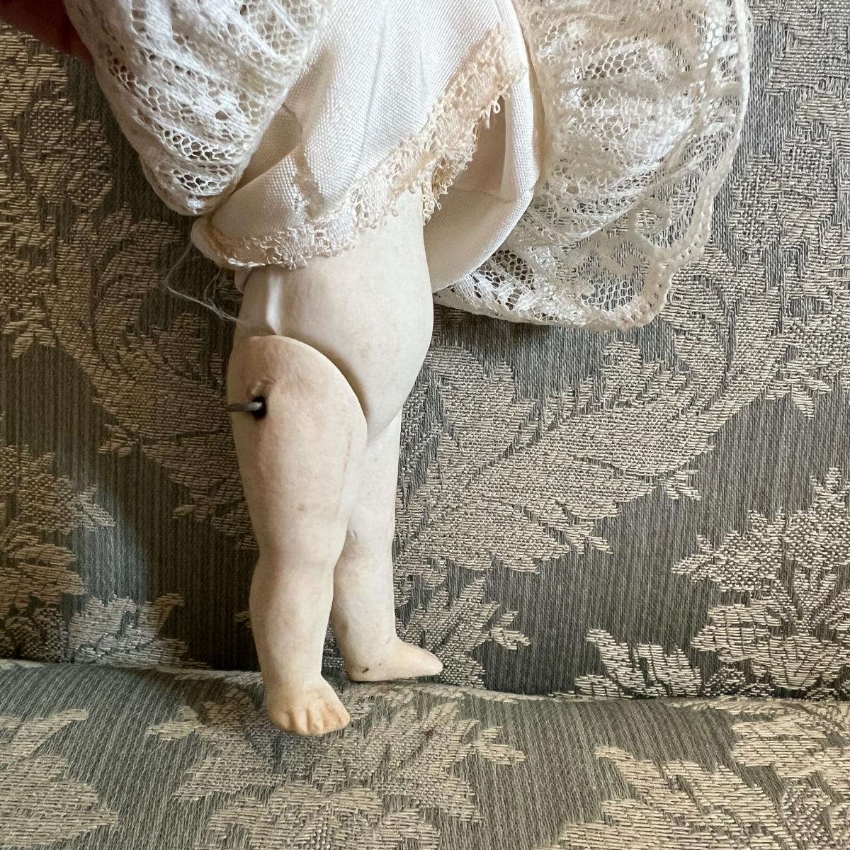 Lot includes one roughly 5" porcelain doll. The larger doll head is broken as shown in pics. Also comes with antique doll clothes. Would be good to use for repair.
