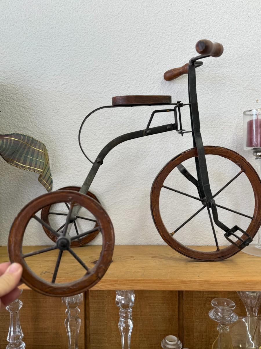 This delightful antique doll tricycle presents a unique addition to any collection. Its vintage charm is sure to spark joy and conversation.