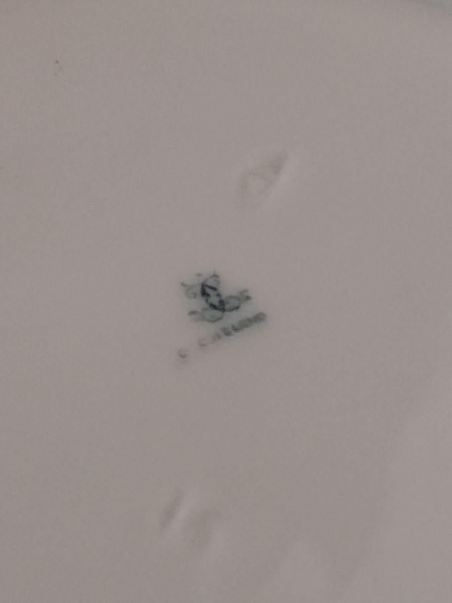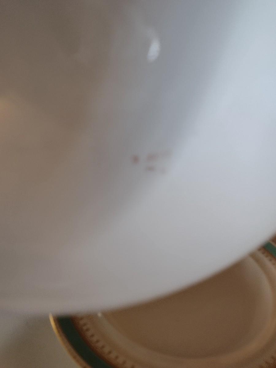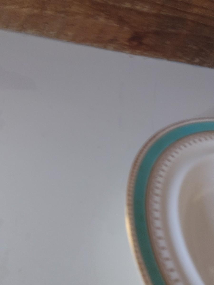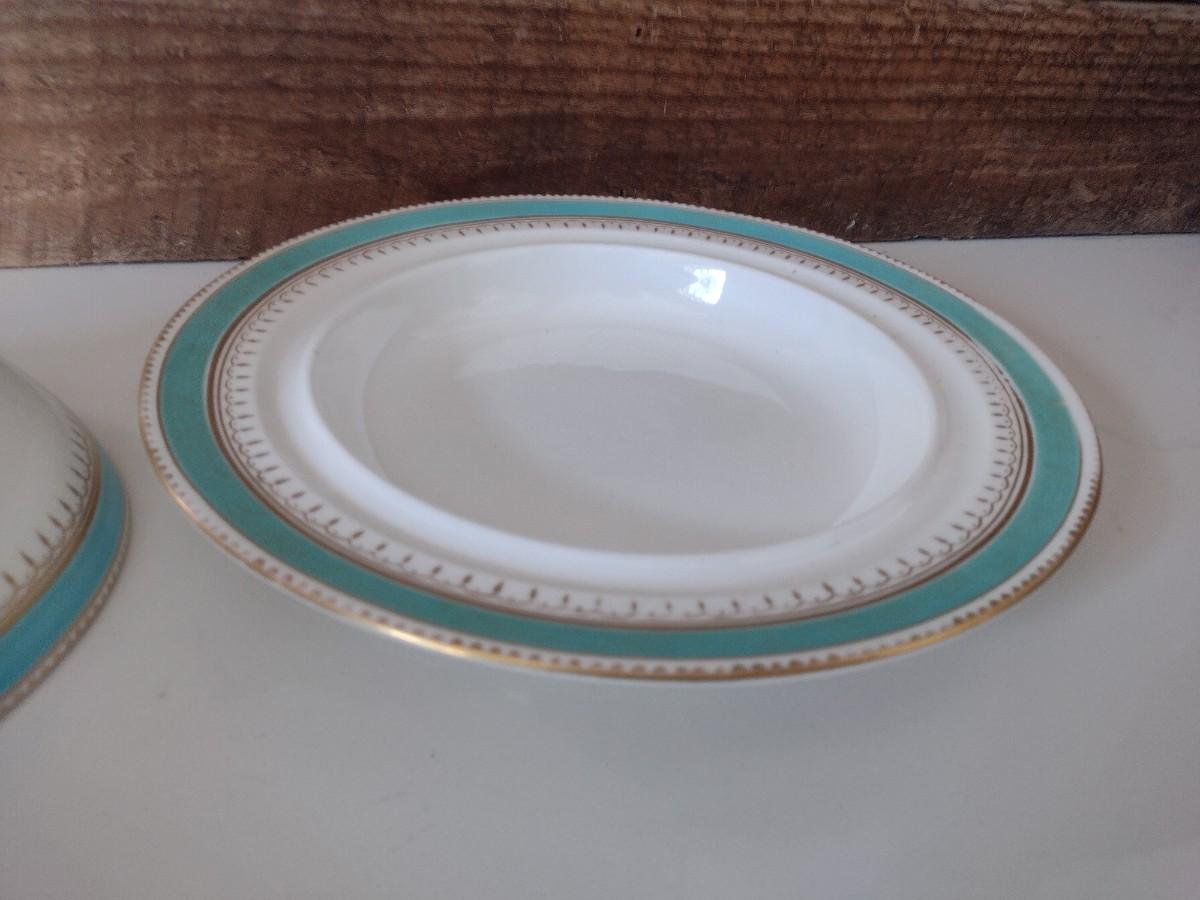 Antique Dome Lid Butter Dish with Gold Trim and Teal Banding