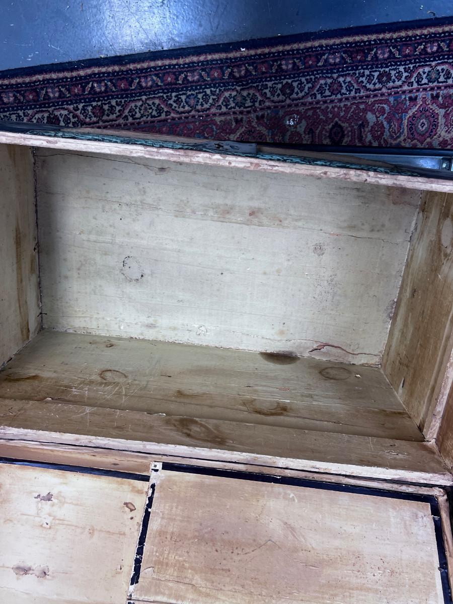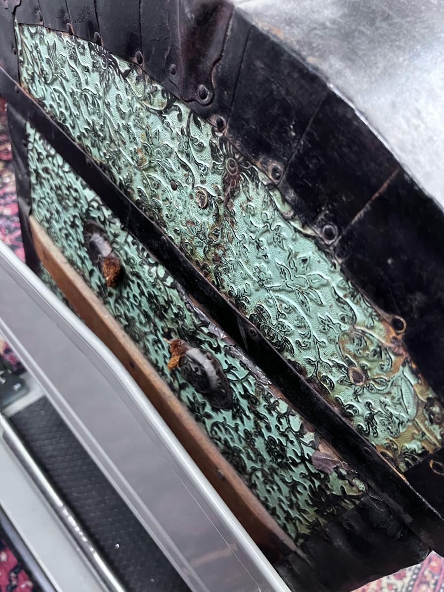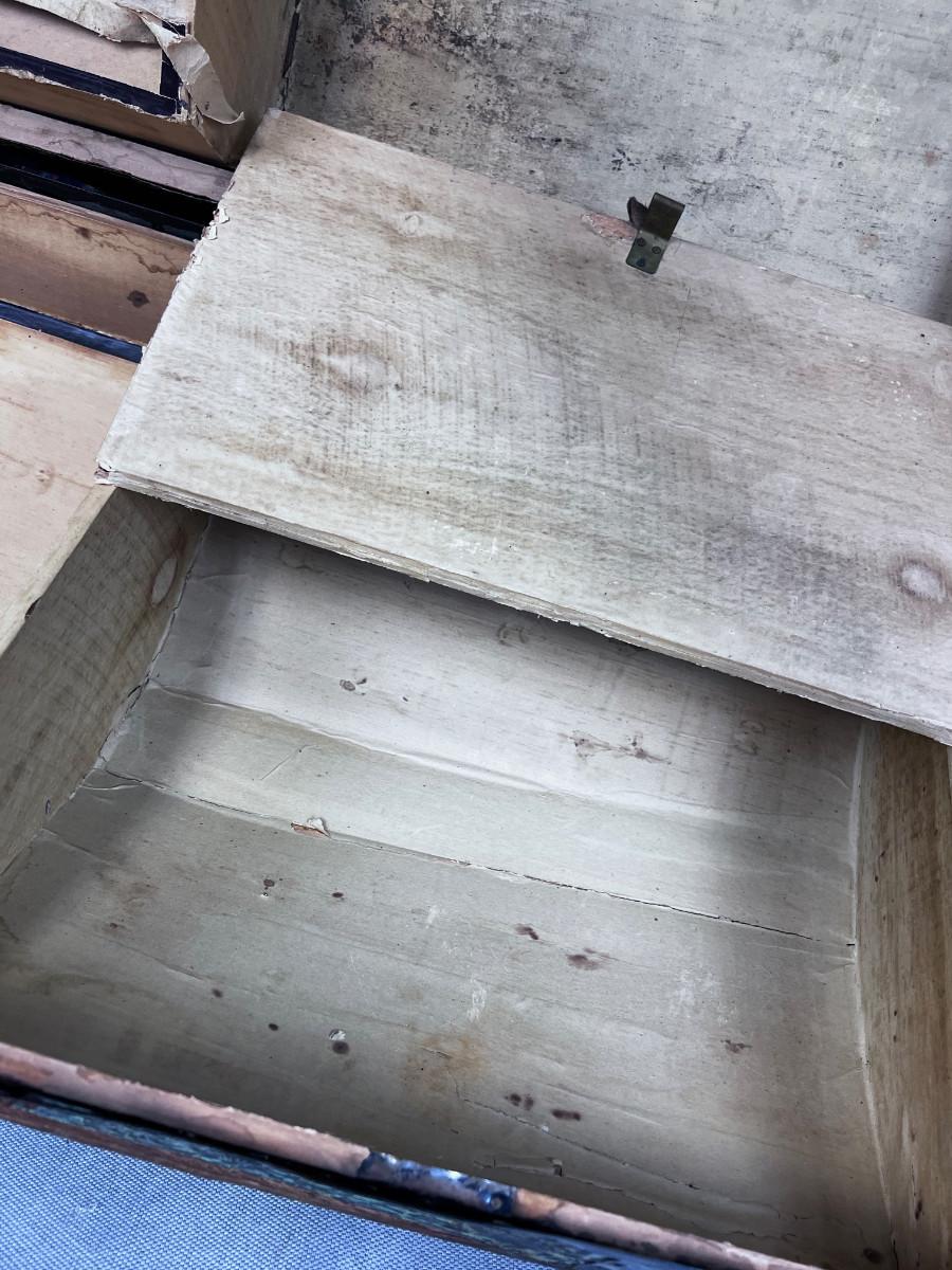 Antique Dome Top Steamer Trunk, Wood Lined with Original Tray Green Embossed
