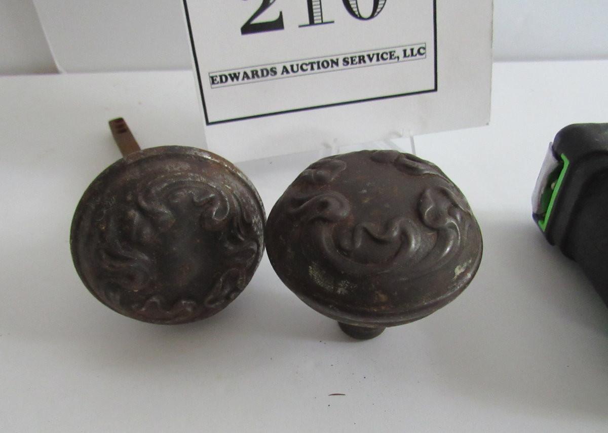 Just the handle, no screws. Has wear but is quite pretty overall. Shipping is available at shipping cost plus $5 per box handling fee. See our terms for all details. All sales final, no refunds or exchanges.