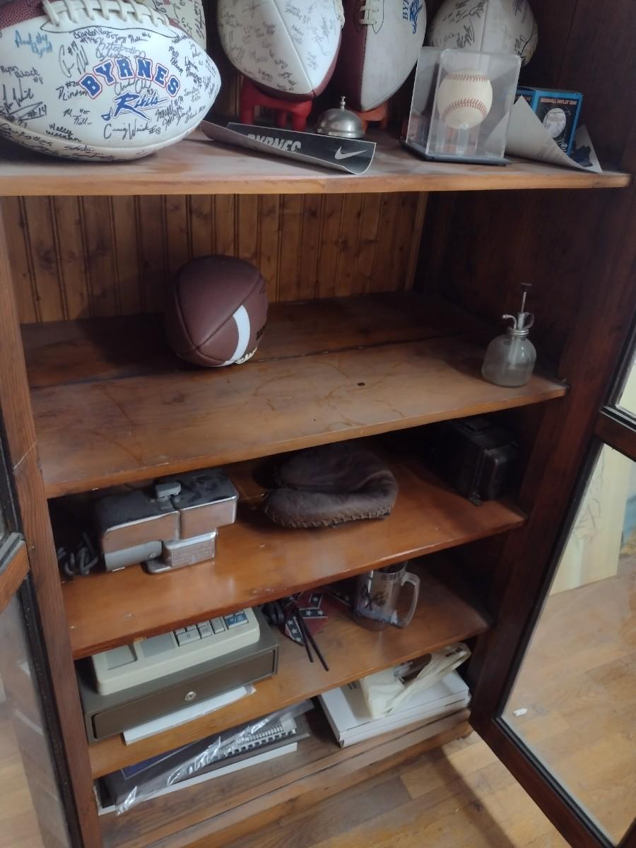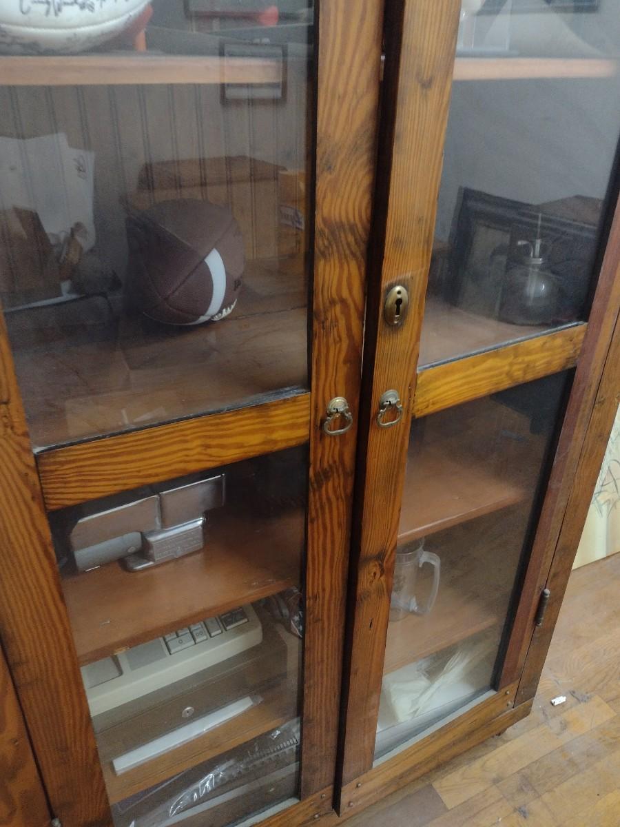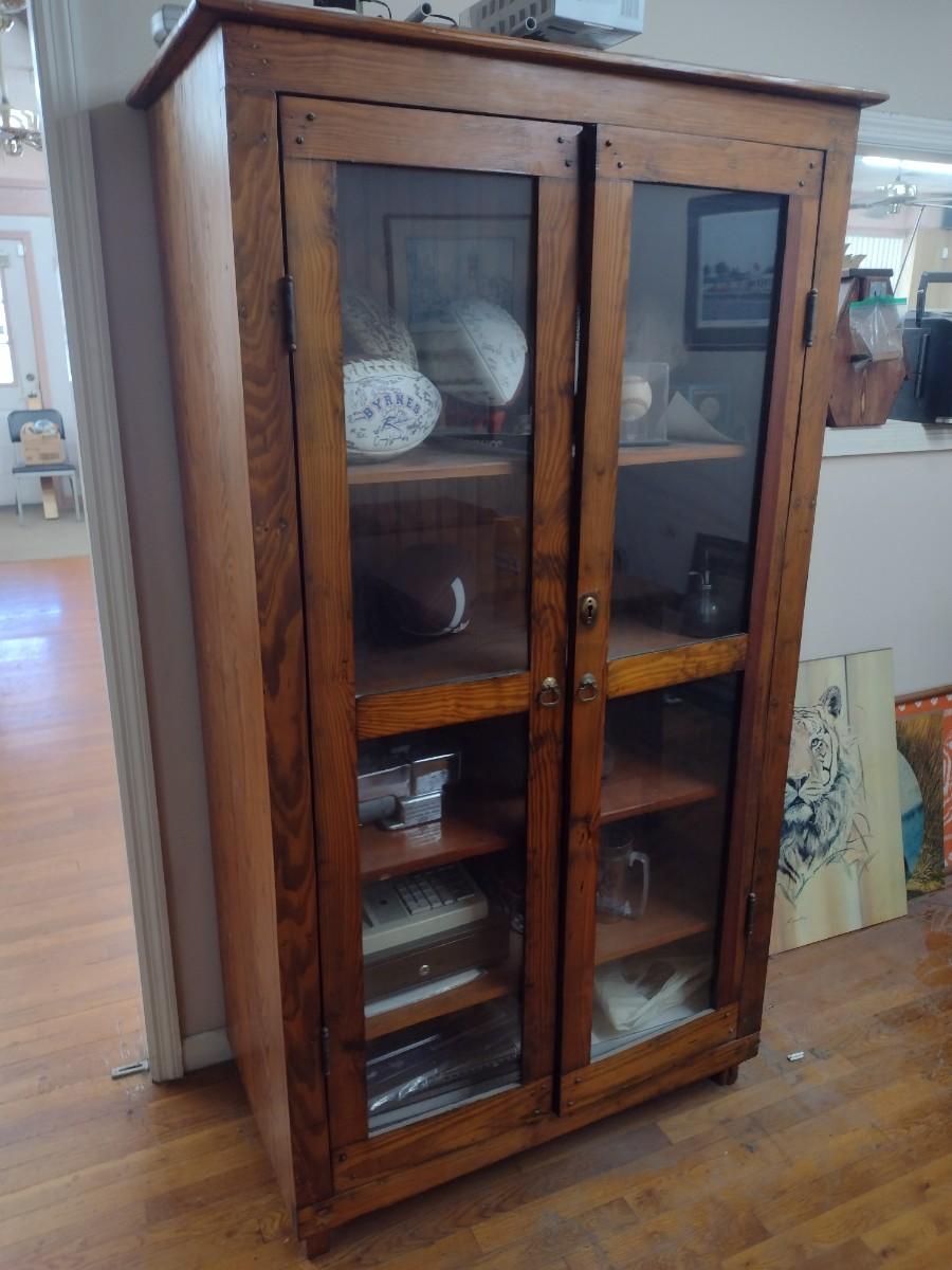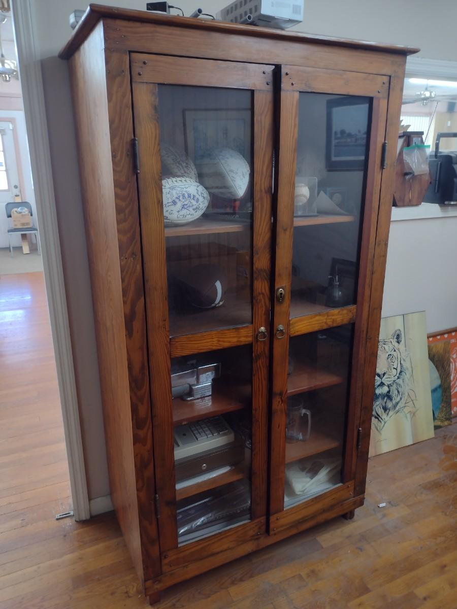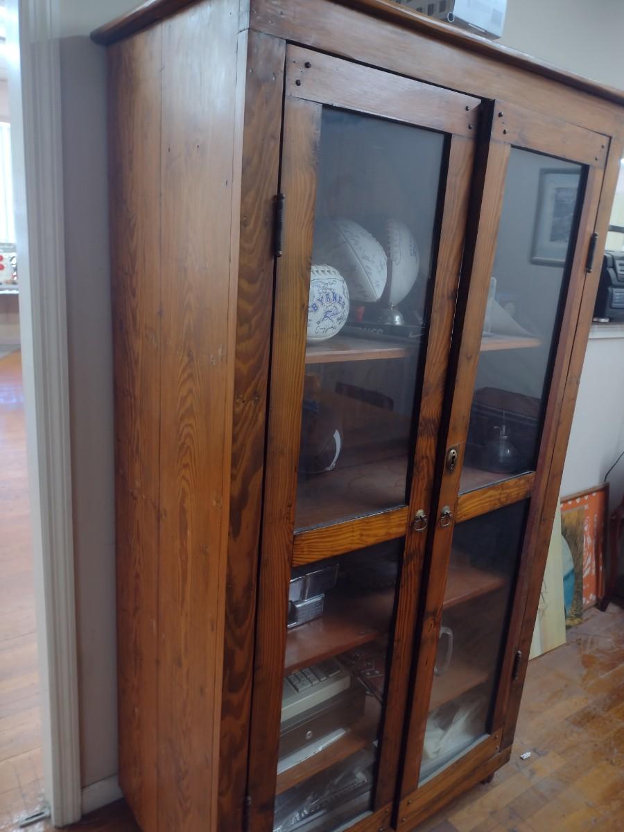 Antique Double Glass Door Oak Storage Cabinet (No Contents)