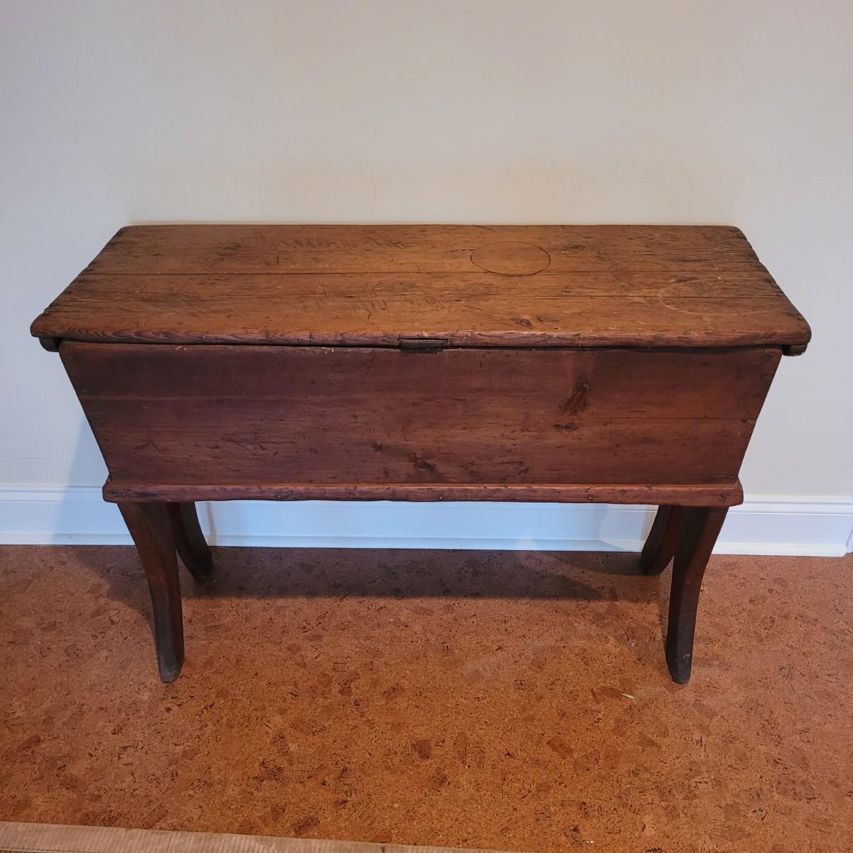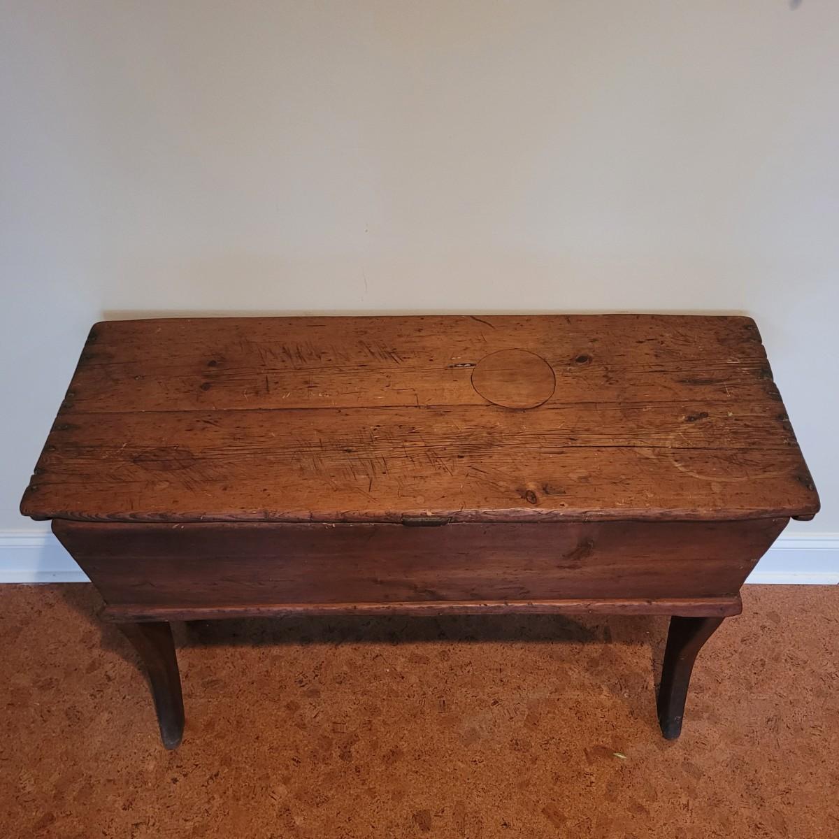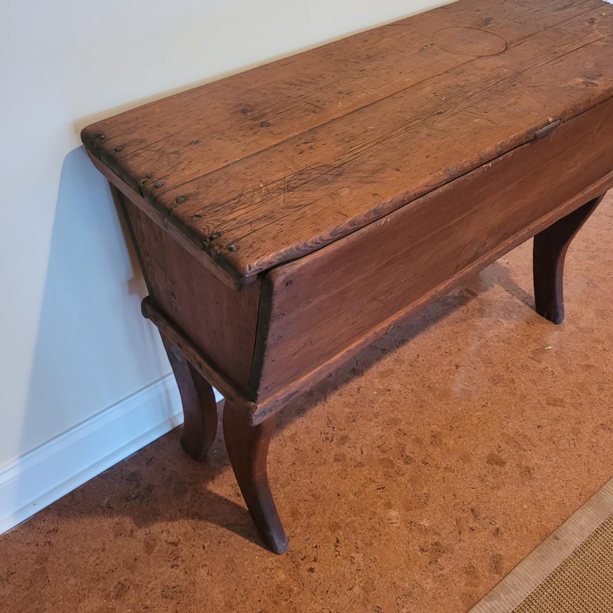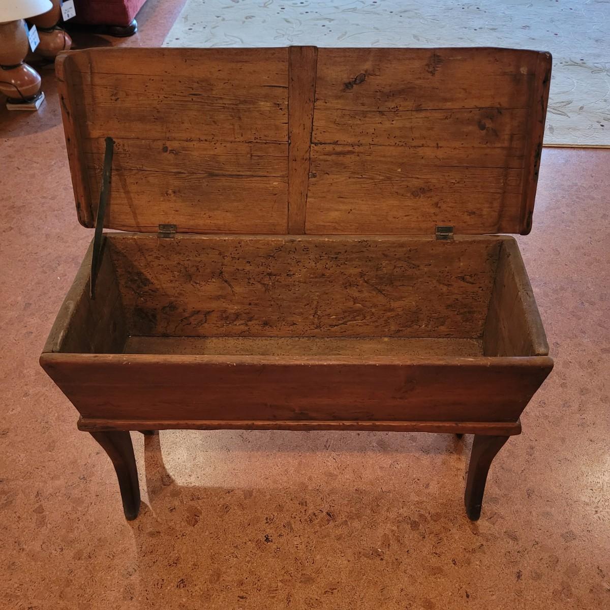 This appears to be a rare early American wooden dough box. Dough boxes were a common tool in homes and bakeries before the widespread use of bread machines and other modern equipment. Has some condition issues due to age. Item measures 38.5" x 15" x 27.5"H.