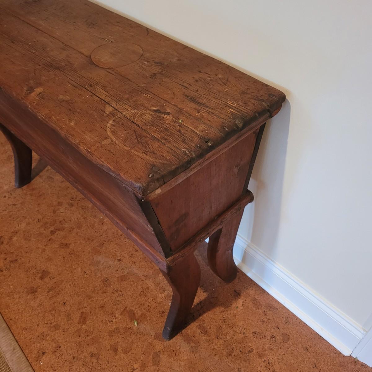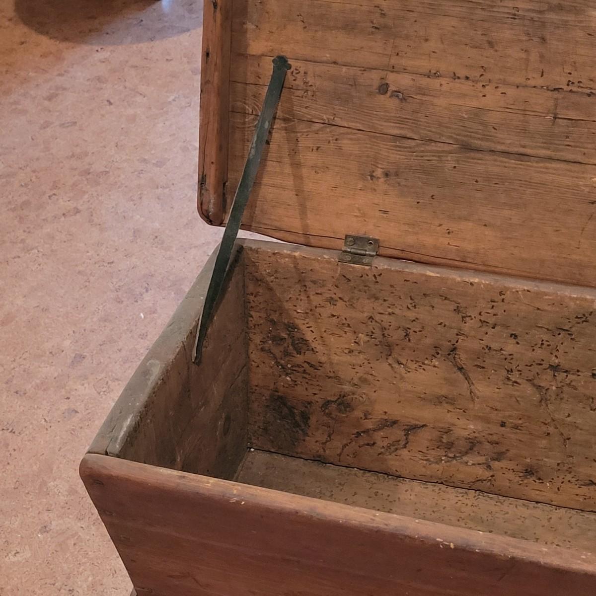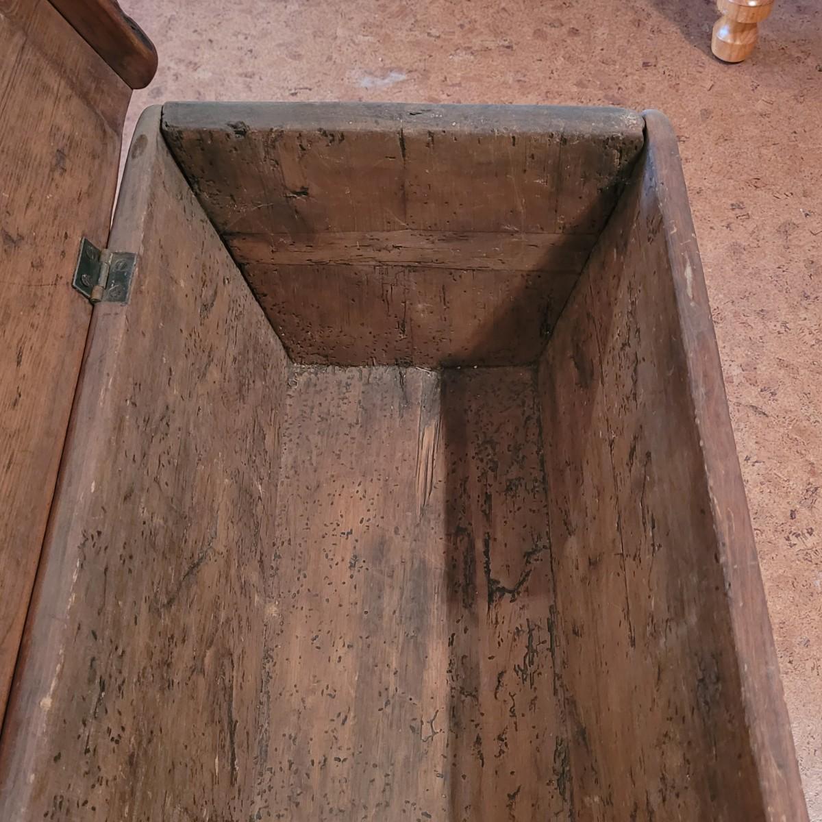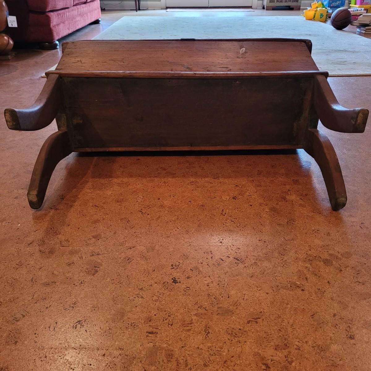 This appears to be a rare early American wooden dough box. Dough boxes were a common tool in homes and bakeries before the widespread use of bread machines and other modern equipment. Has some condition issues due to age. Item measures 38.5" x 15" x 27.5"H.