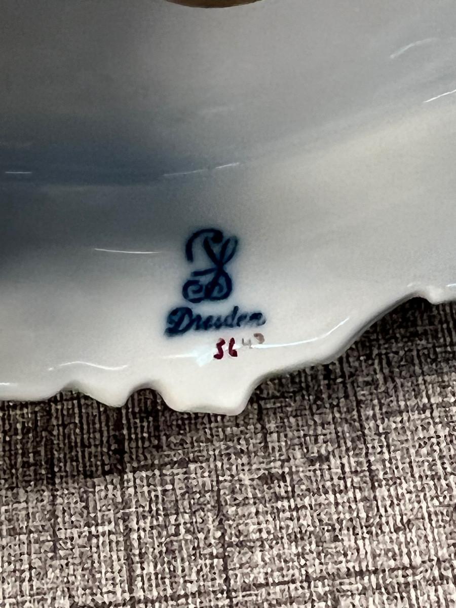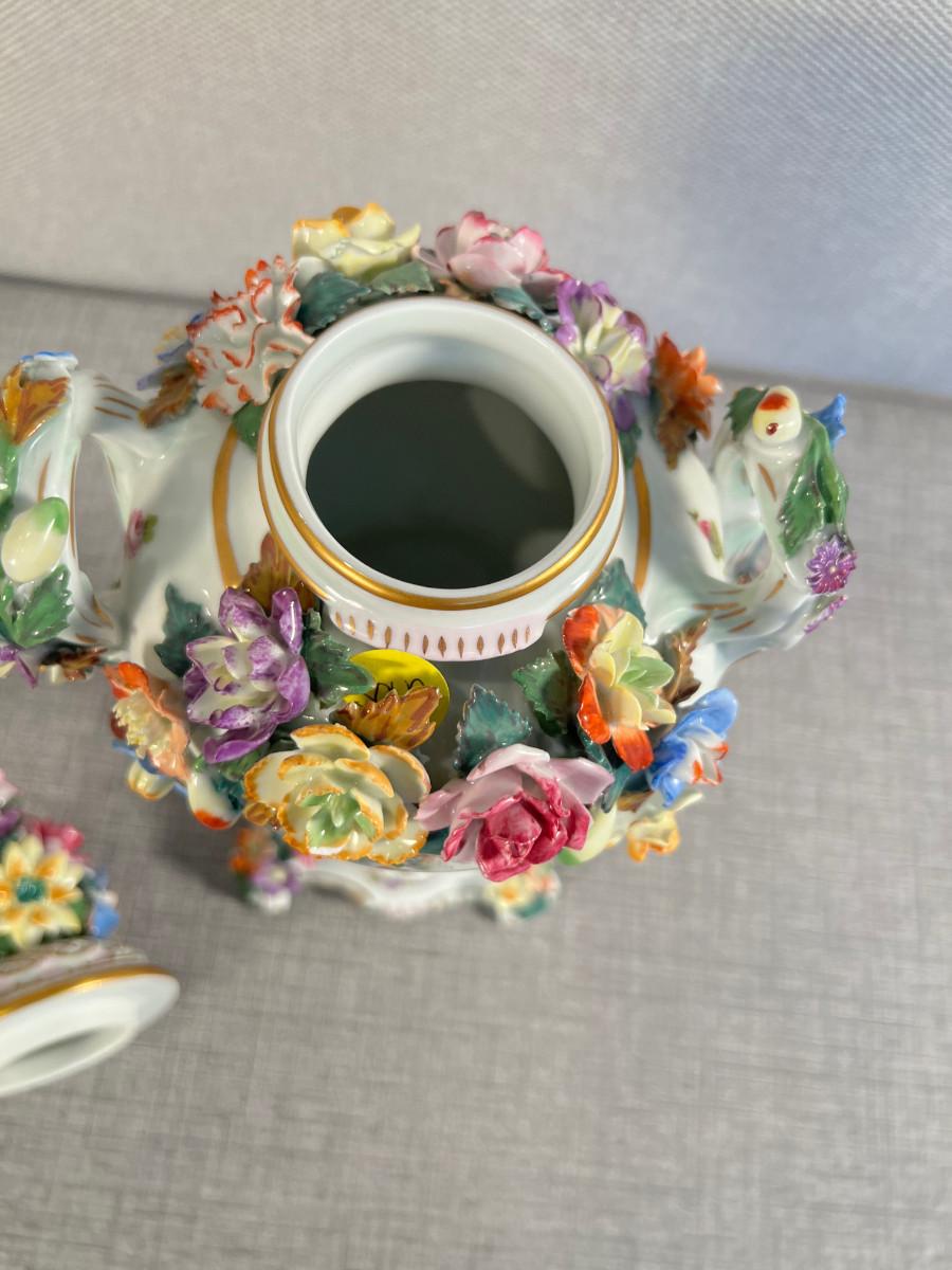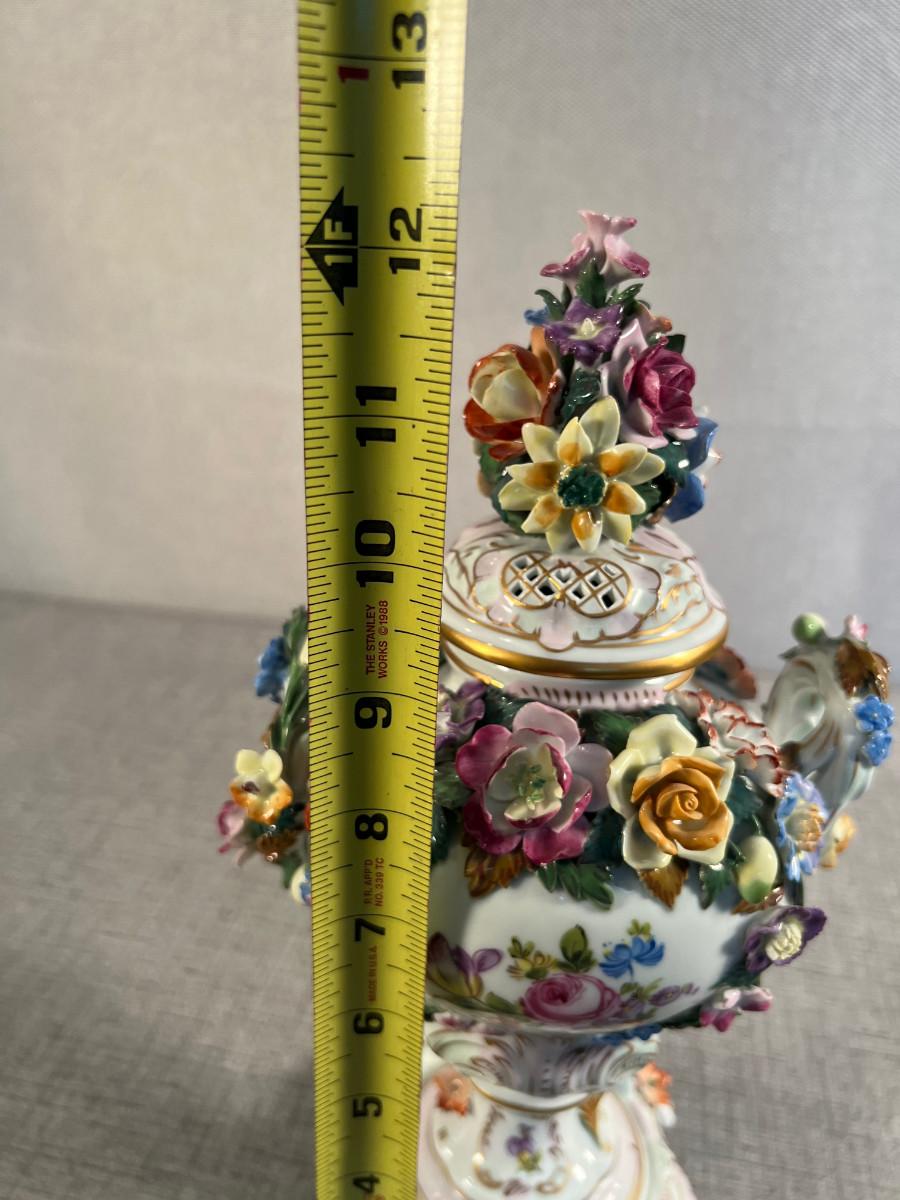 Beautiful floral relief urn by Dresden. 12" tall 19th century piece.