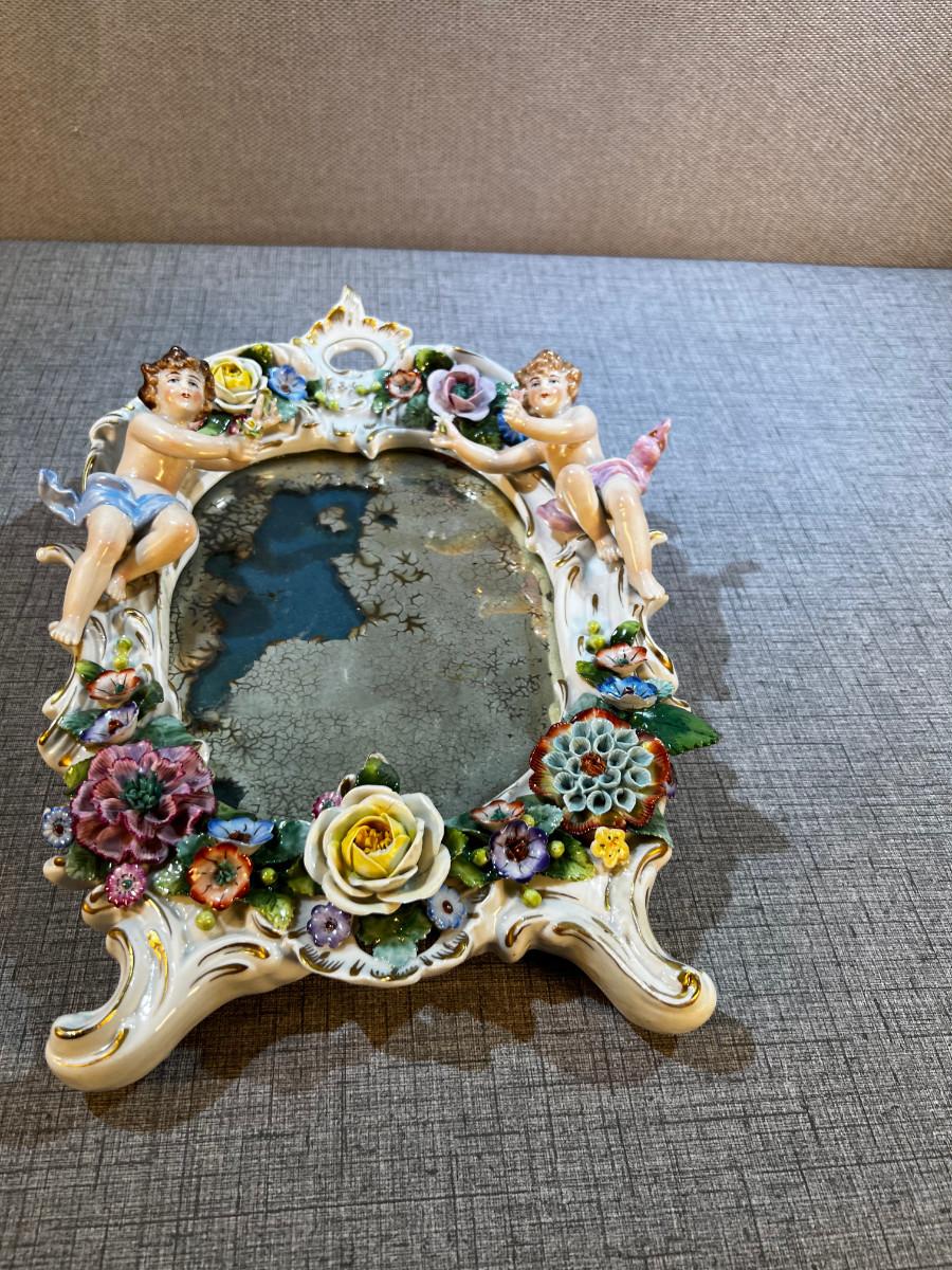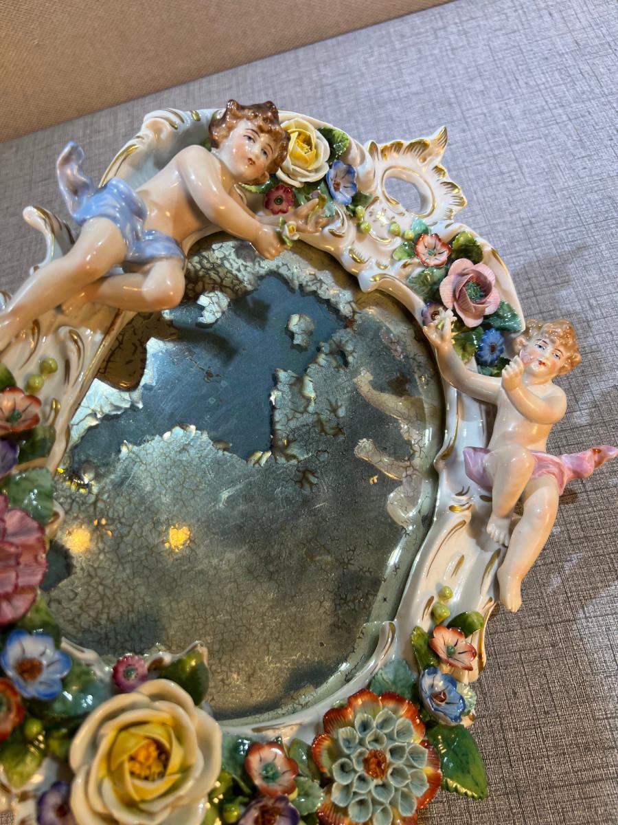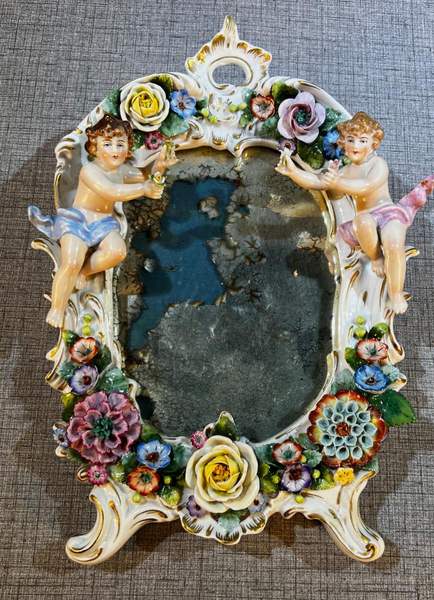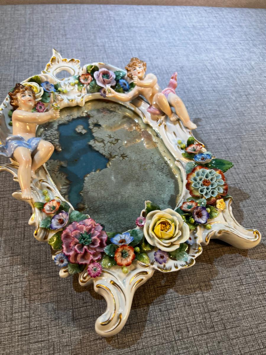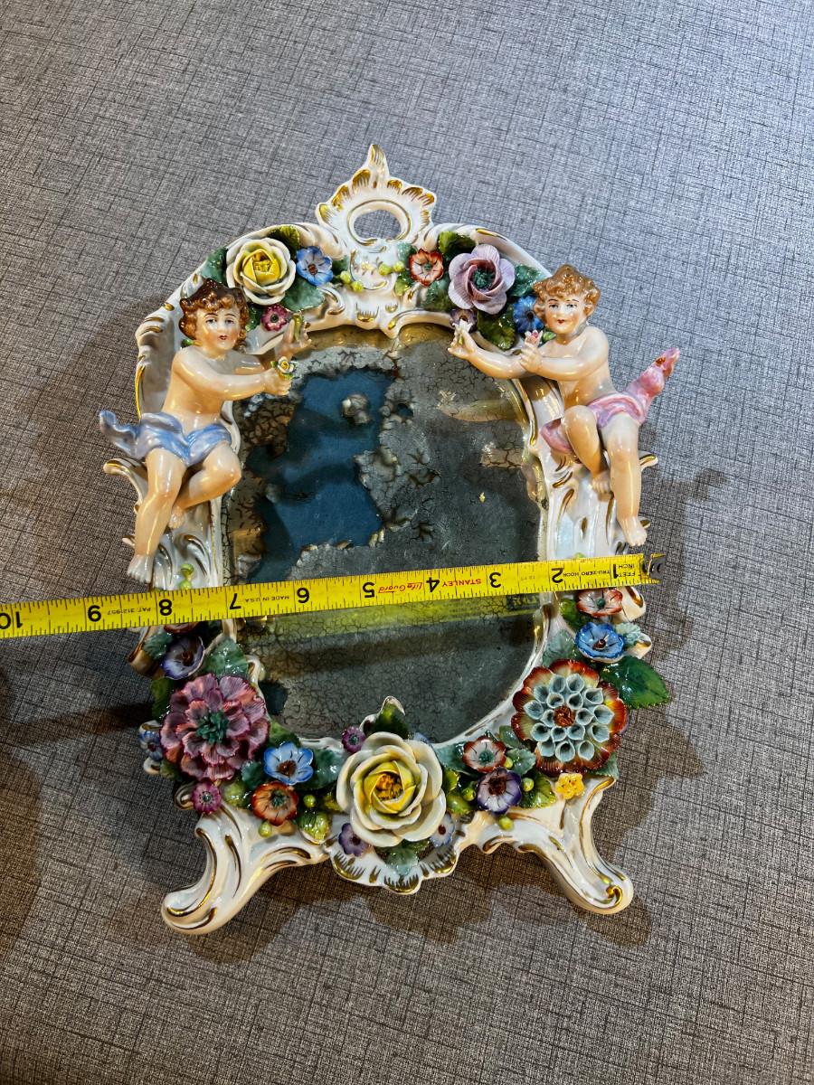13" By 9" Silvered Mirror is Flaking off. Indicates it is indeed older. Has a Crown Marking.