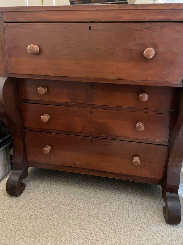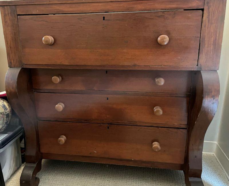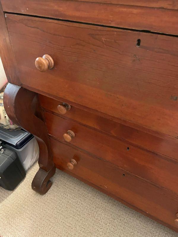 Antique Circa 1800's American Empire Chest of Drawers with wooden Pulls 41"H X 40"W X 20"D - Purchase Price on onekingslane.com for $1,425