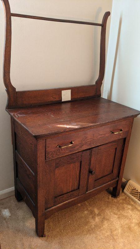 Antique Dresser / Commode with lyre style towel bar (#39)